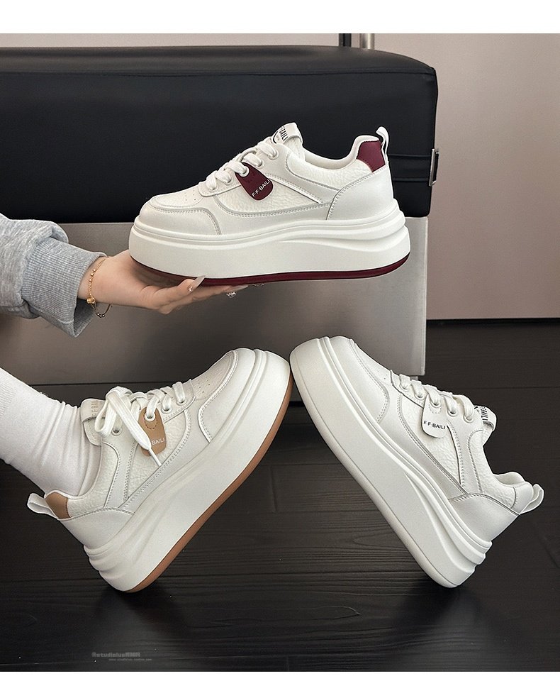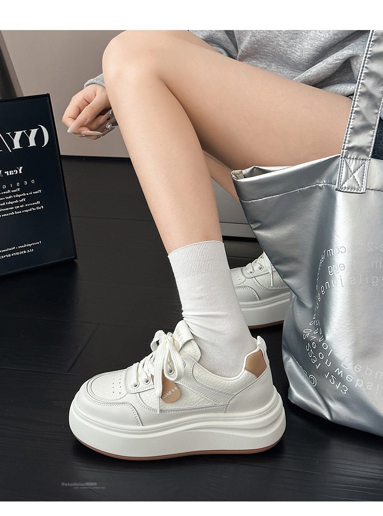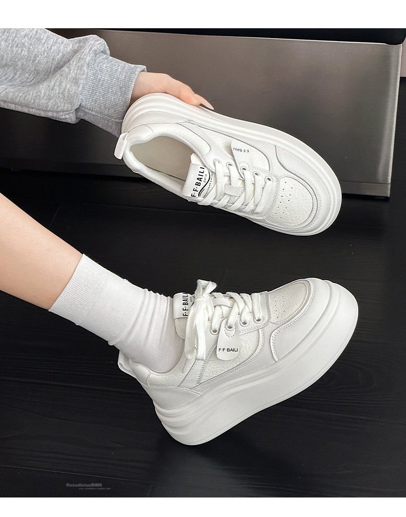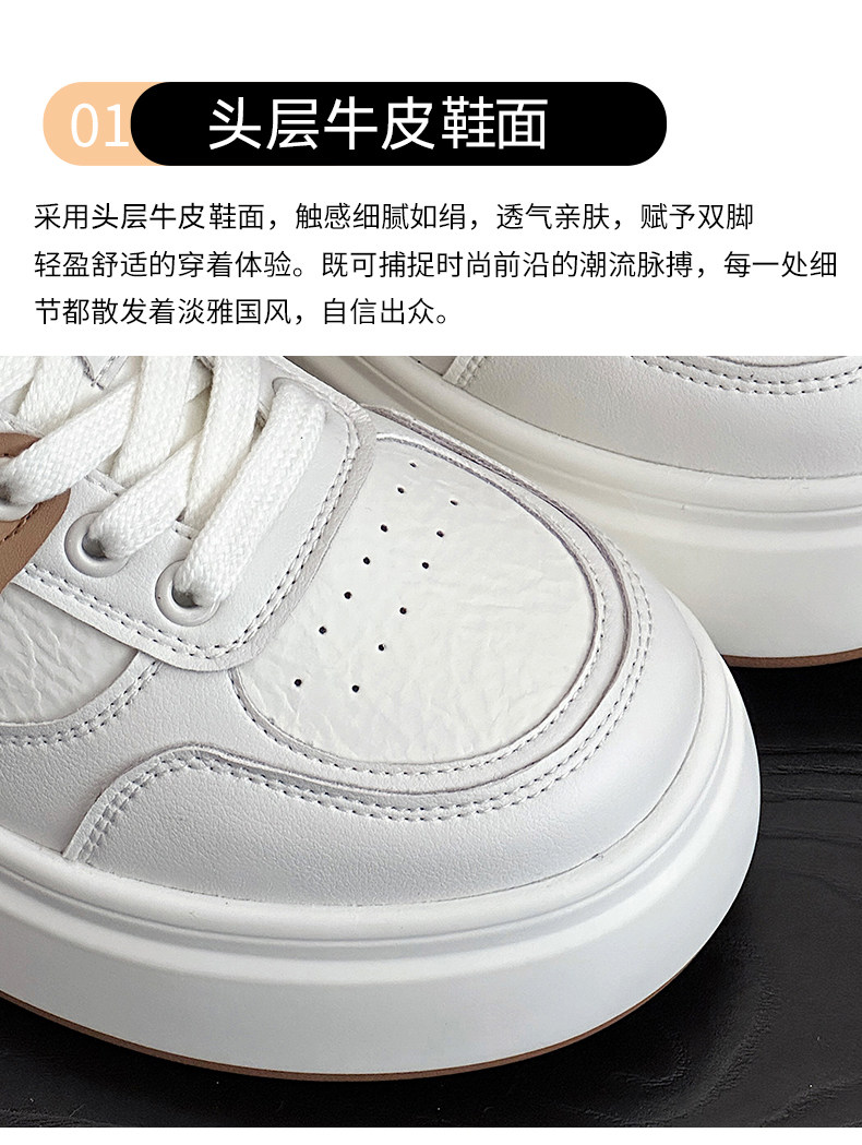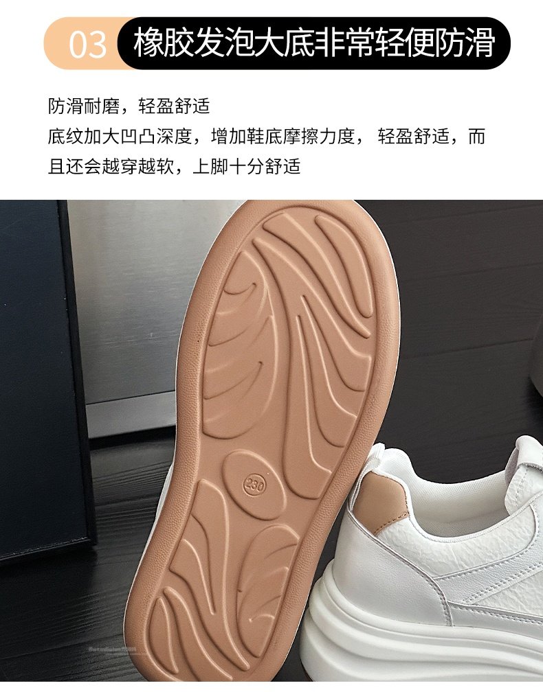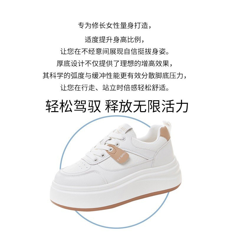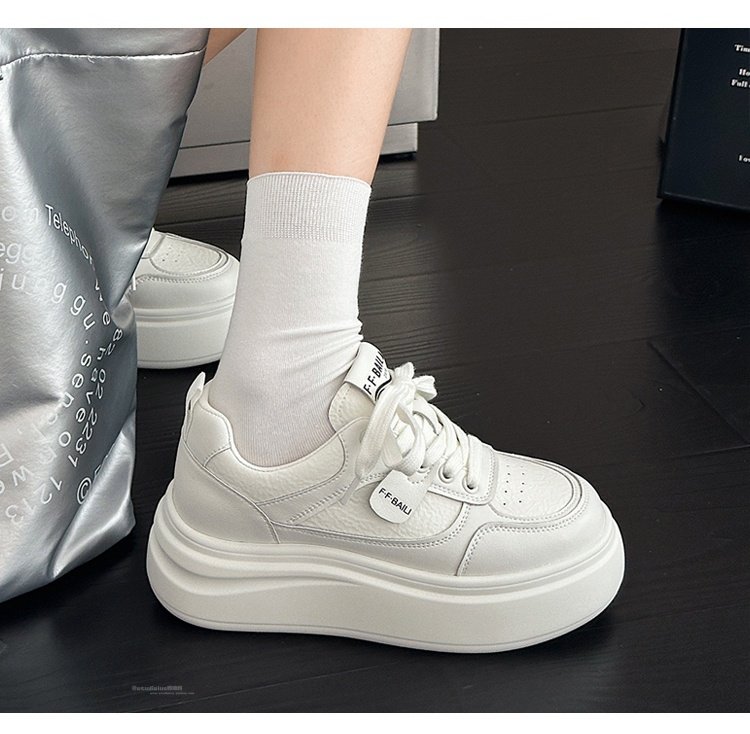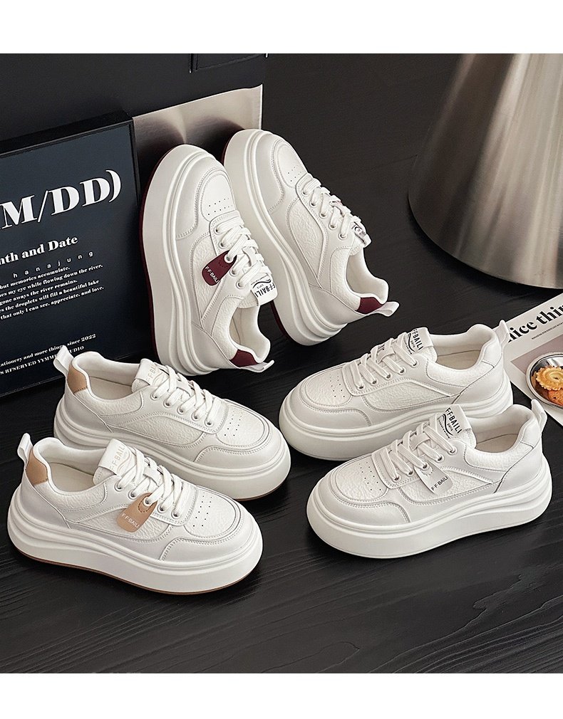 Hong Kong Genuine Leather Thick-Soled White Sneakers for Women, 2025 Autumn New Popular Versatile Lightweight Height-Increasing Sports Casual Sneakers