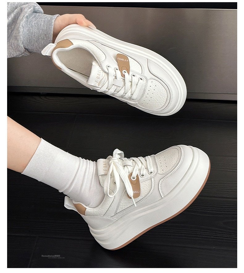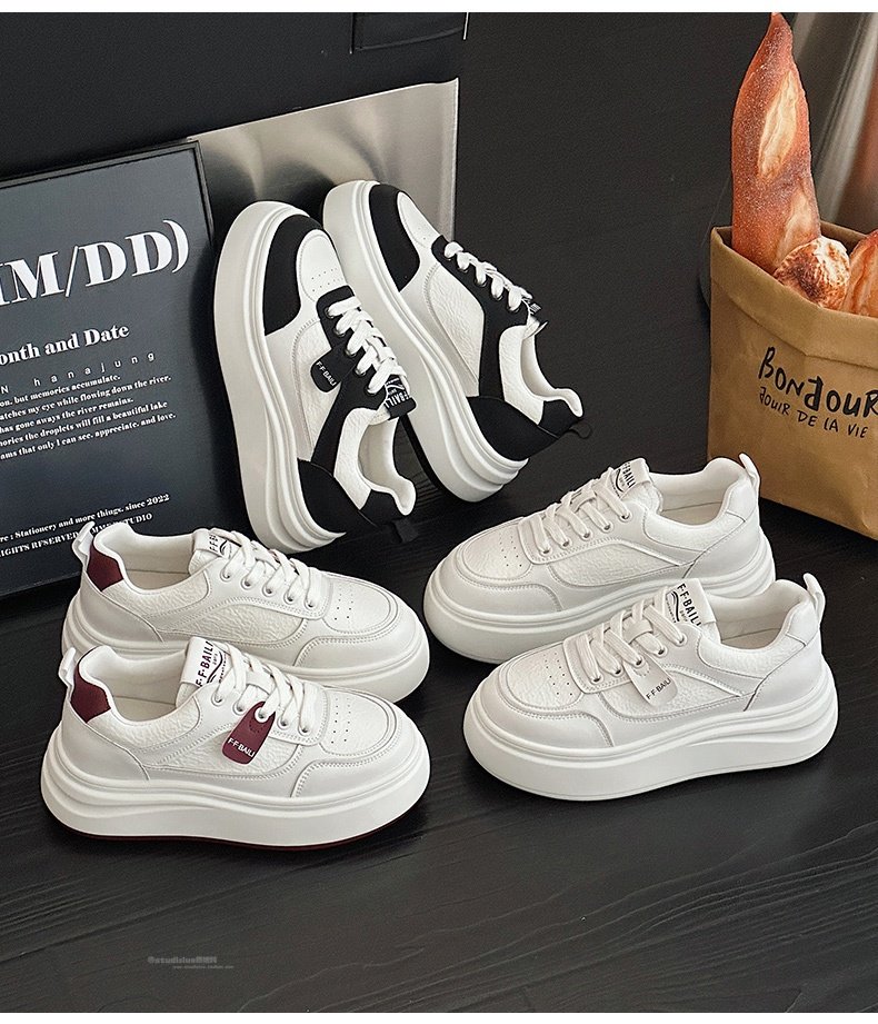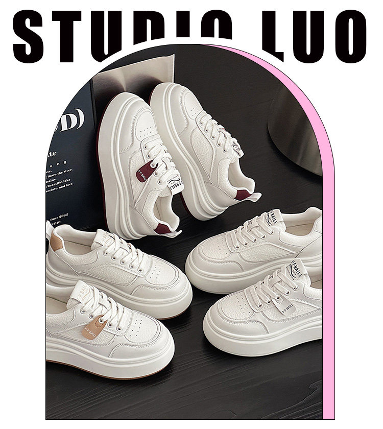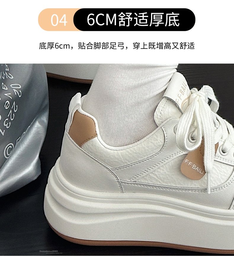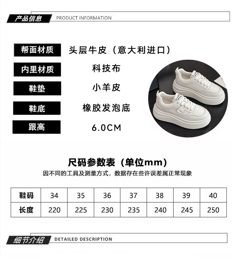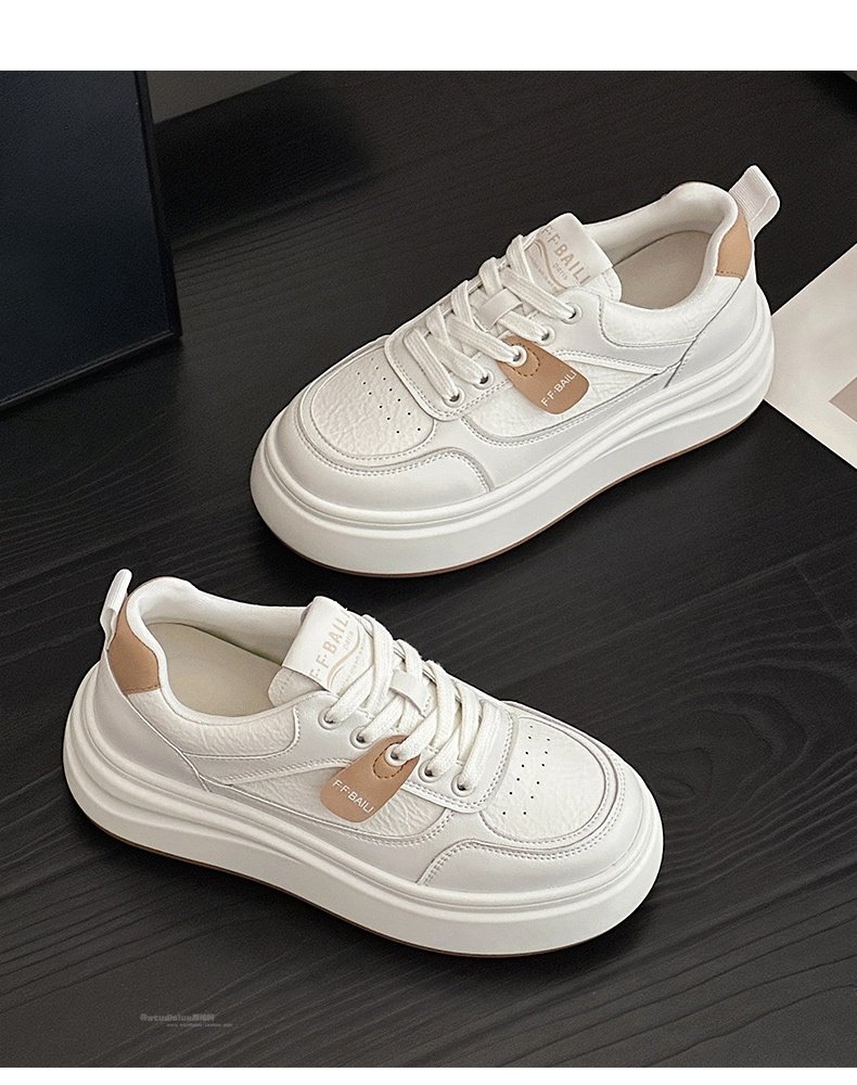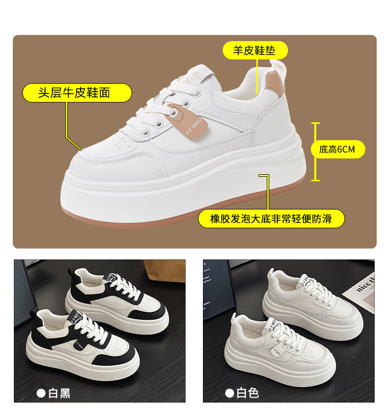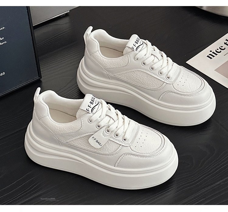 Hong Kong Genuine Leather Thick-Soled White Sneakers for Women, 2025 Autumn New Popular Versatile Lightweight Height-Increasing Sports Casual Sneakers