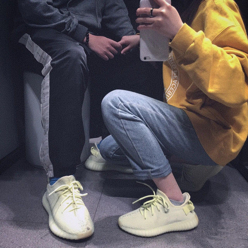 Baiyi Coconut Shoes 350 Unisex White and Yellow Daisy Real Soft Sole Running Shoes Casual Fashion Sneakers