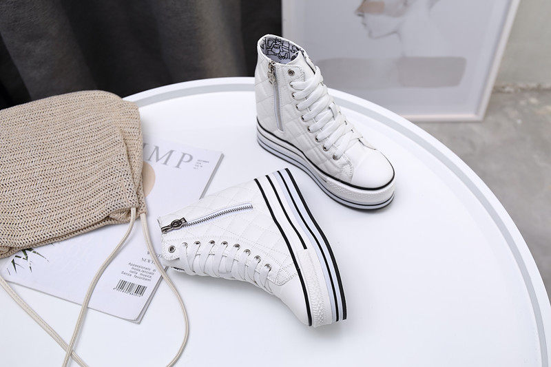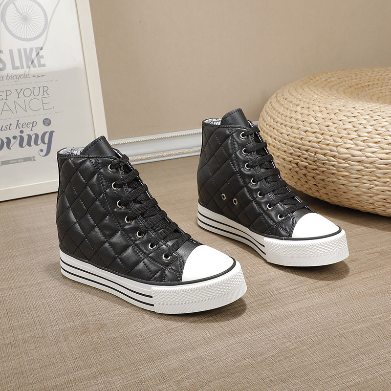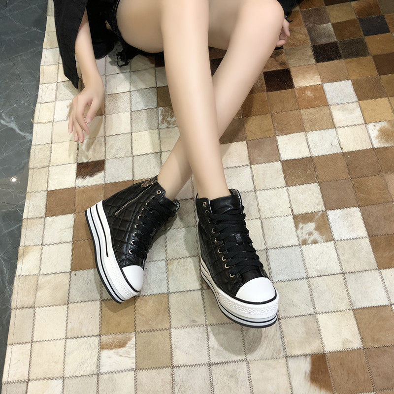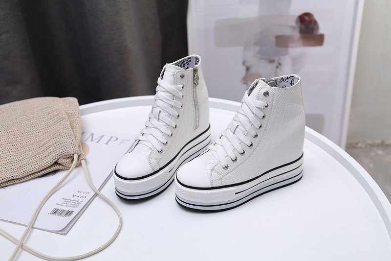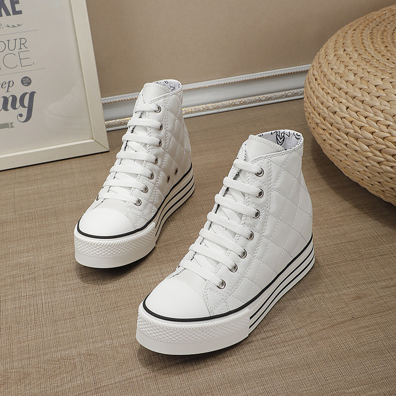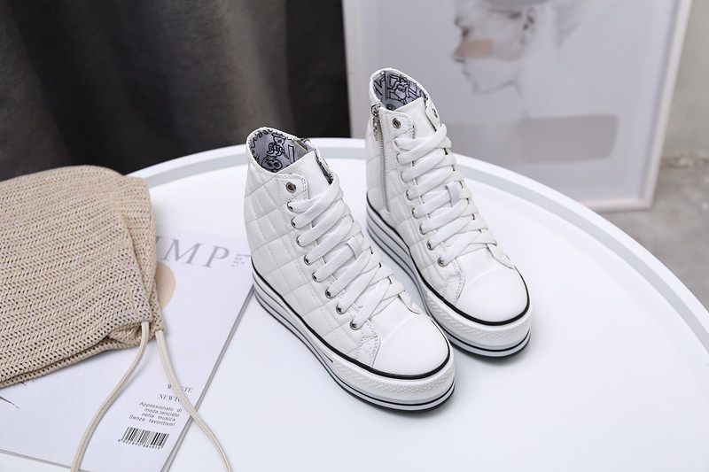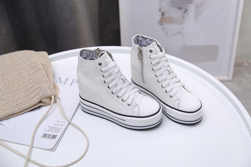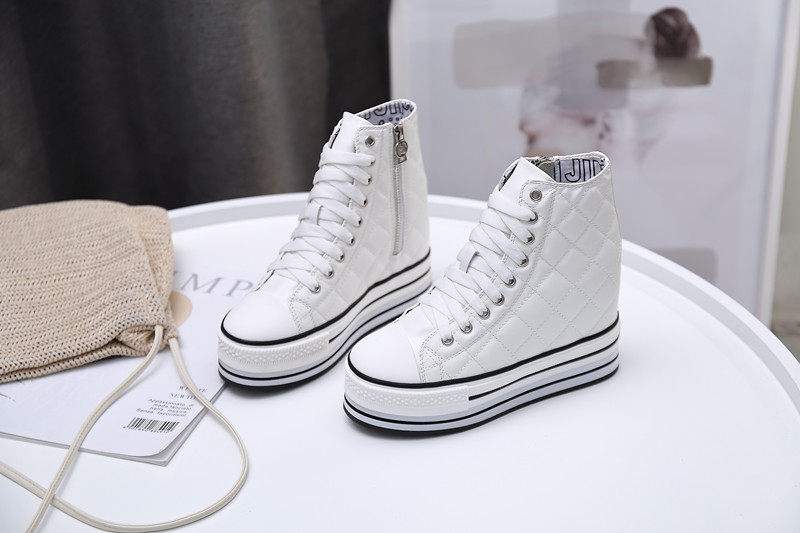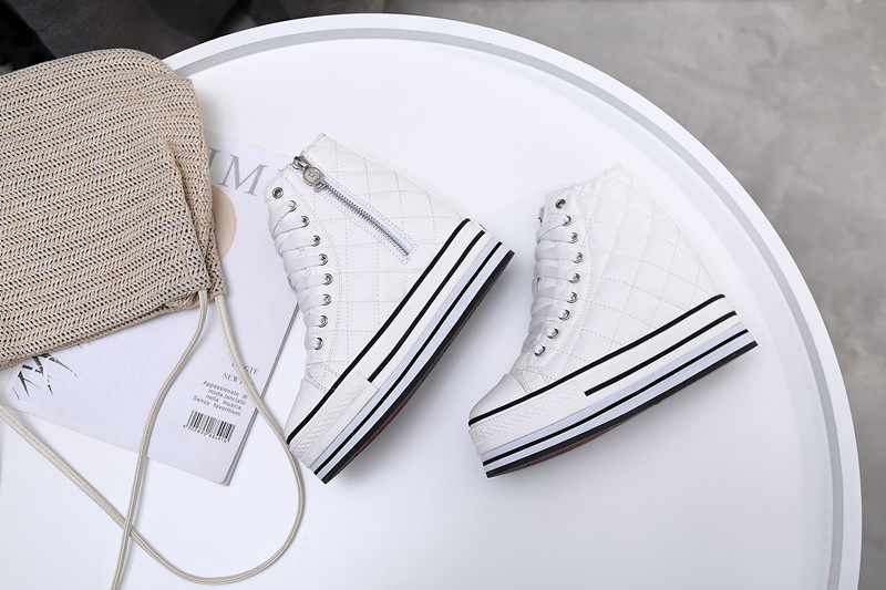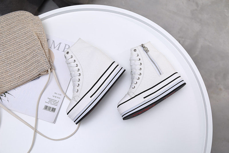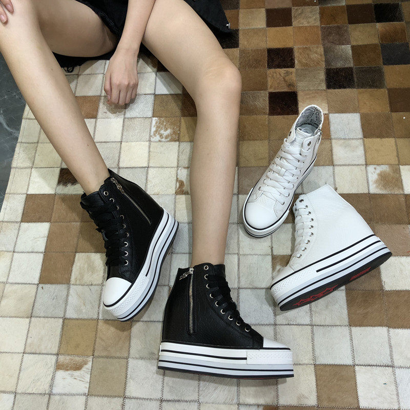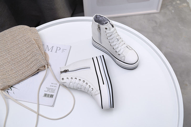 Spring and Autumn New Style Genuine Leather White Shoes for Women, Versatile, Slimming, Height-Increasing, Thick-Soled, High-Top Casual Platform Sneakers