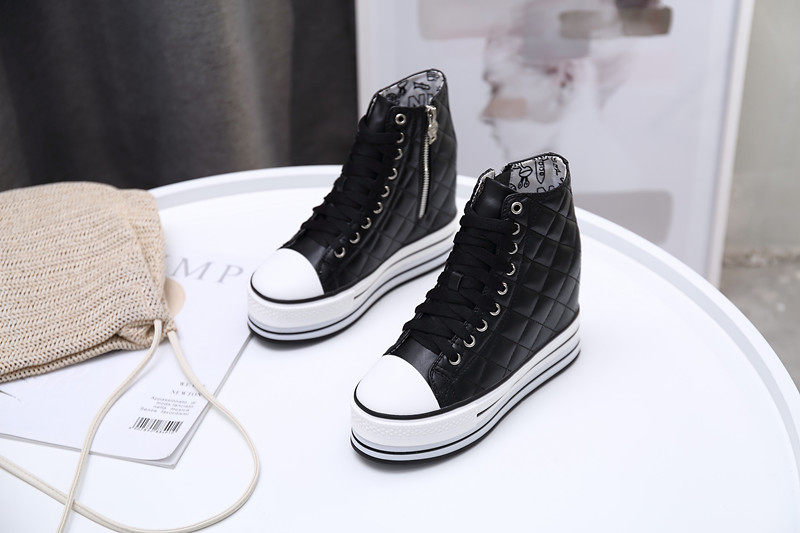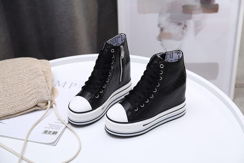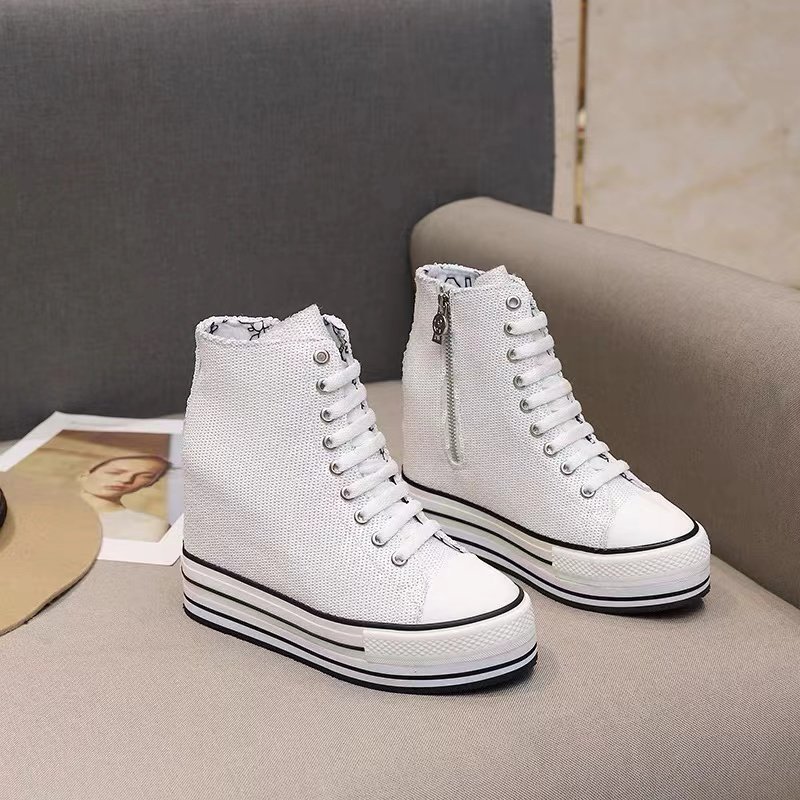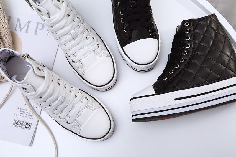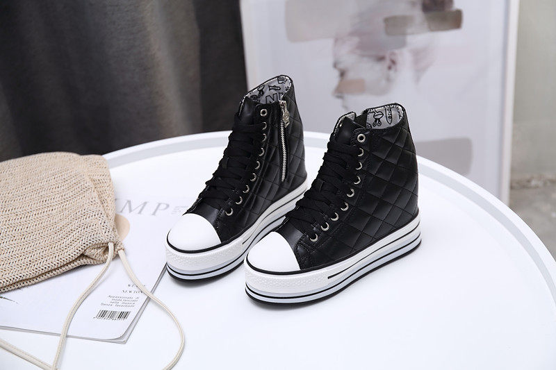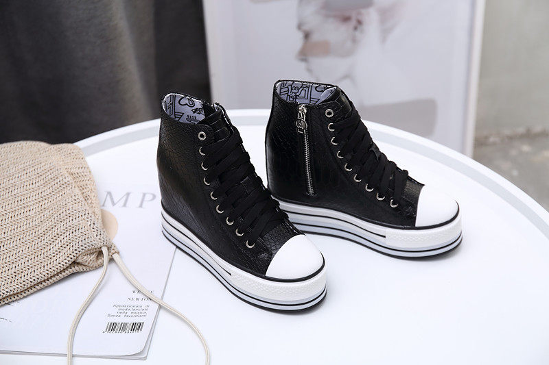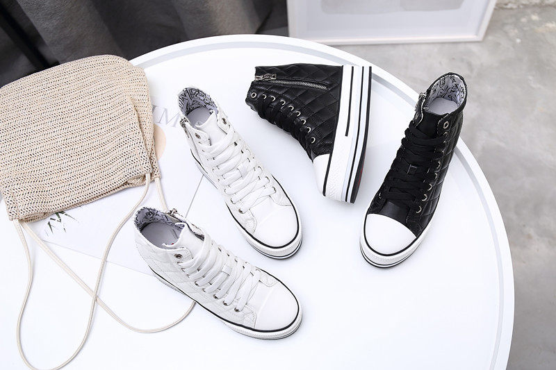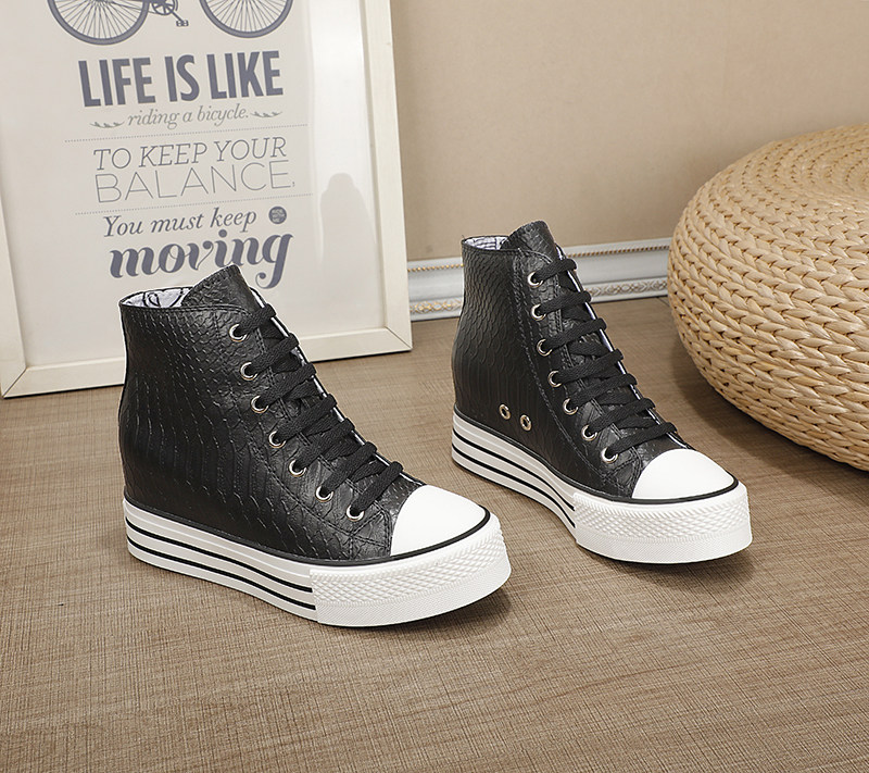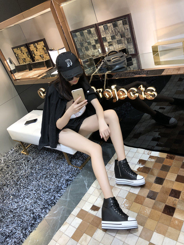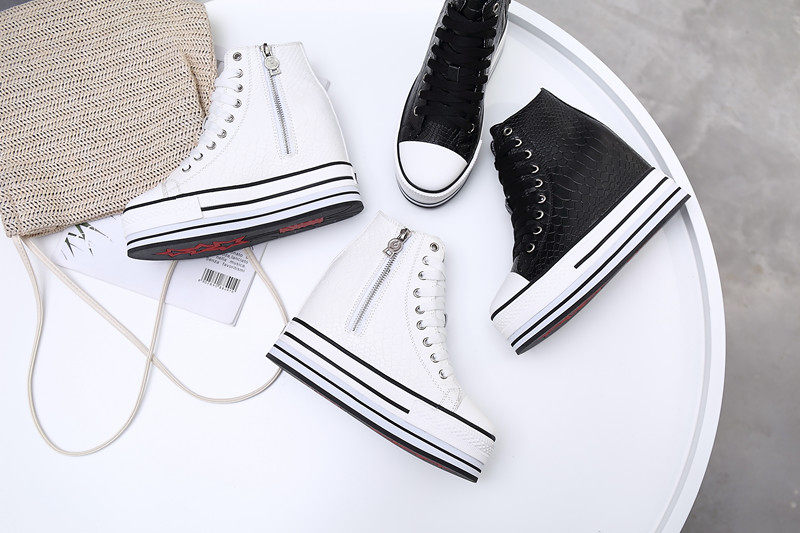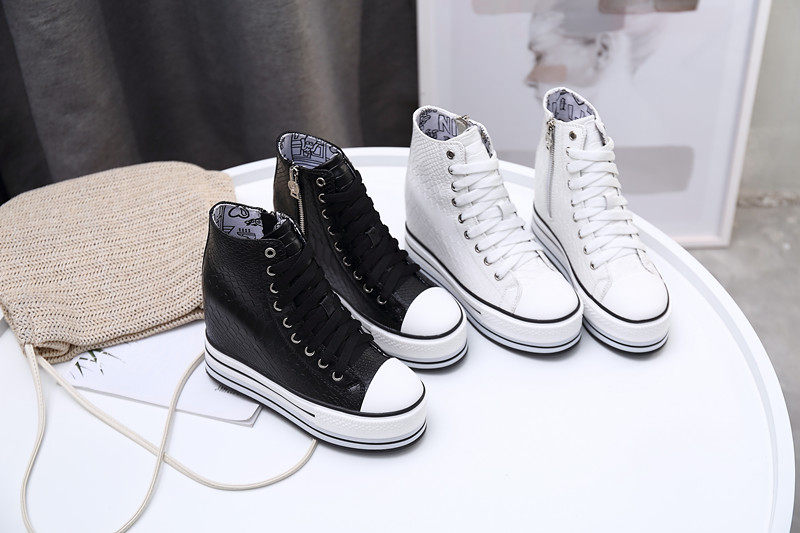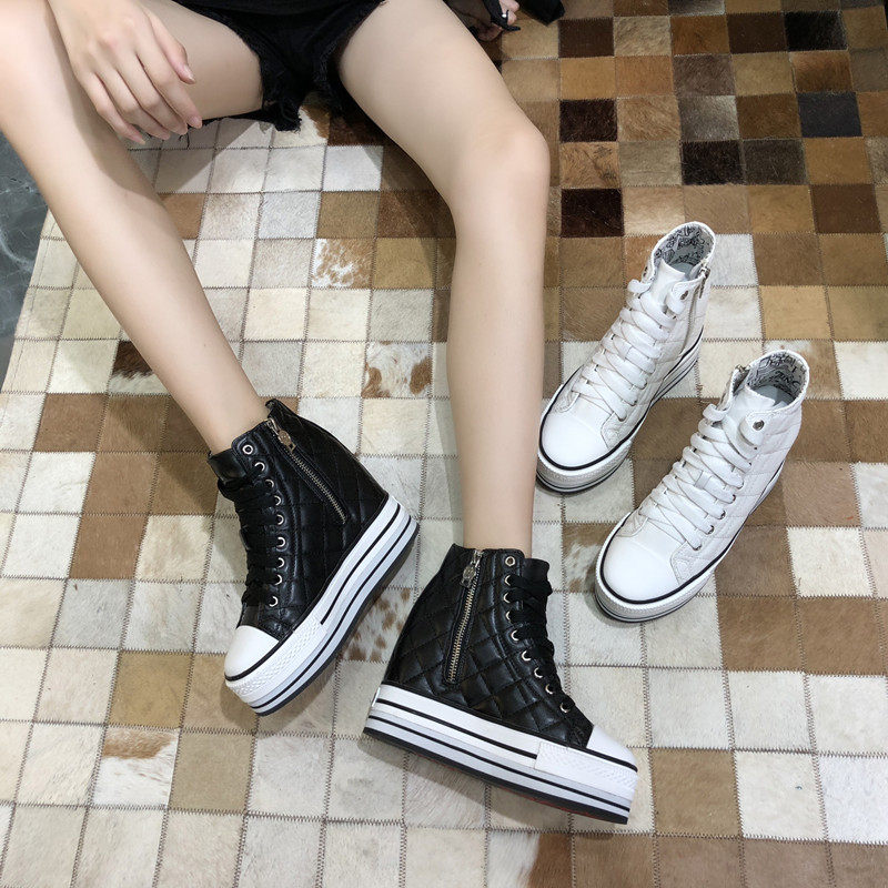 Spring and Autumn New Style Genuine Leather White Shoes for Women, Versatile, Slimming, Height-Increasing, Thick-Soled, High-Top Casual Platform Sneakers
