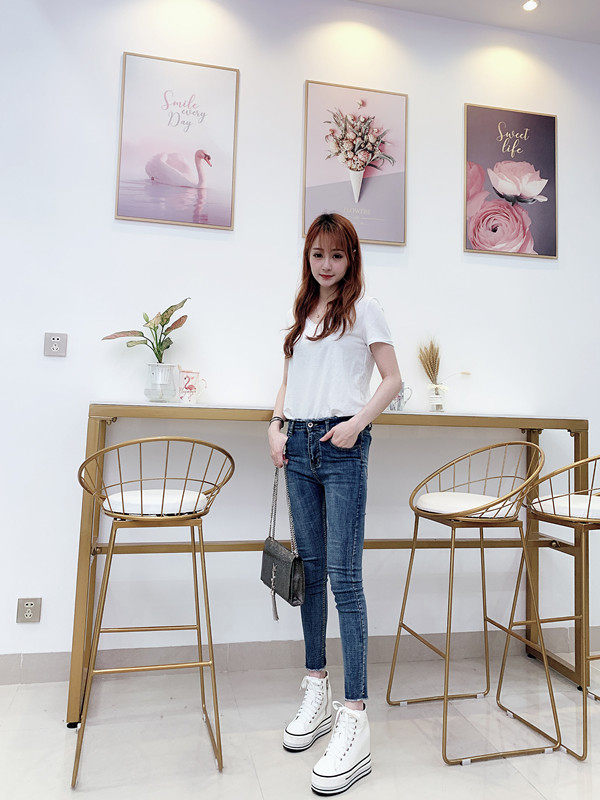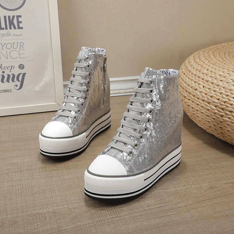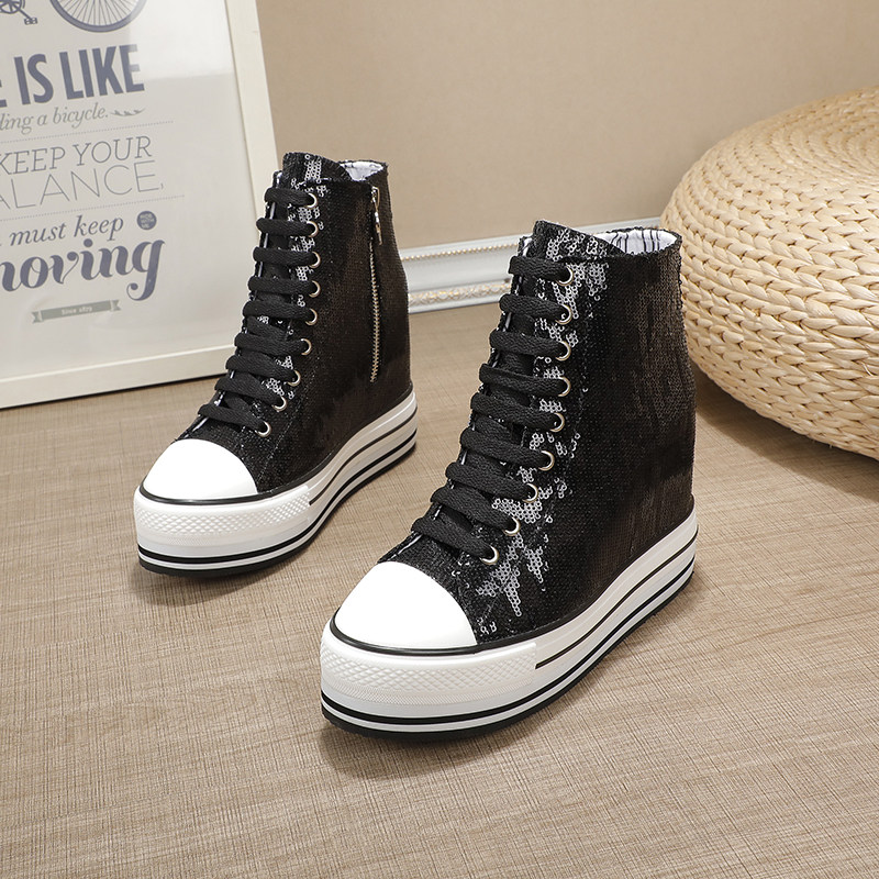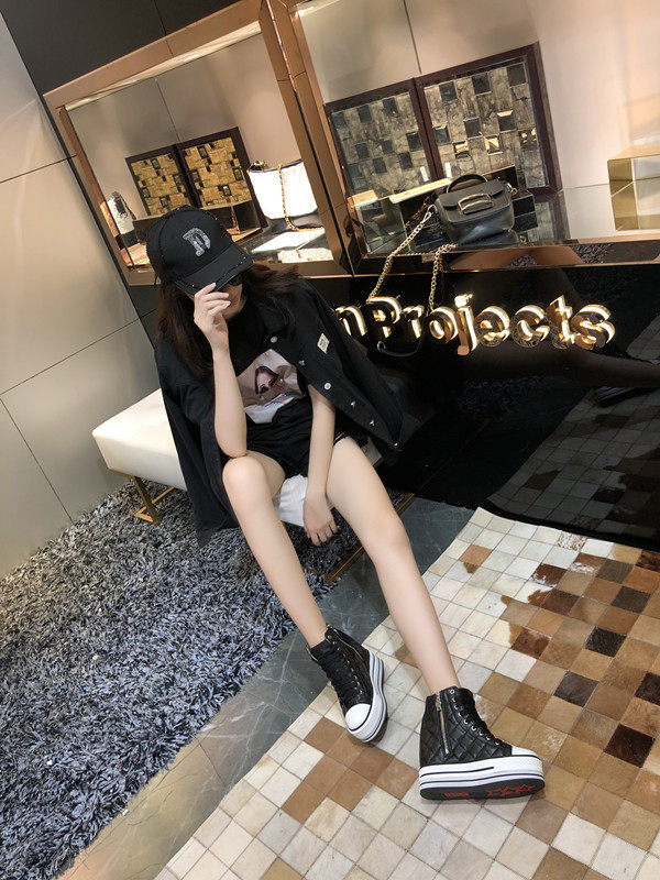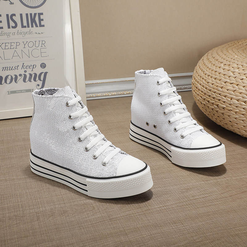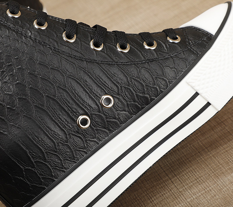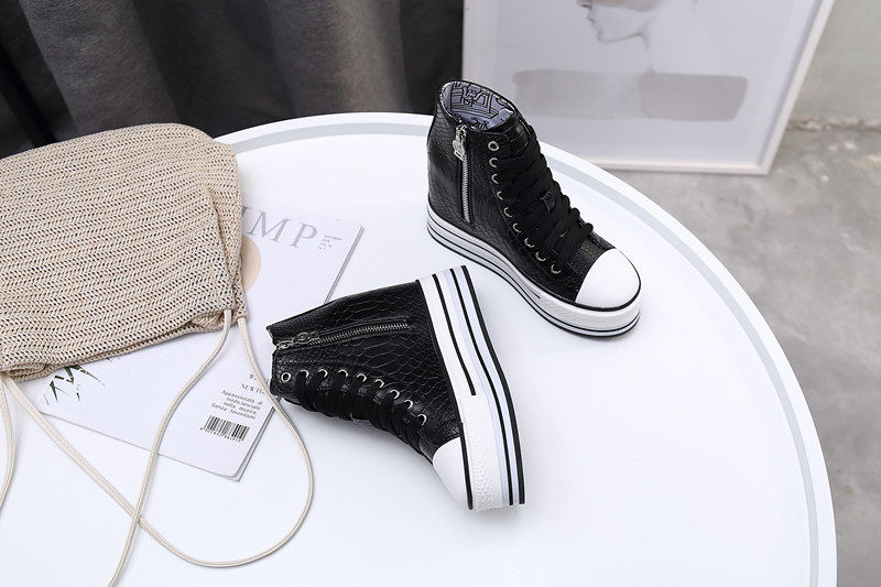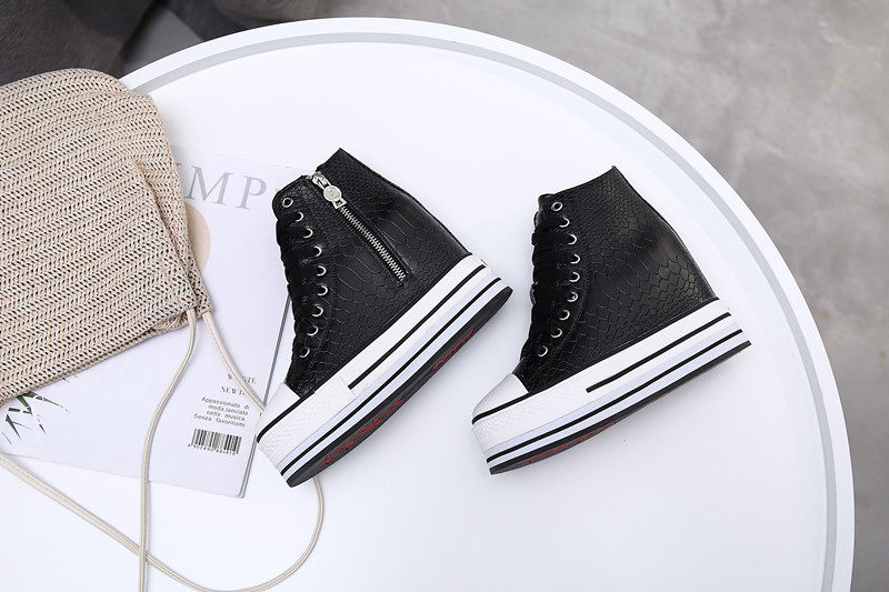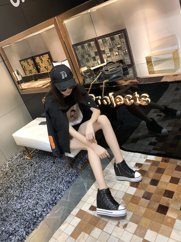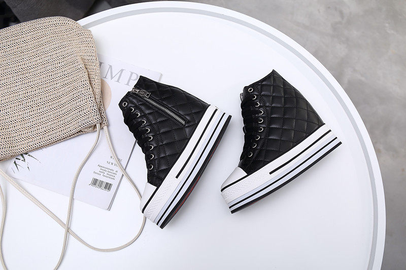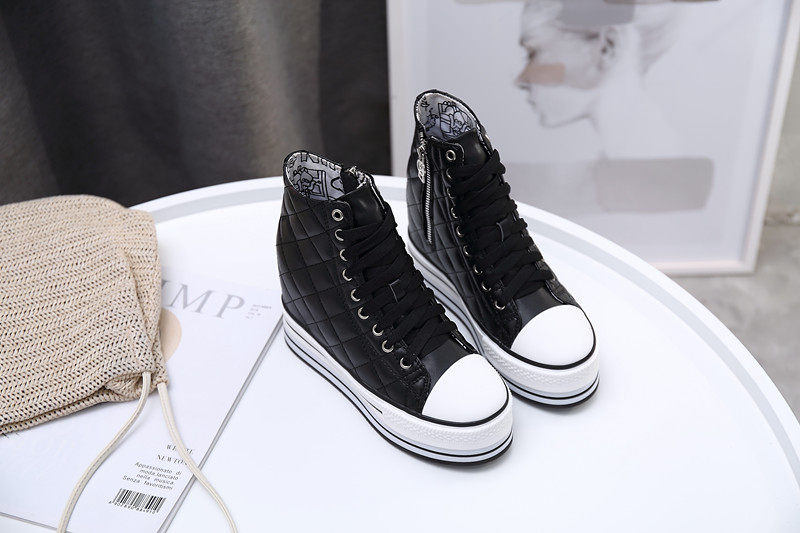 Spring and Autumn New Style Genuine Leather White Shoes for Women, Versatile, Slimming, Height-Increasing, Thick-Soled, High-Top Casual Platform Sneakers