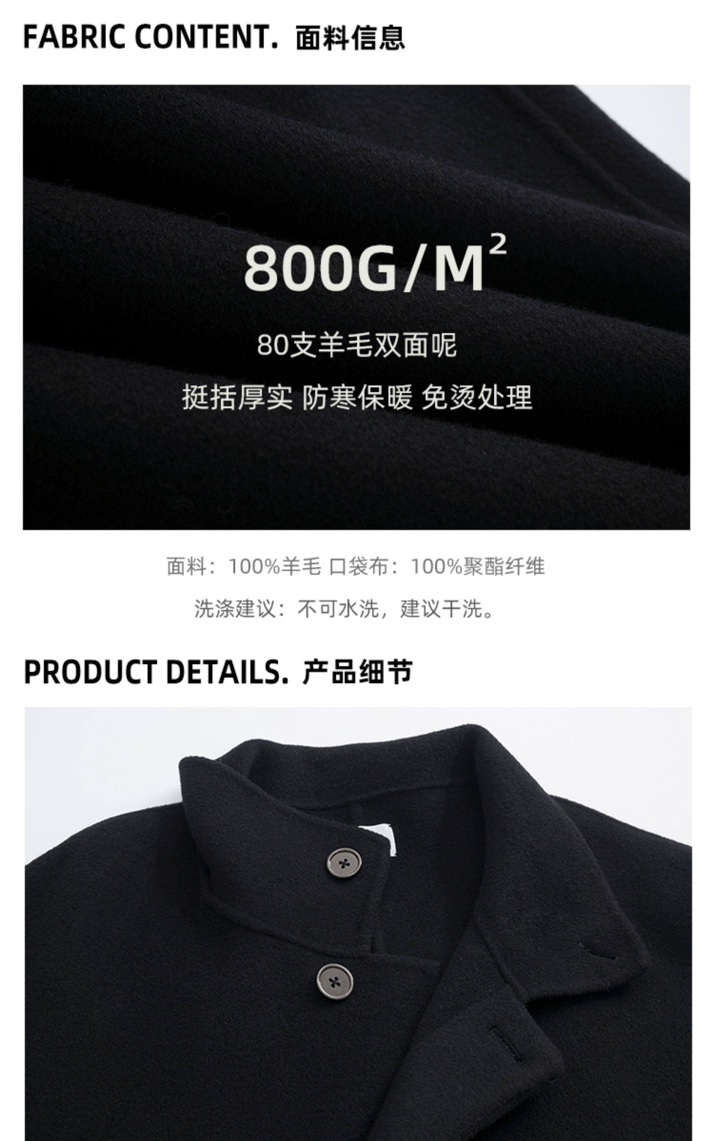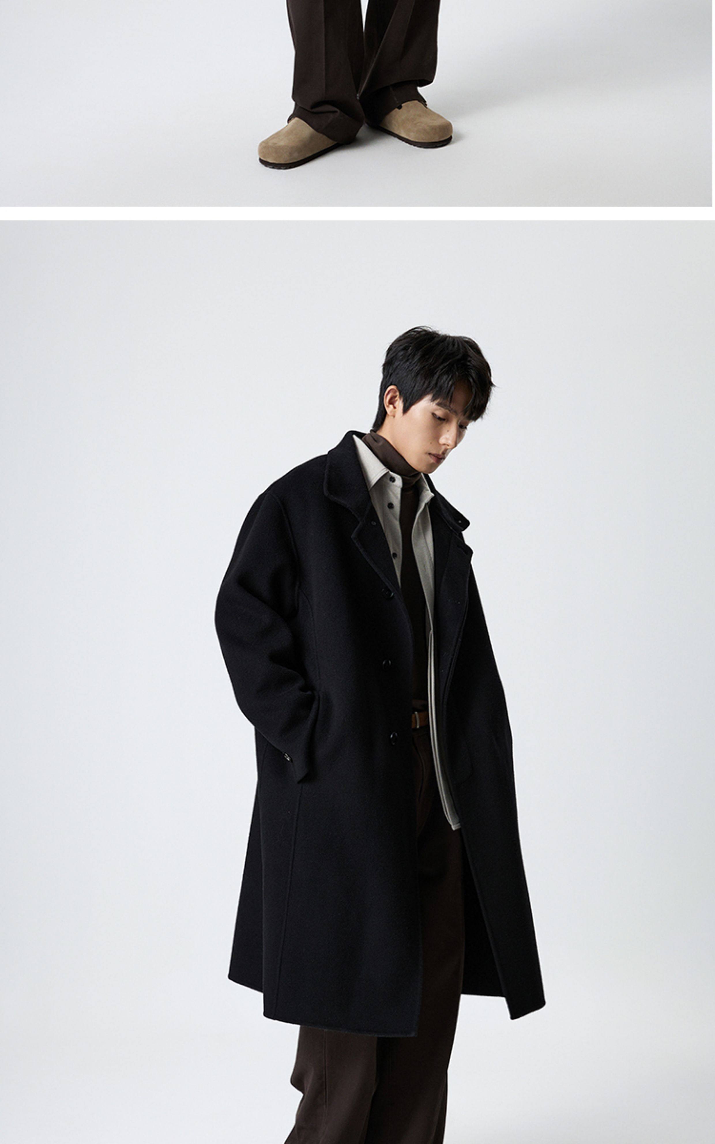 Tutm Men's Clothing [Pure Wool] Warm Double-Sided Woolen German-Style Coat Men's Long Over-The-Knee Winter Woolen Jacket