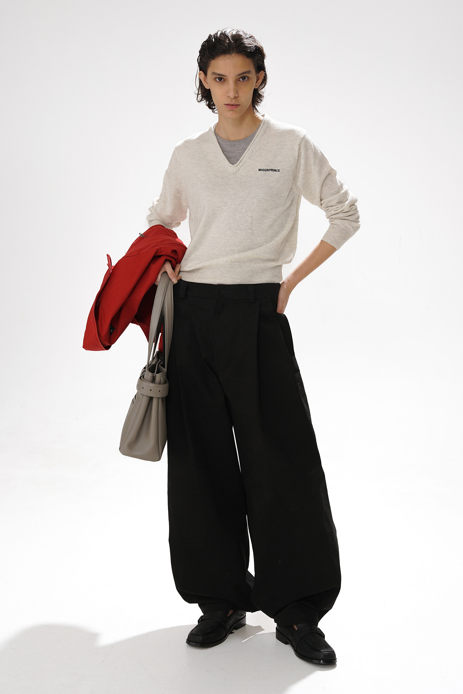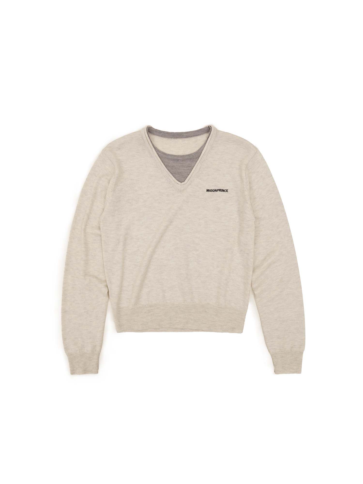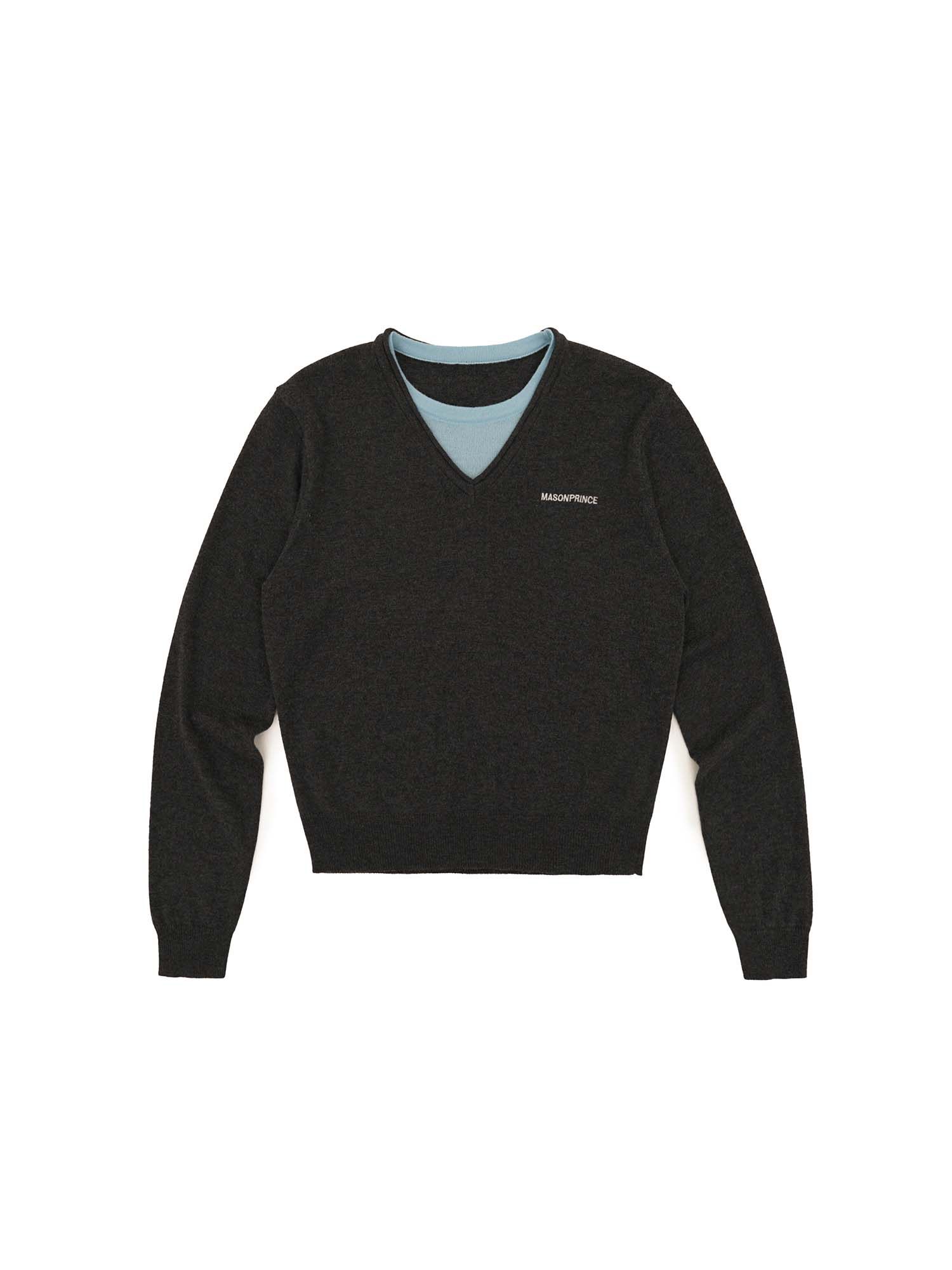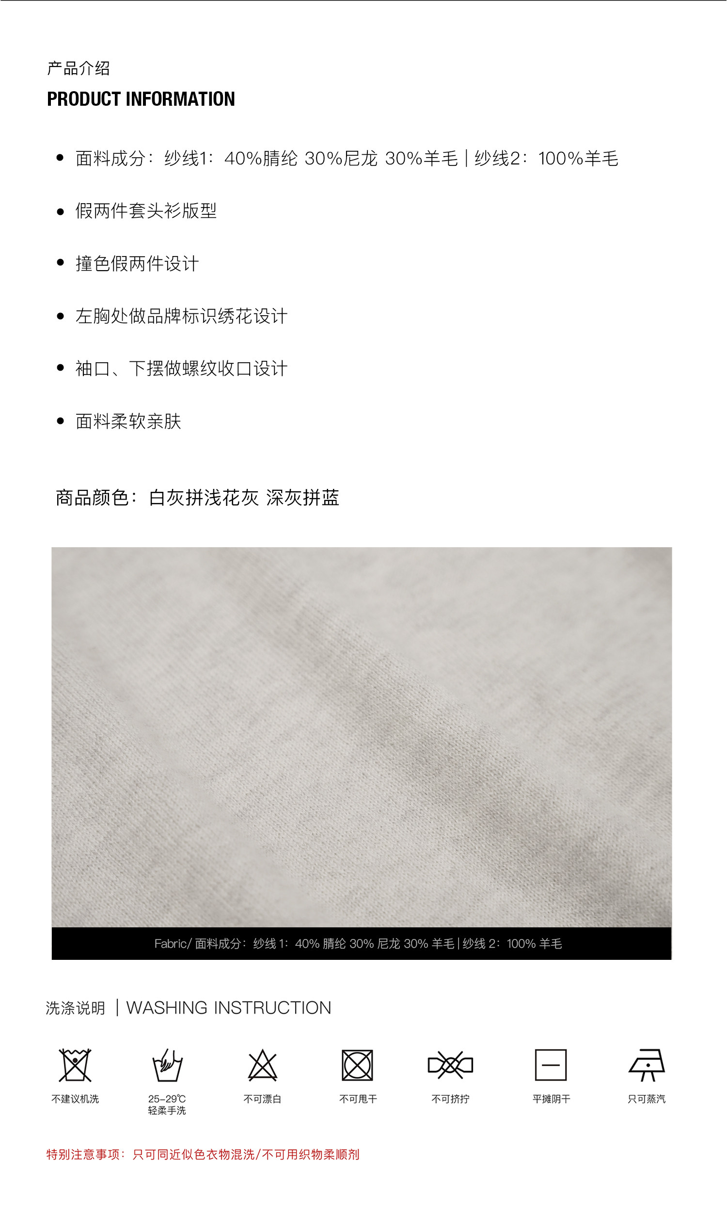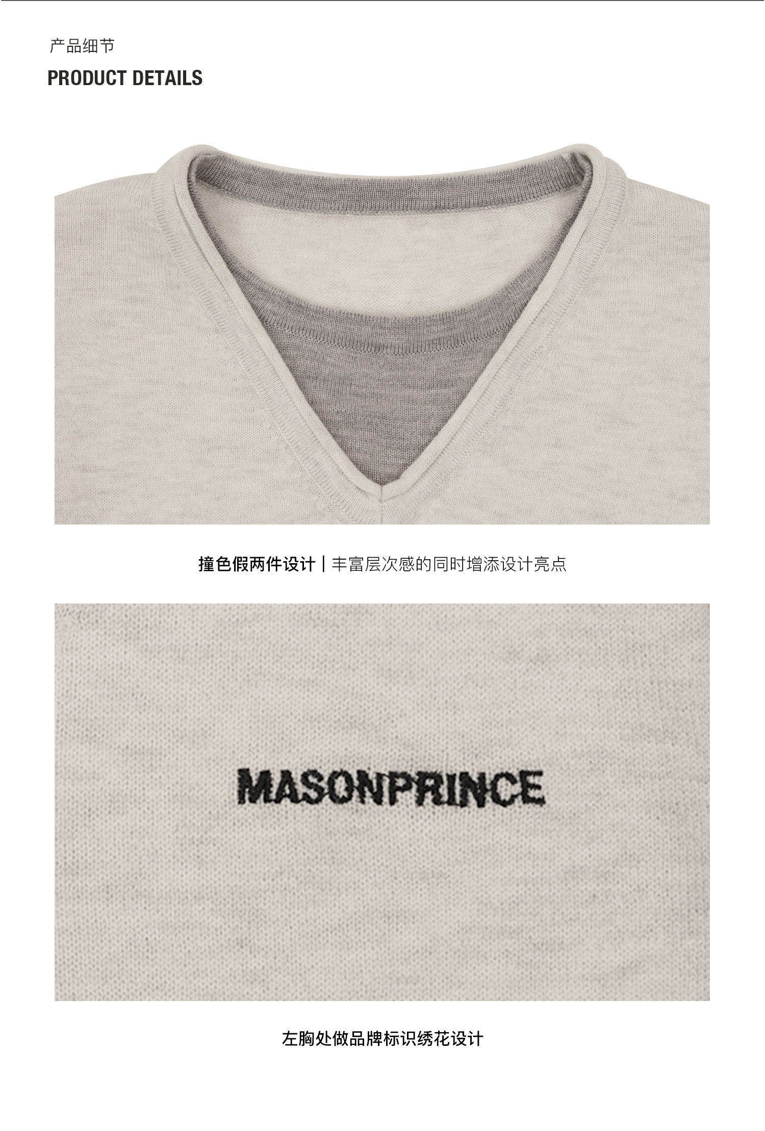 Masonprince* Wears a Stylish Spring Color-Blocked Faux Two-Piece Wool Sweater with Small Embroidery