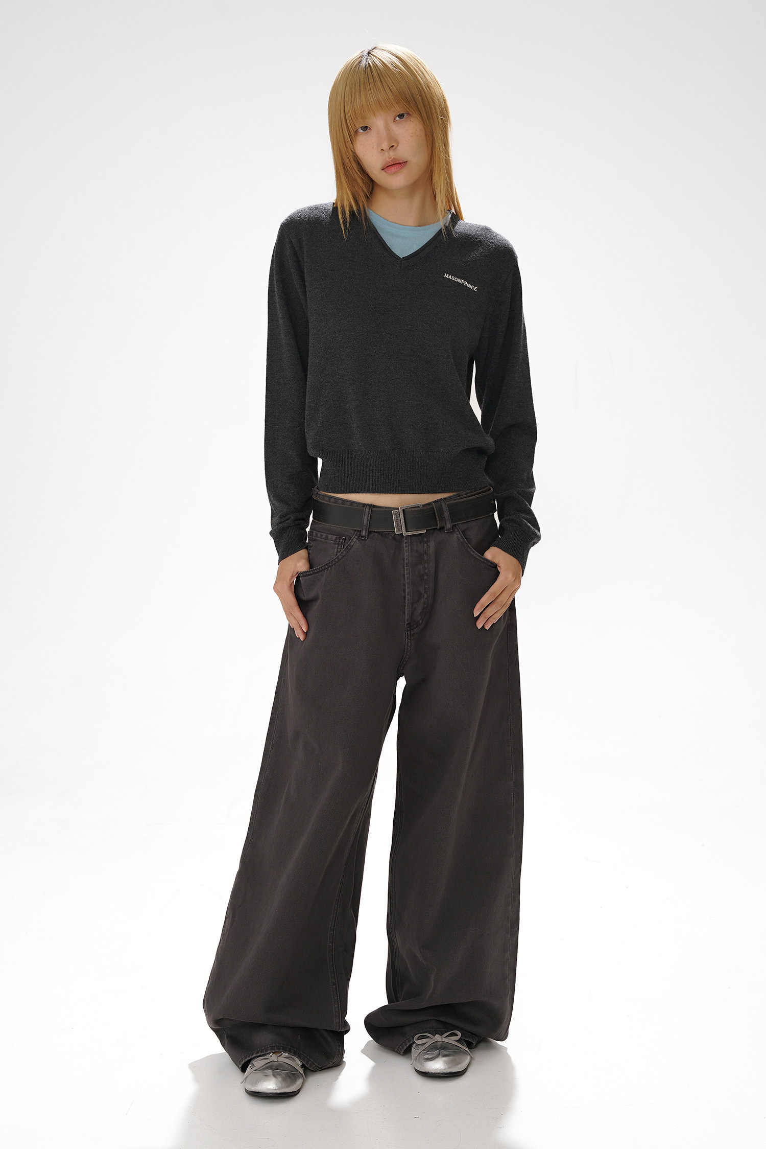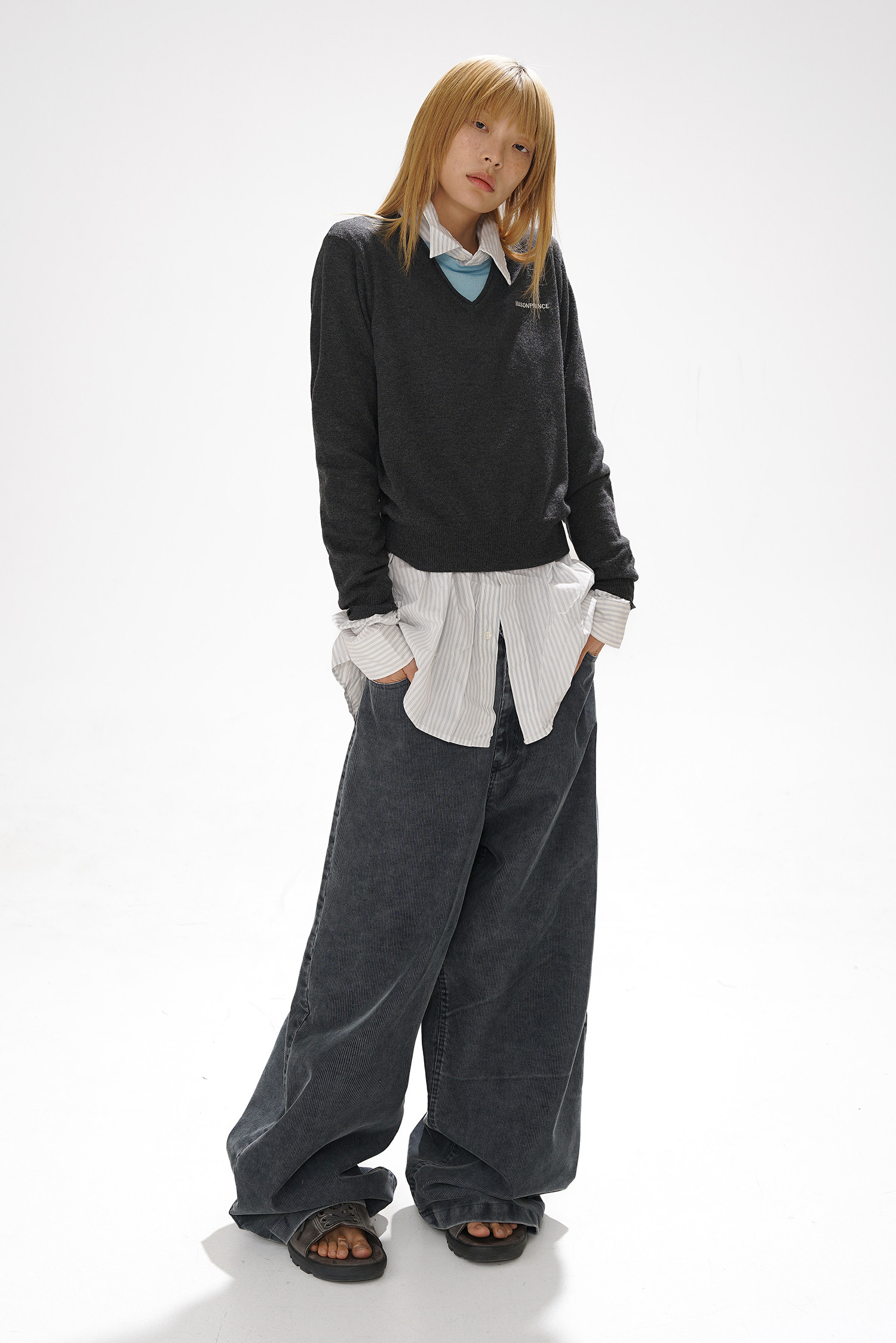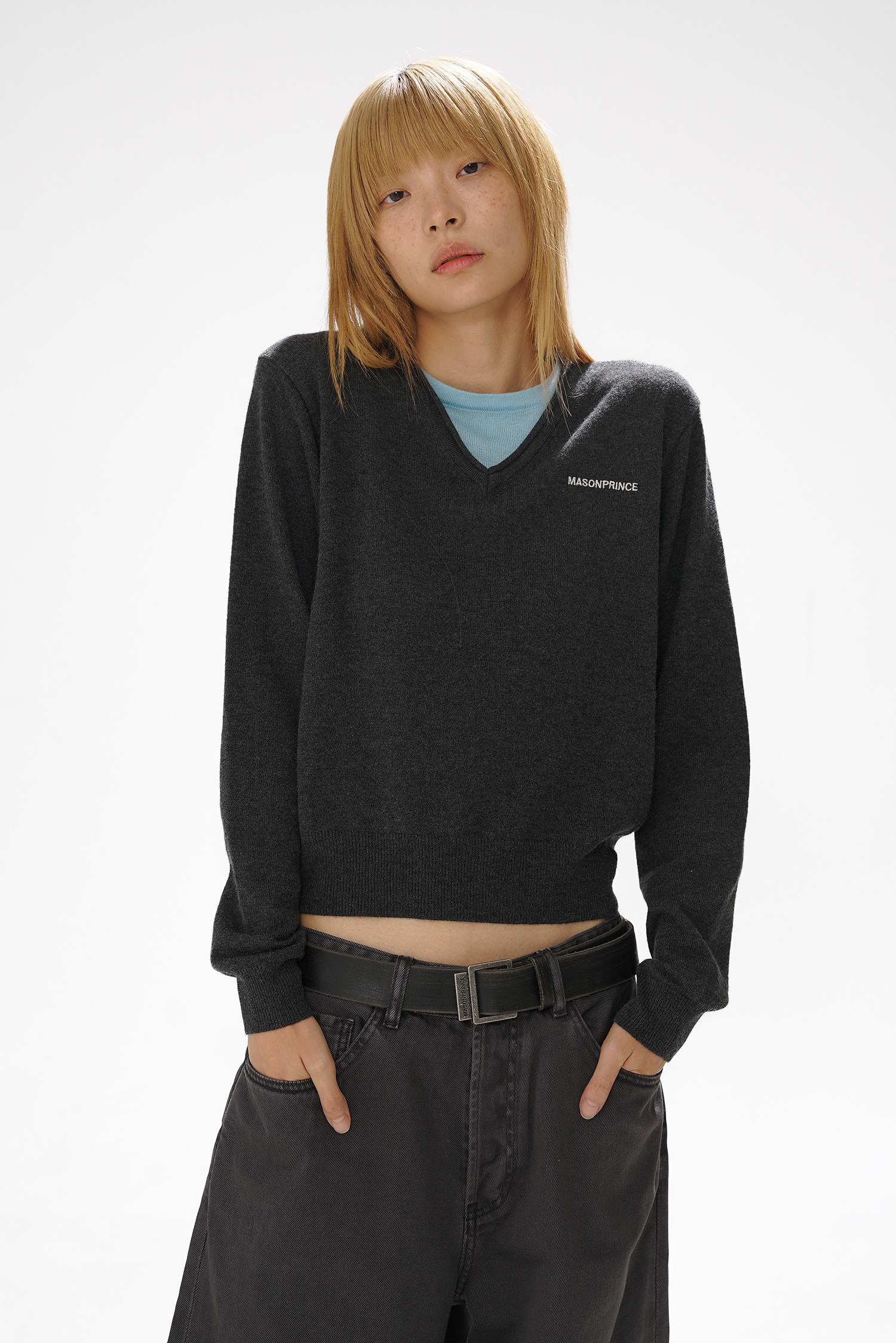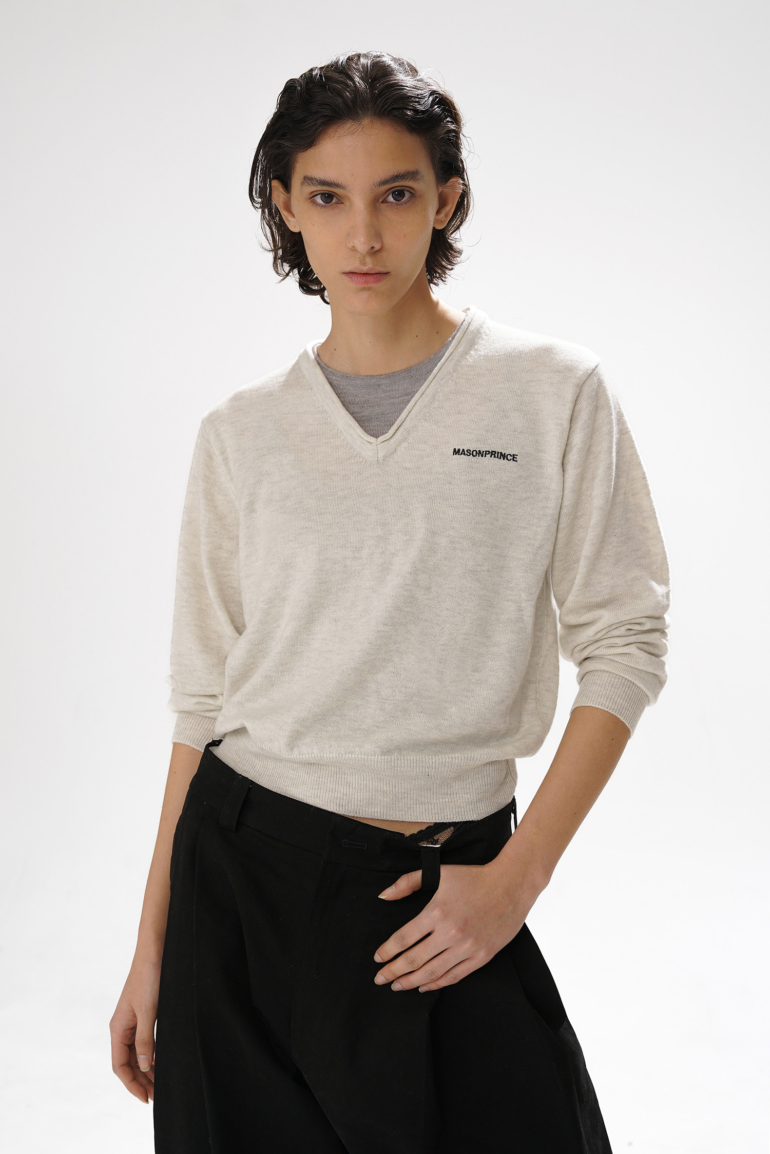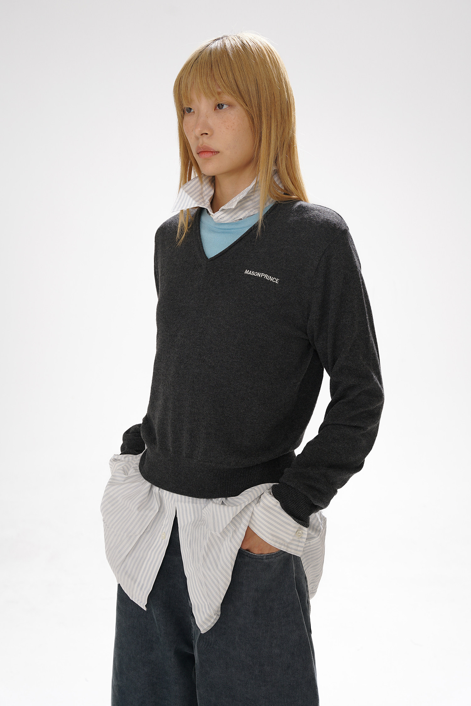 Masonprince* Wears a Stylish Spring Color-Blocked Faux Two-Piece Wool Sweater with Small Embroidery
