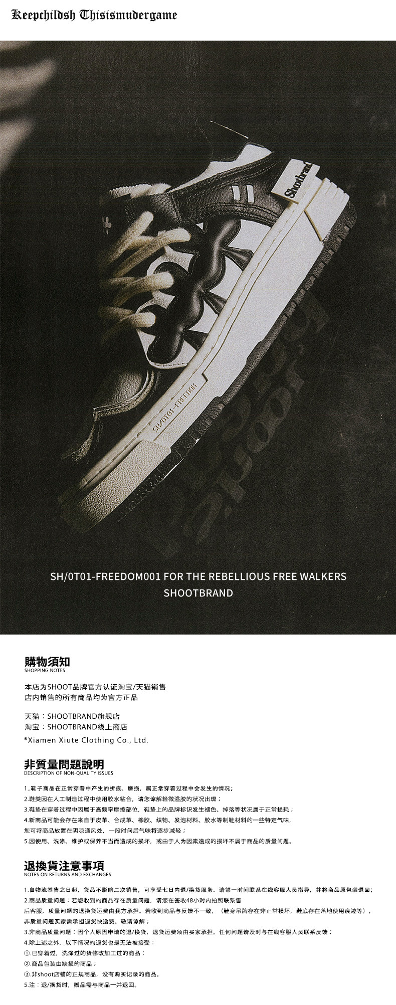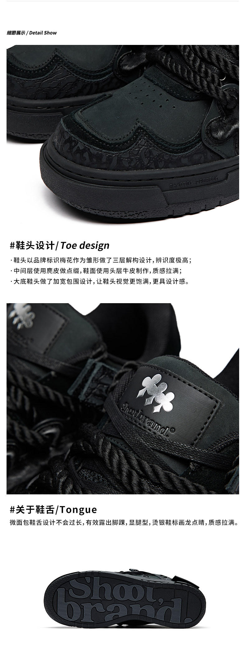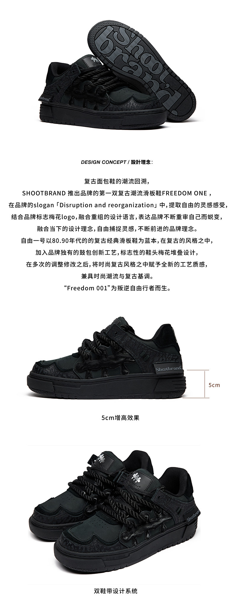 【Lightweight Upgrade】Shoot Brand Black Warrior Freedom No. 1 Skate Shoes Low-Top Wear-Resistant Thick-Soled Skateboarding Shoes