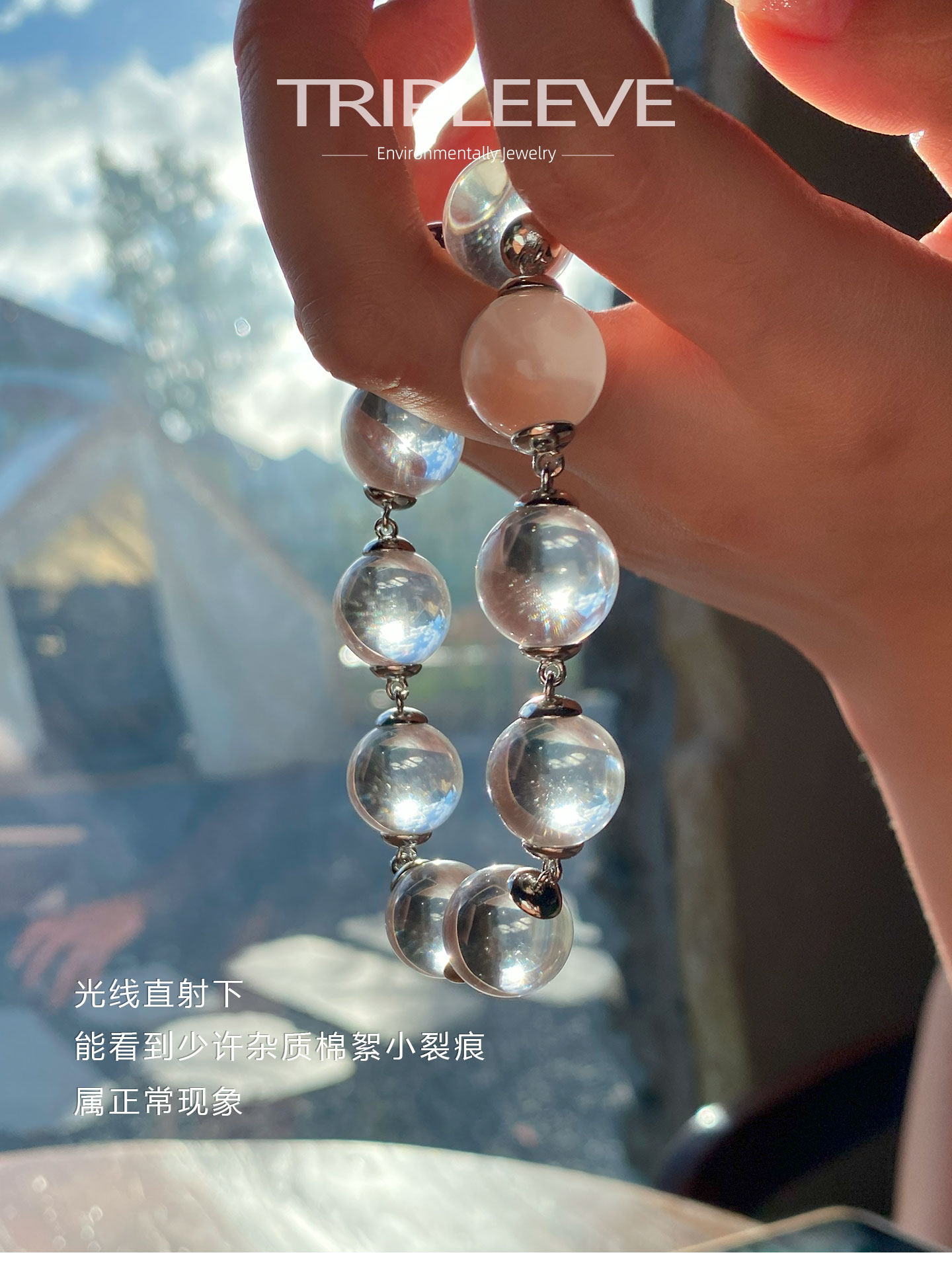 Emotional Stabilizer! Original Design White Crystal Bracelet, Fully Clear 8A Large Hole-Free Ox-Nose Crystal Ball