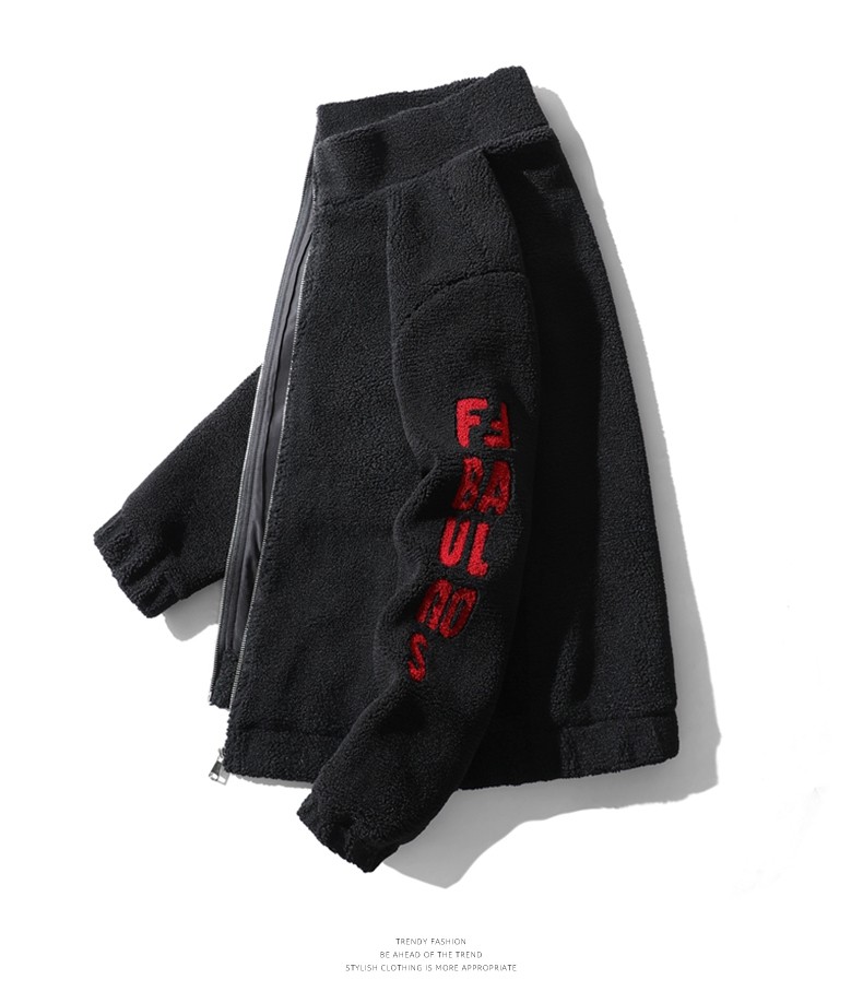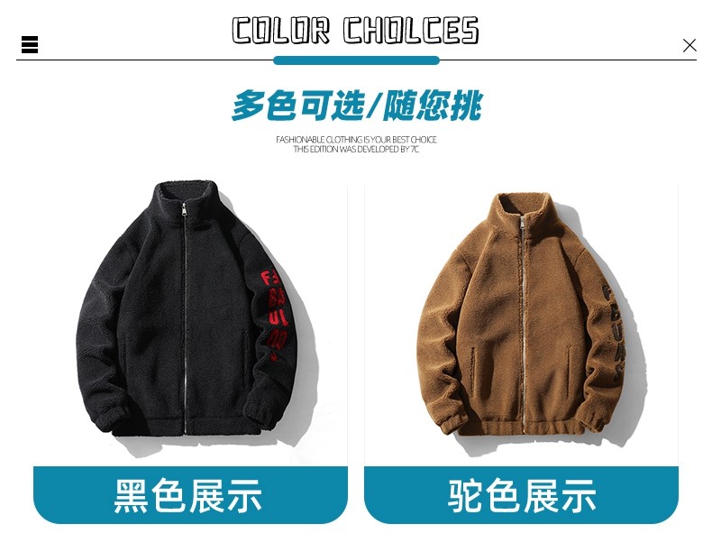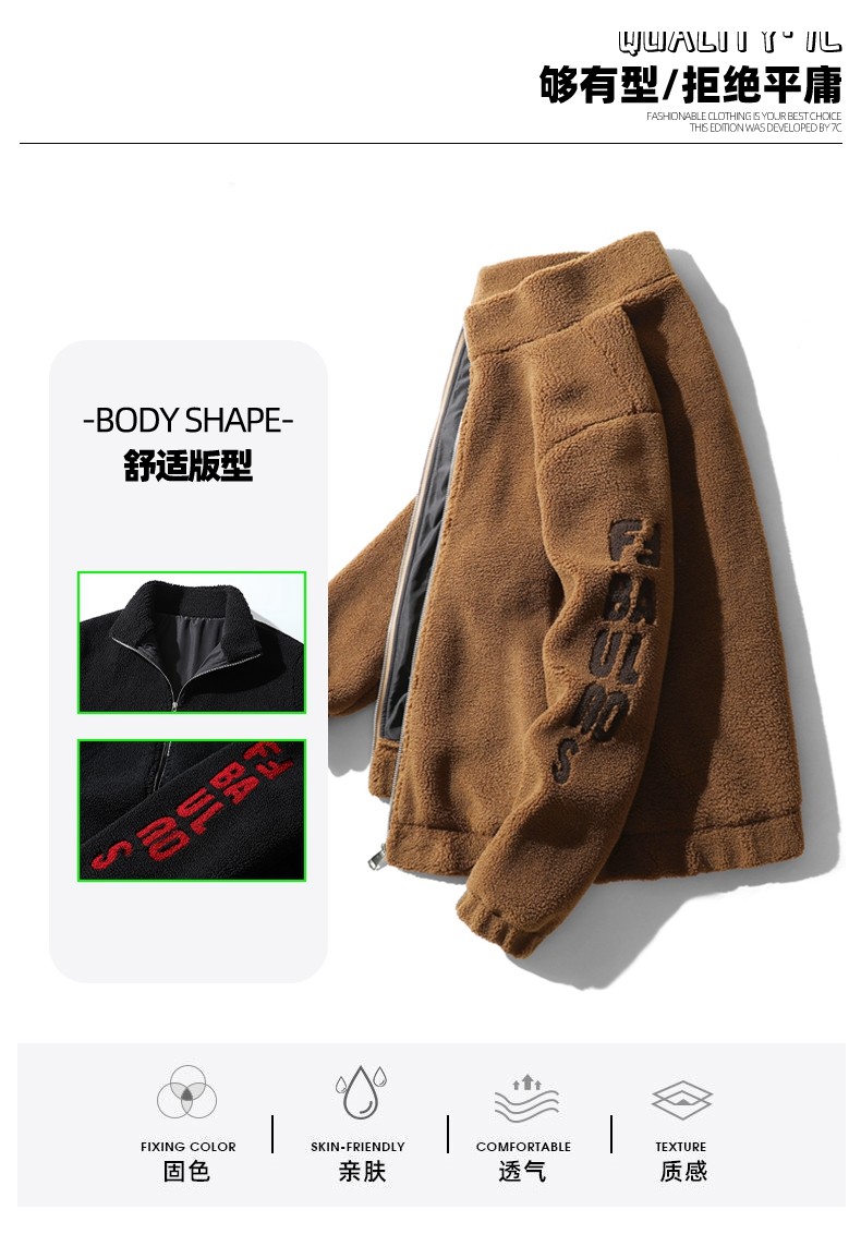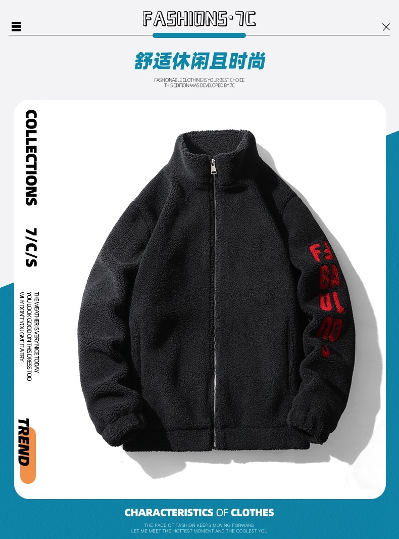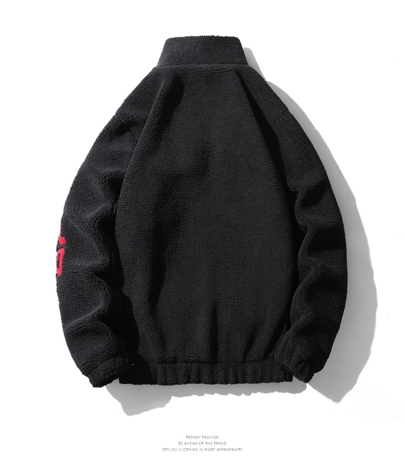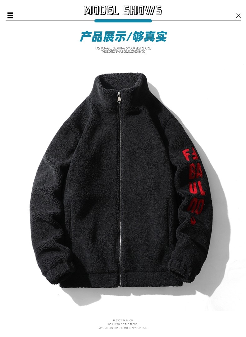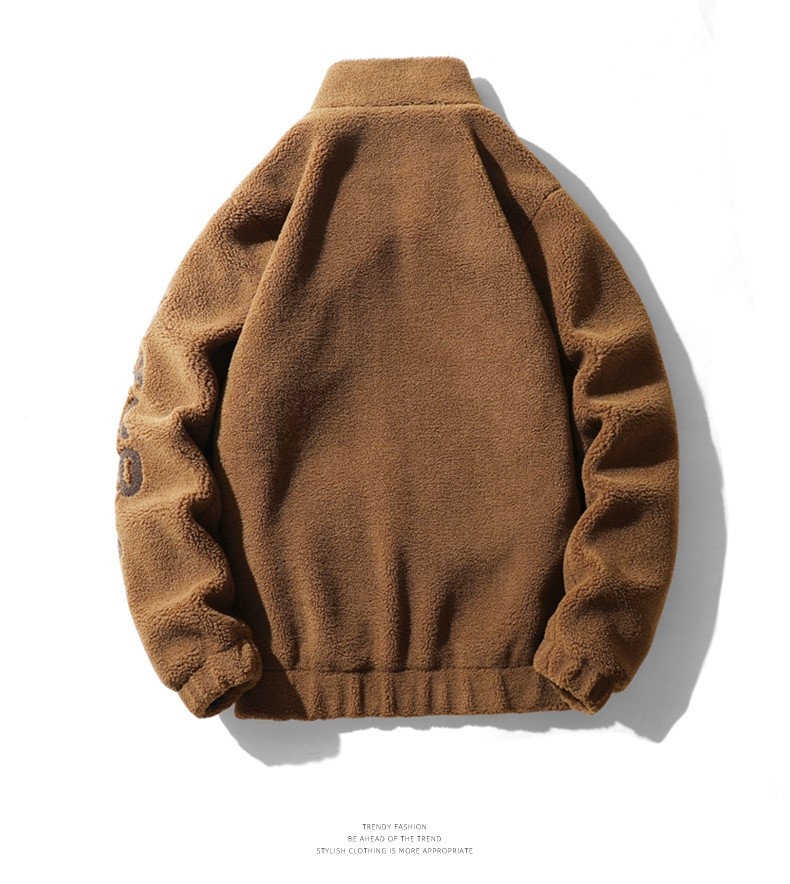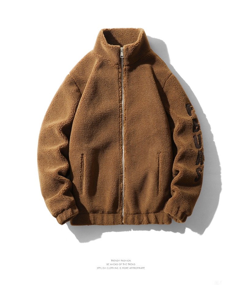 Jeep Spirit Men's Winter Casual Stand-Up Collar Fleece Jacket with Thickened Lamb Wool Cotton Coat for Men