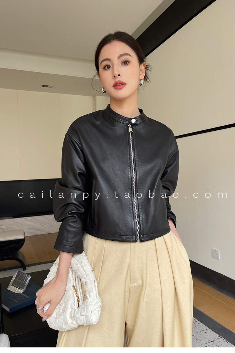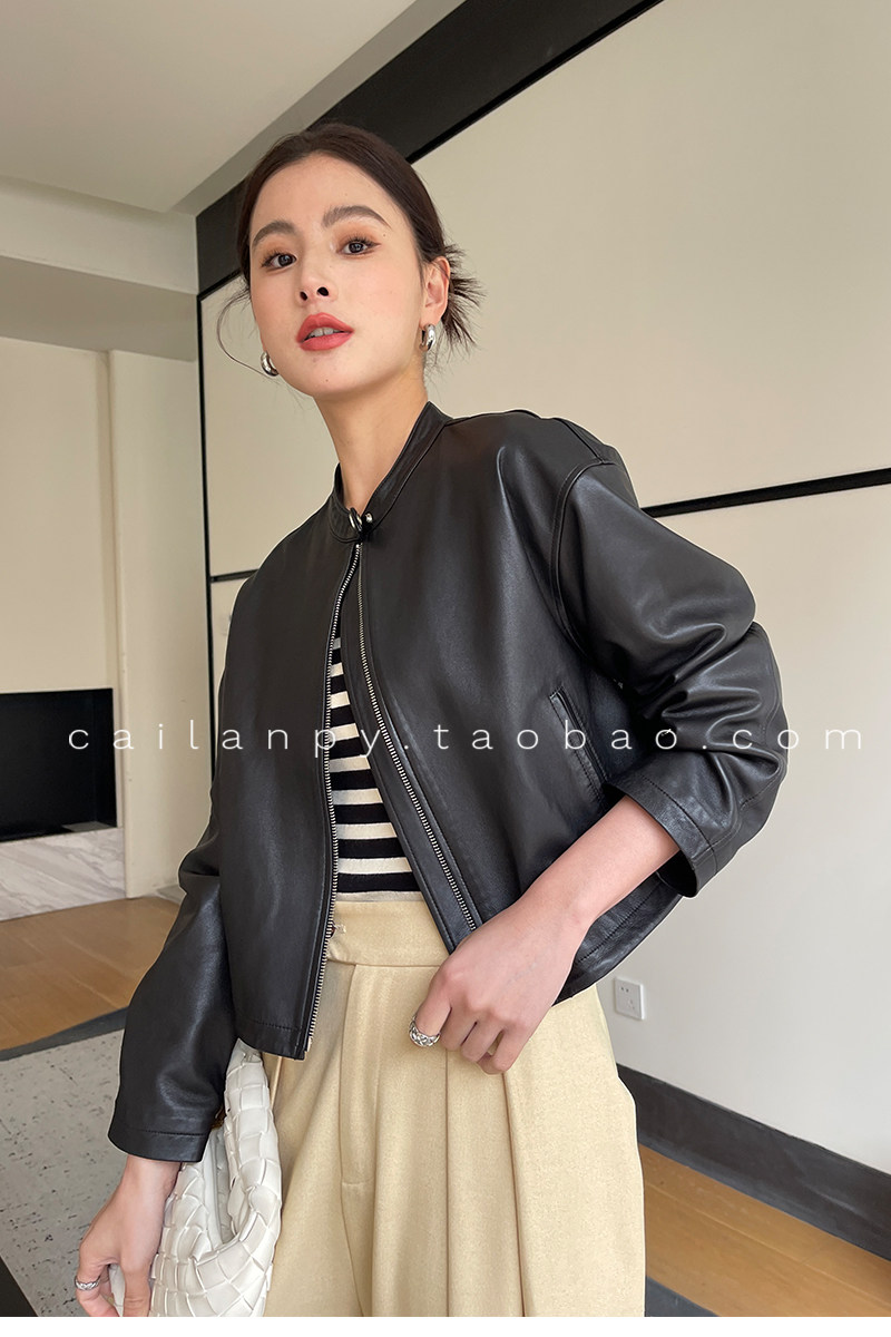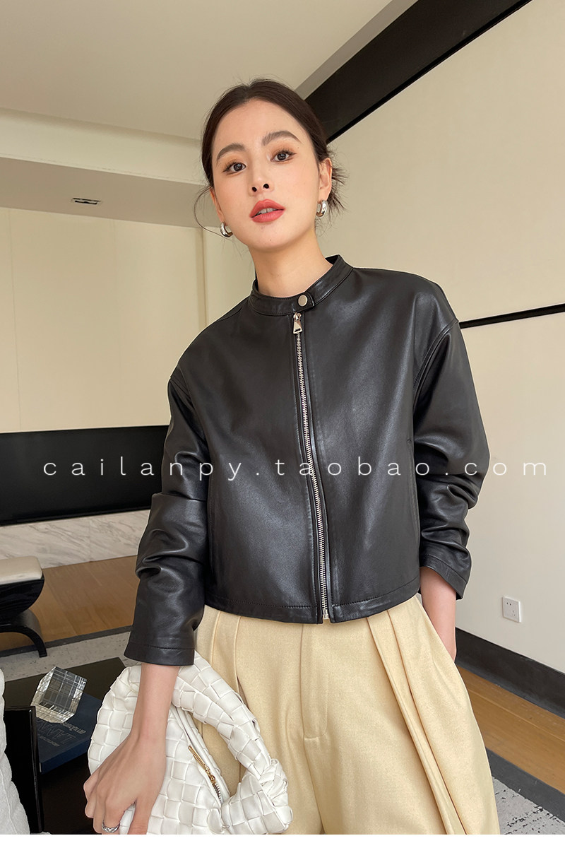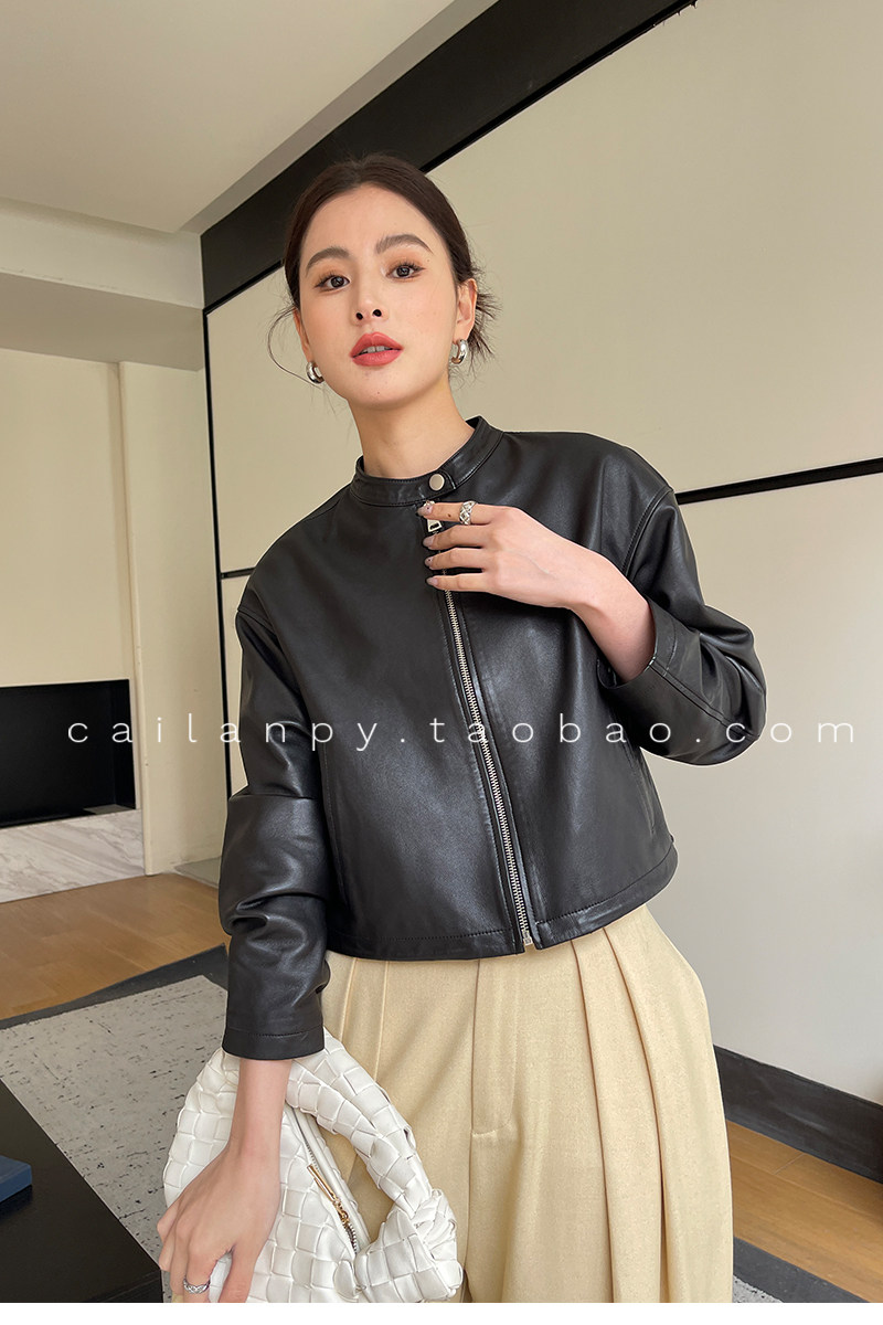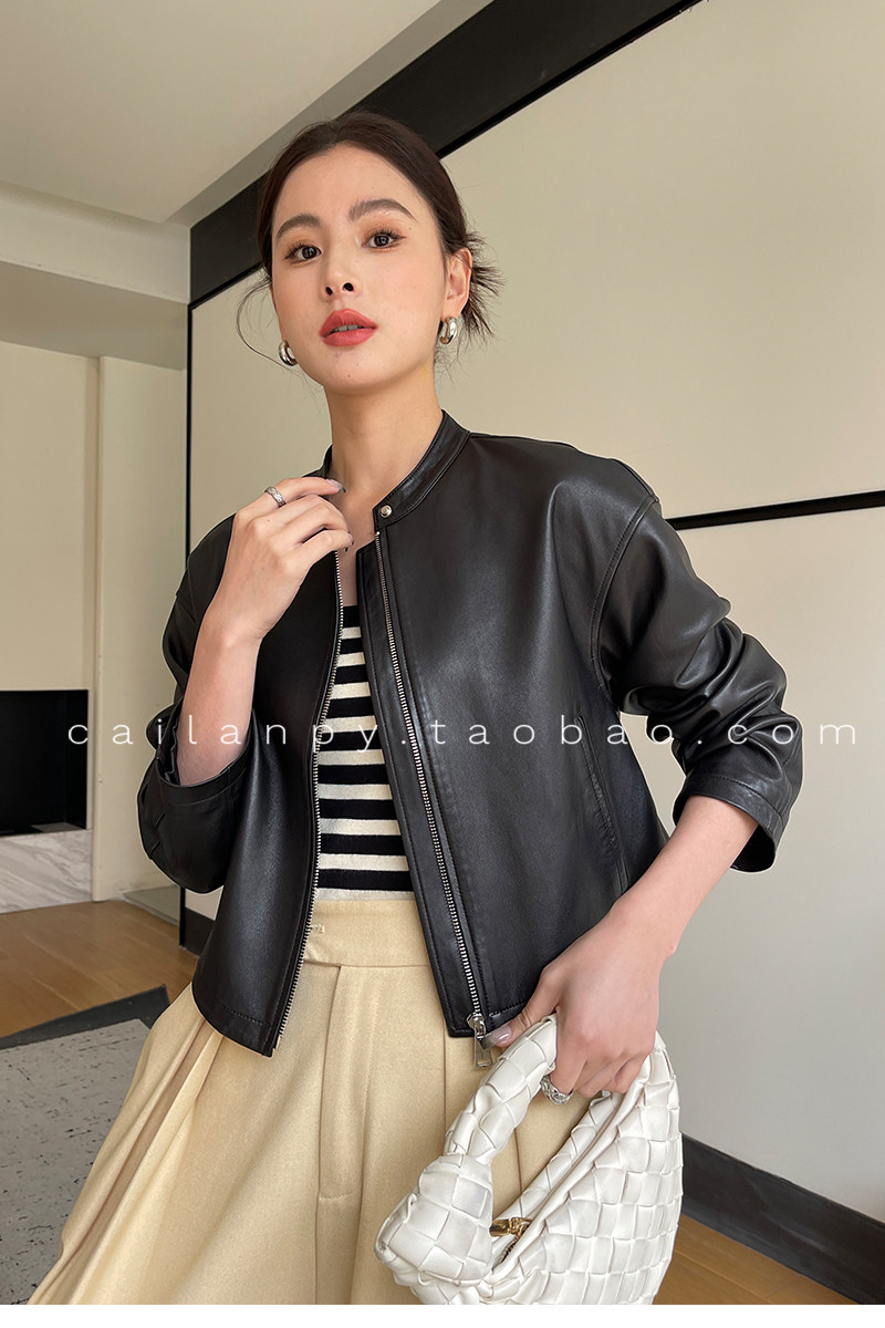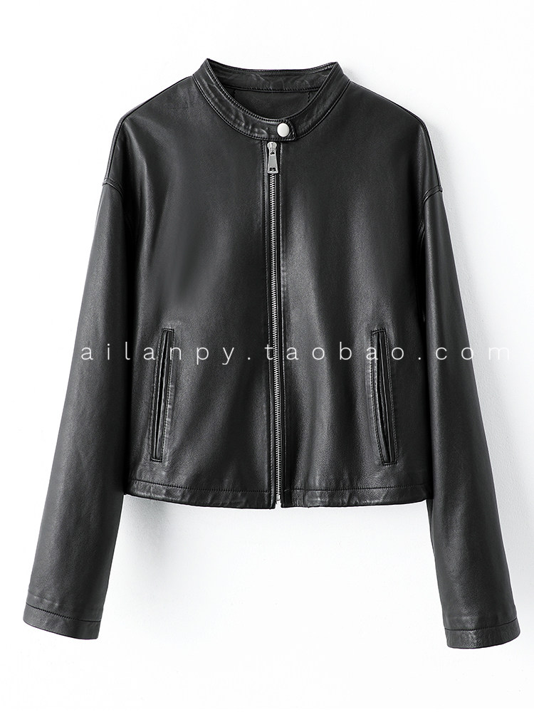 Imported Genuine Leather Top-Layer Vegetable-Tanned Sheepskin Women's Short Stand-Collar Simple Jacket Coat 2025 Autumn Petite Leather Jacket