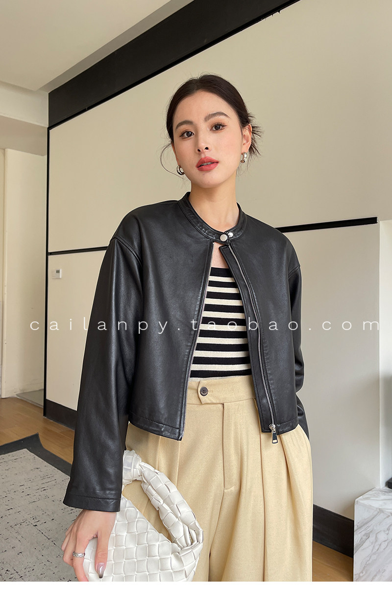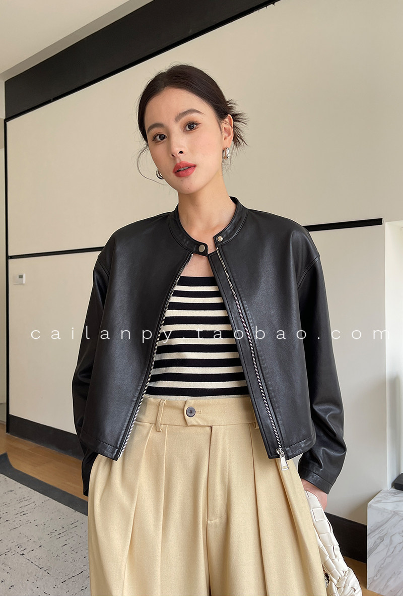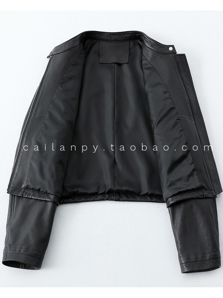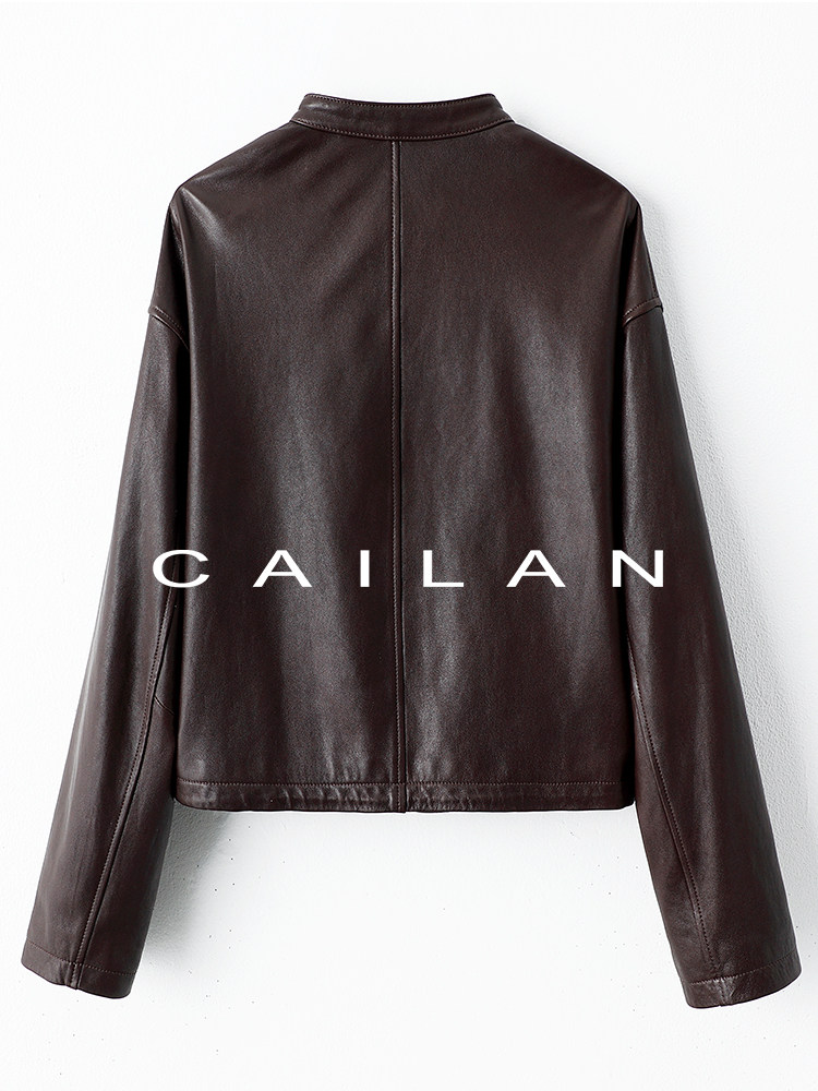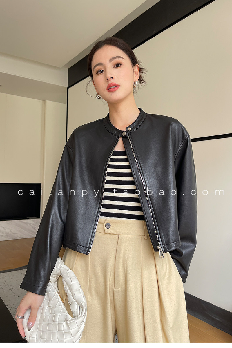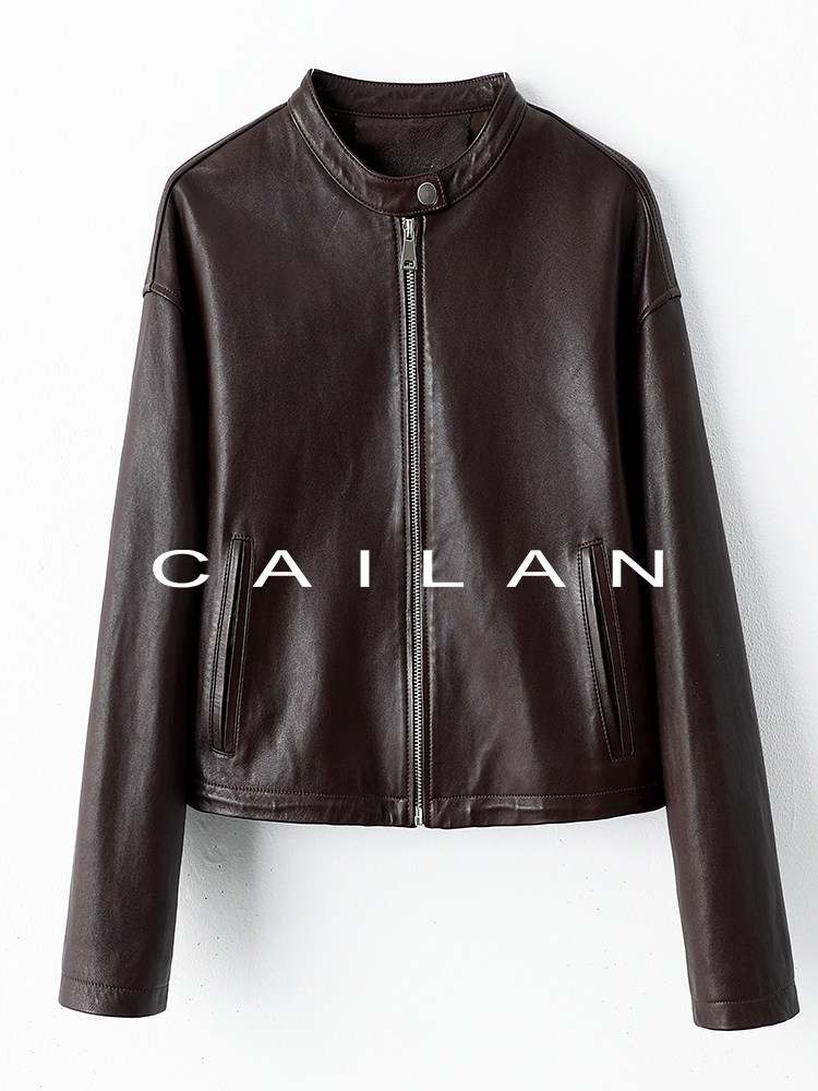 Imported Genuine Leather Top-Layer Vegetable-Tanned Sheepskin Women's Short Stand-Collar Simple Jacket Coat 2025 Autumn Petite Leather Jacket