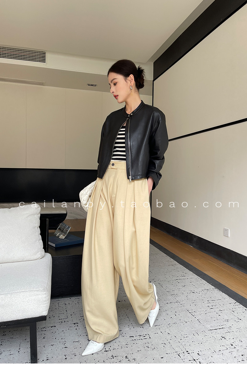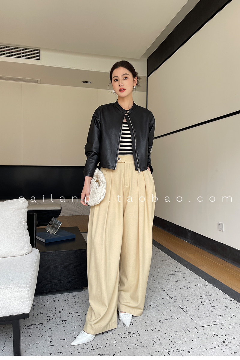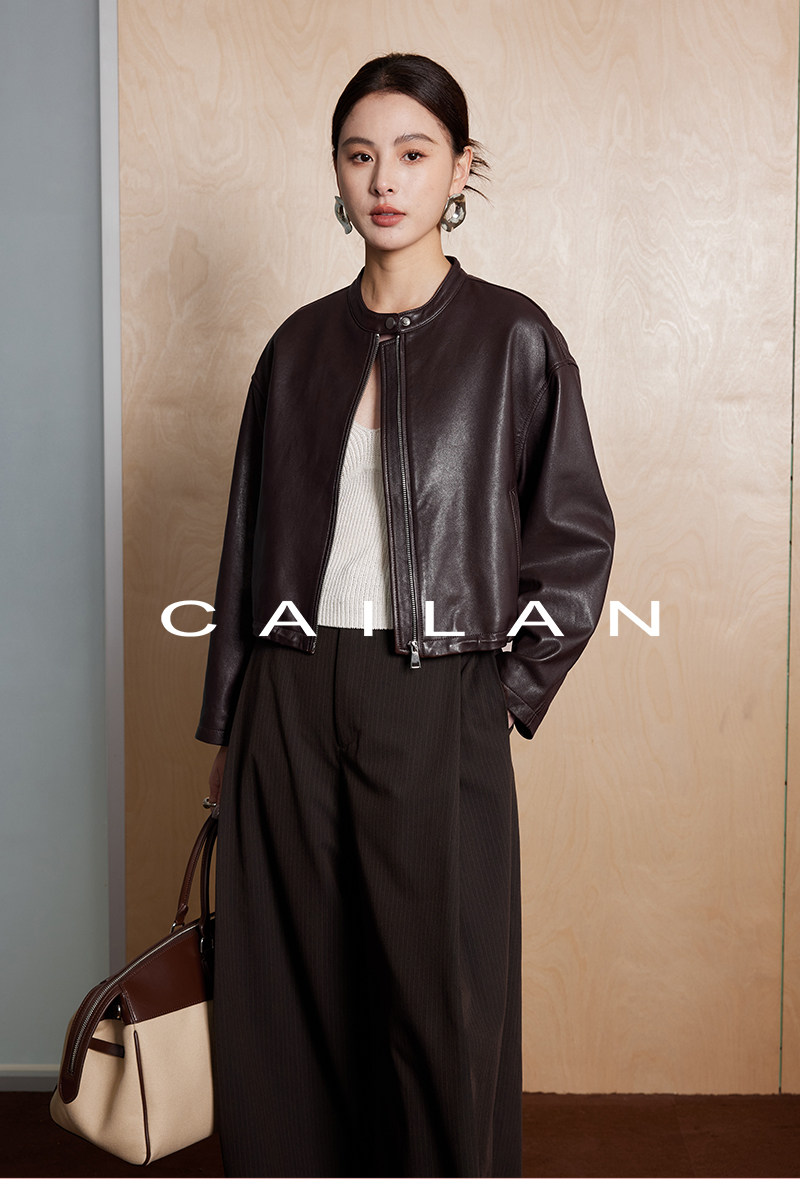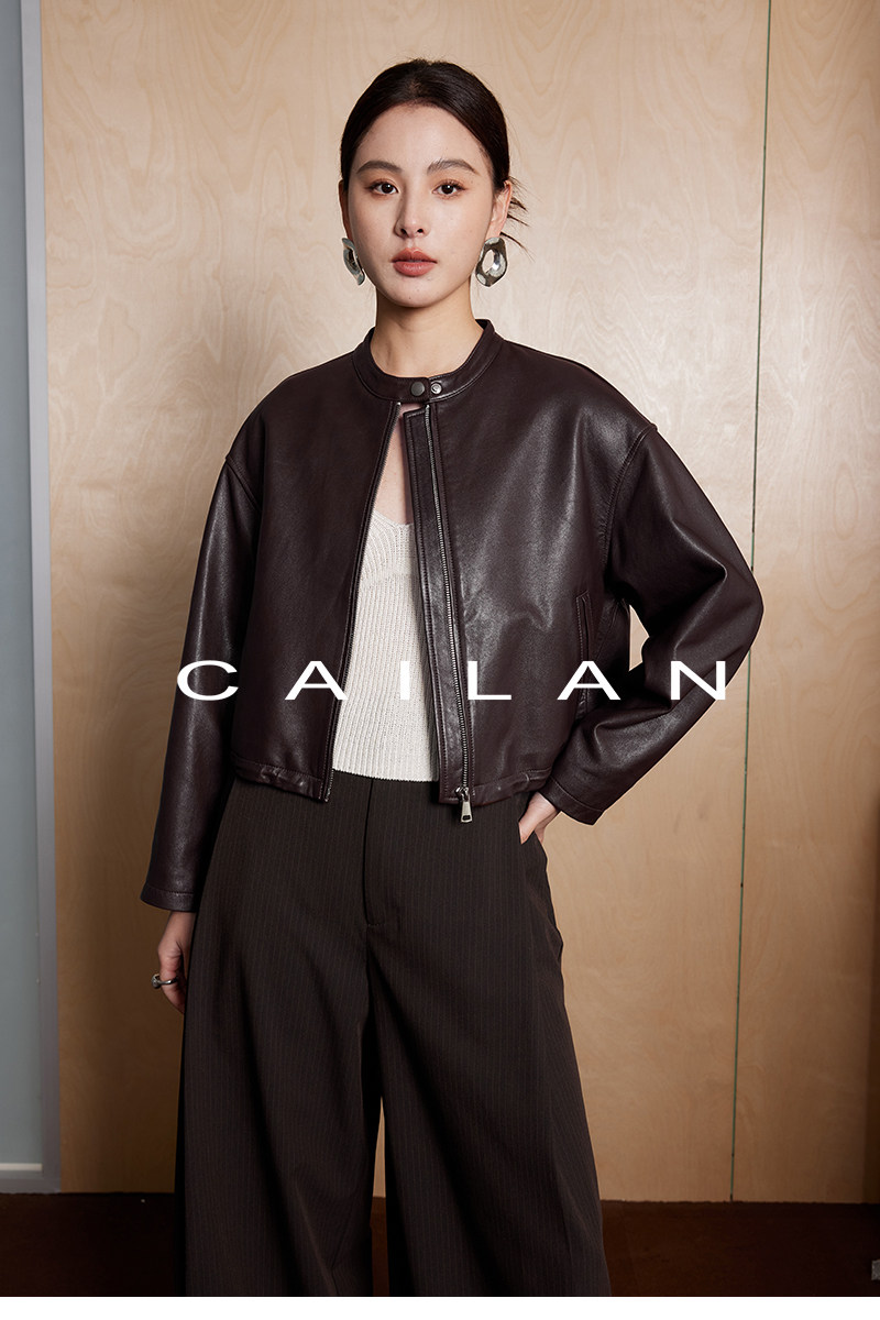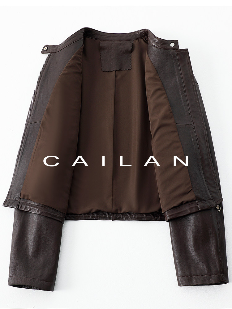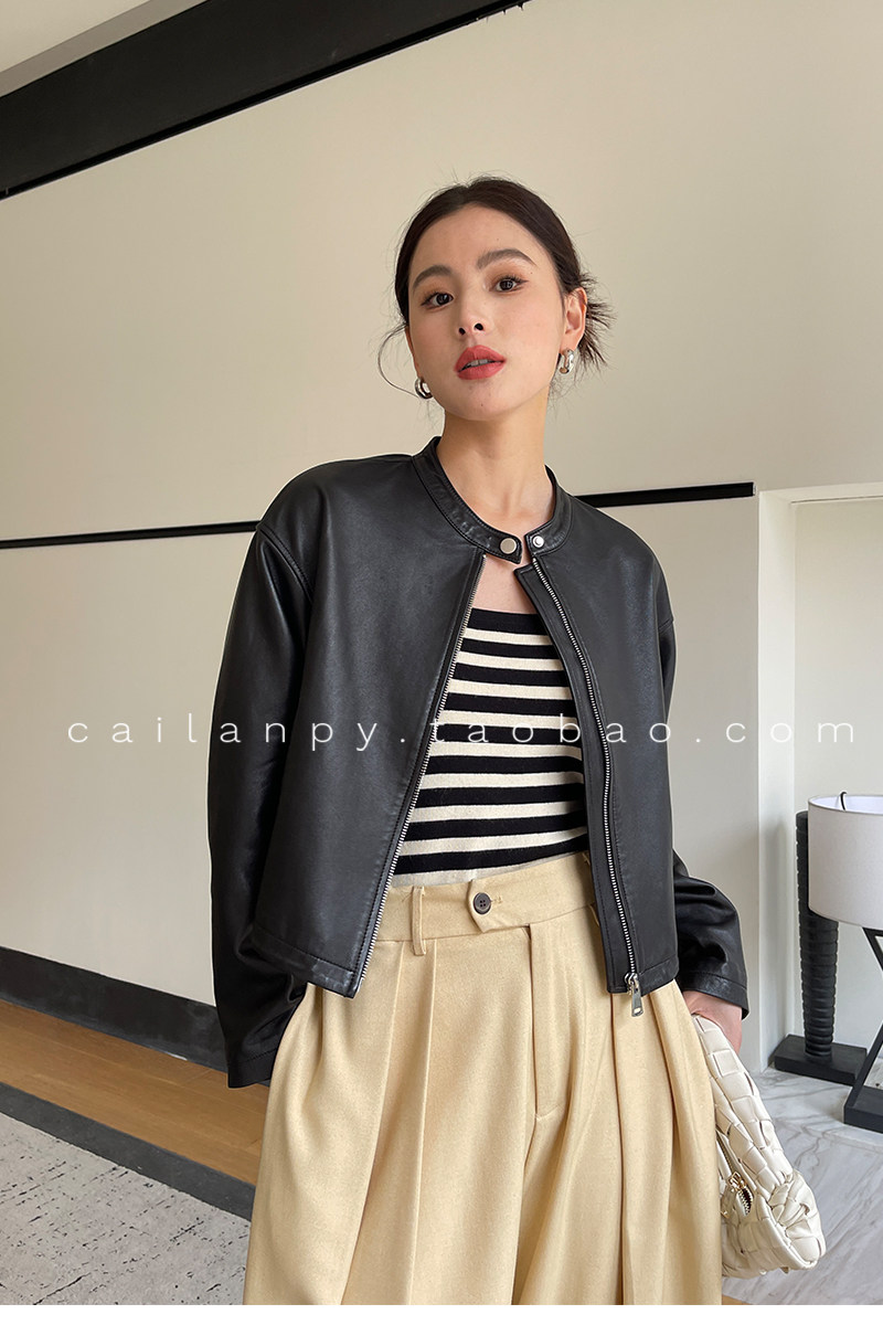 Imported Genuine Leather Top-Layer Vegetable-Tanned Sheepskin Women's Short Stand-Collar Simple Jacket Coat 2025 Autumn Petite Leather Jacket