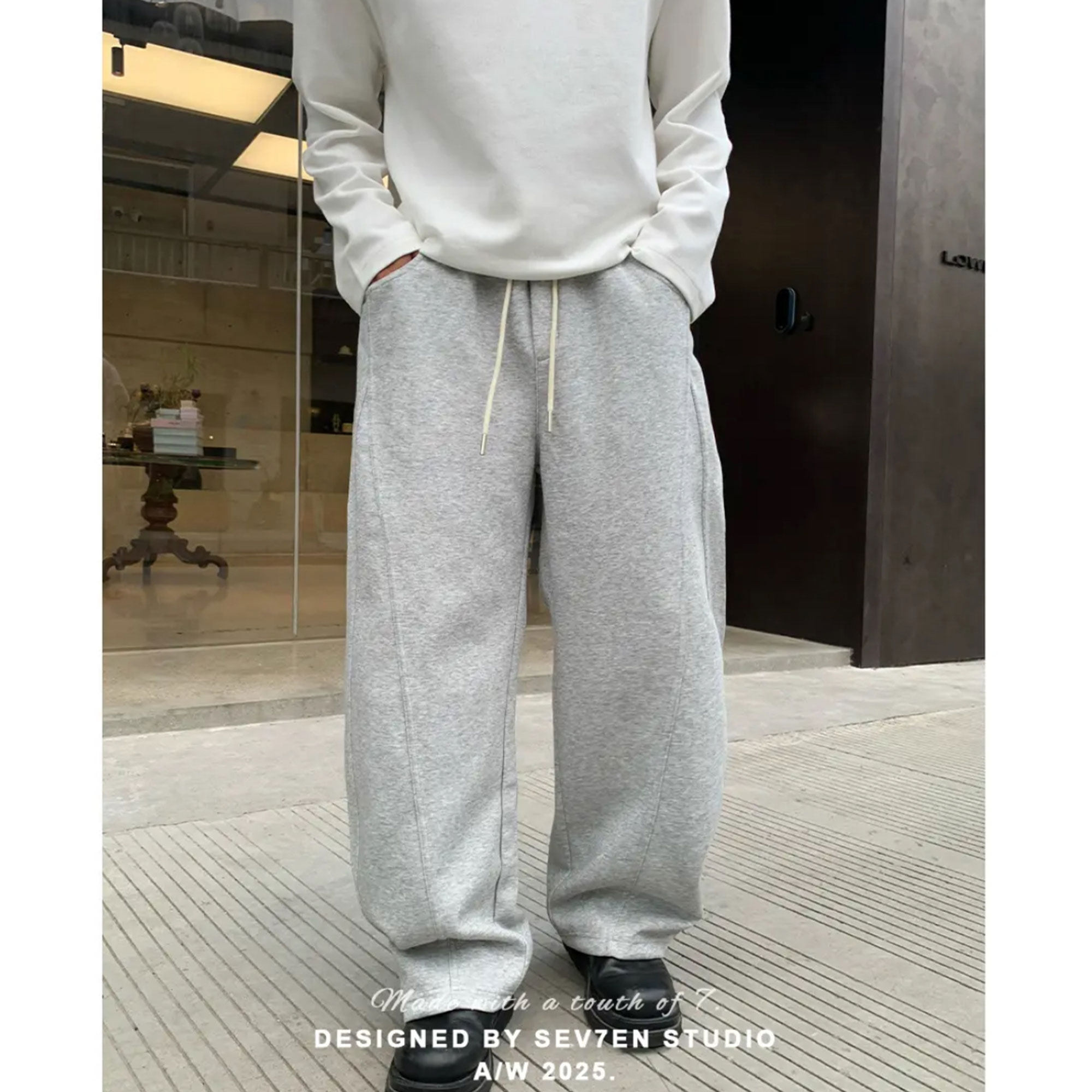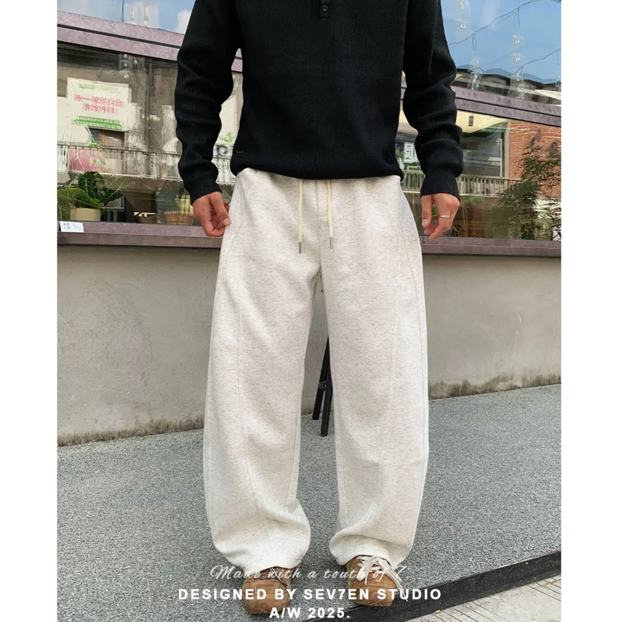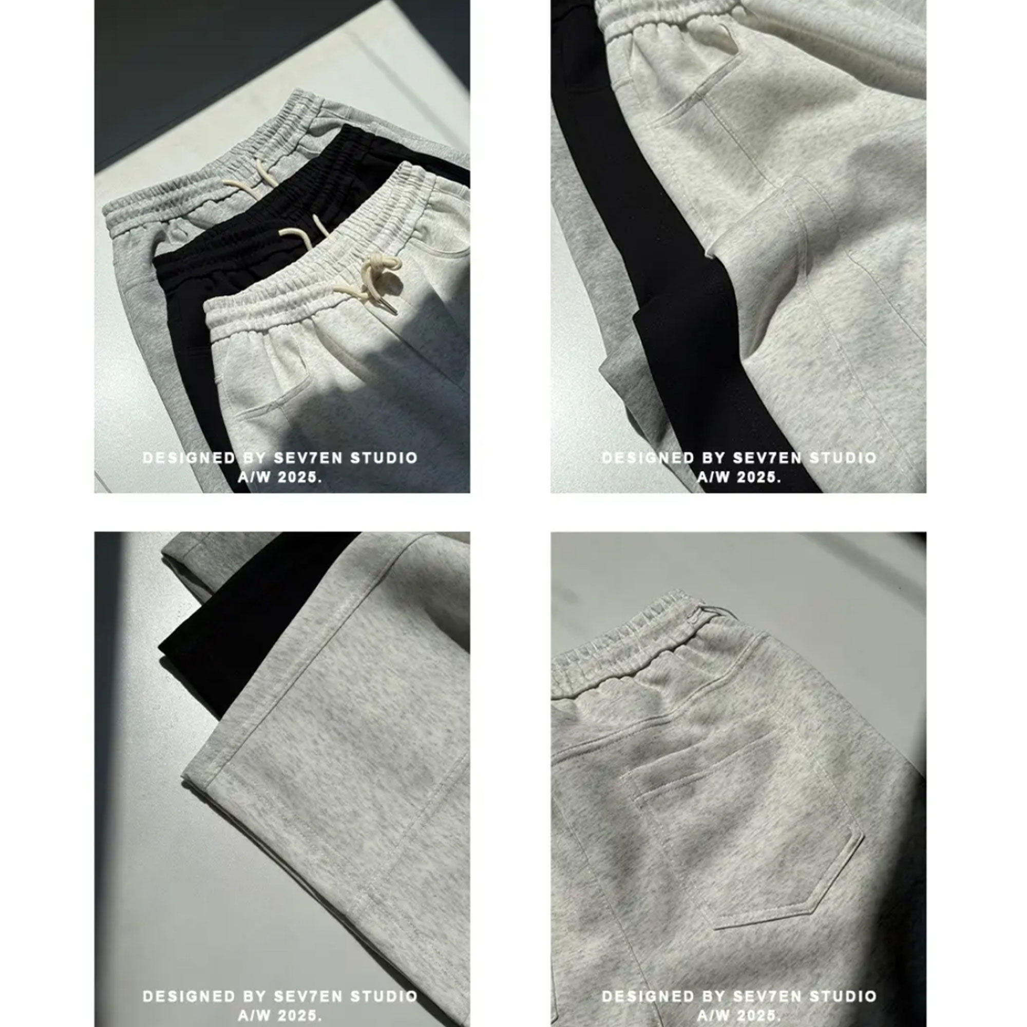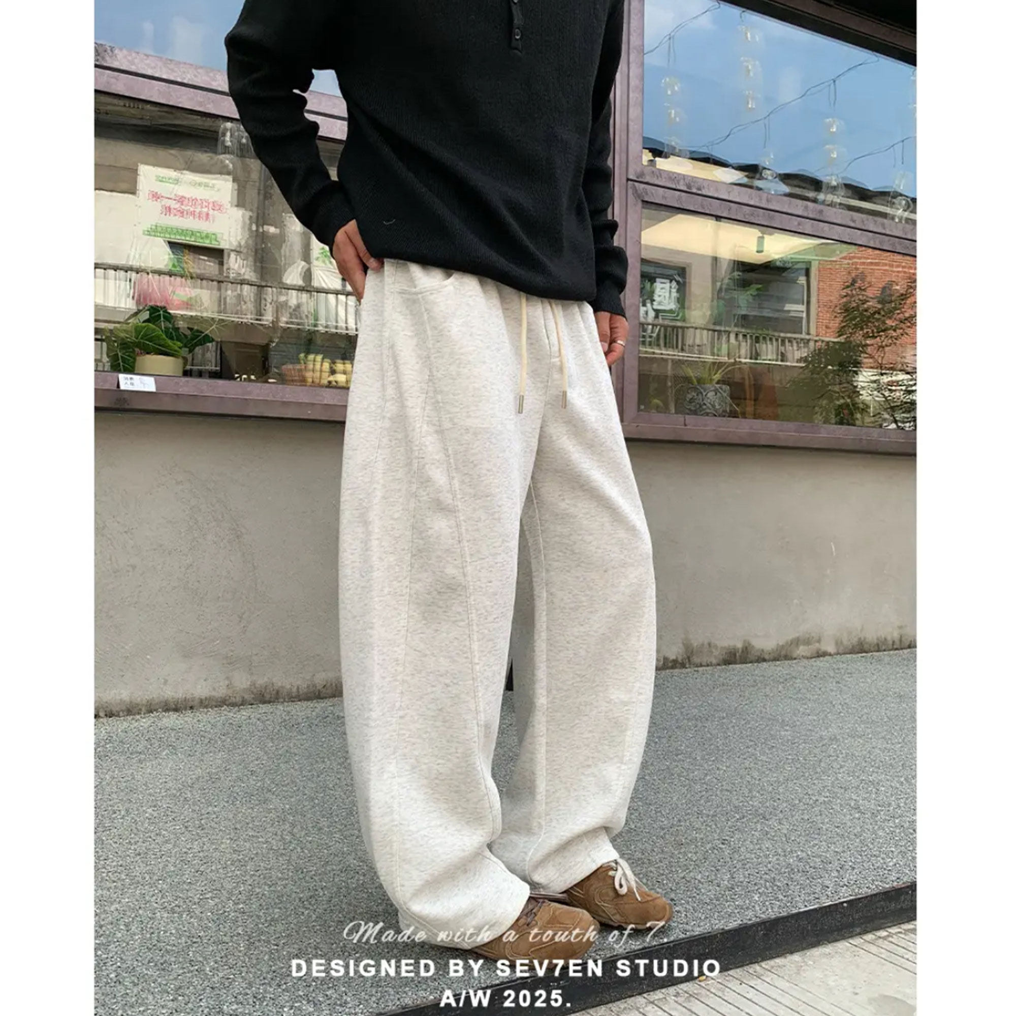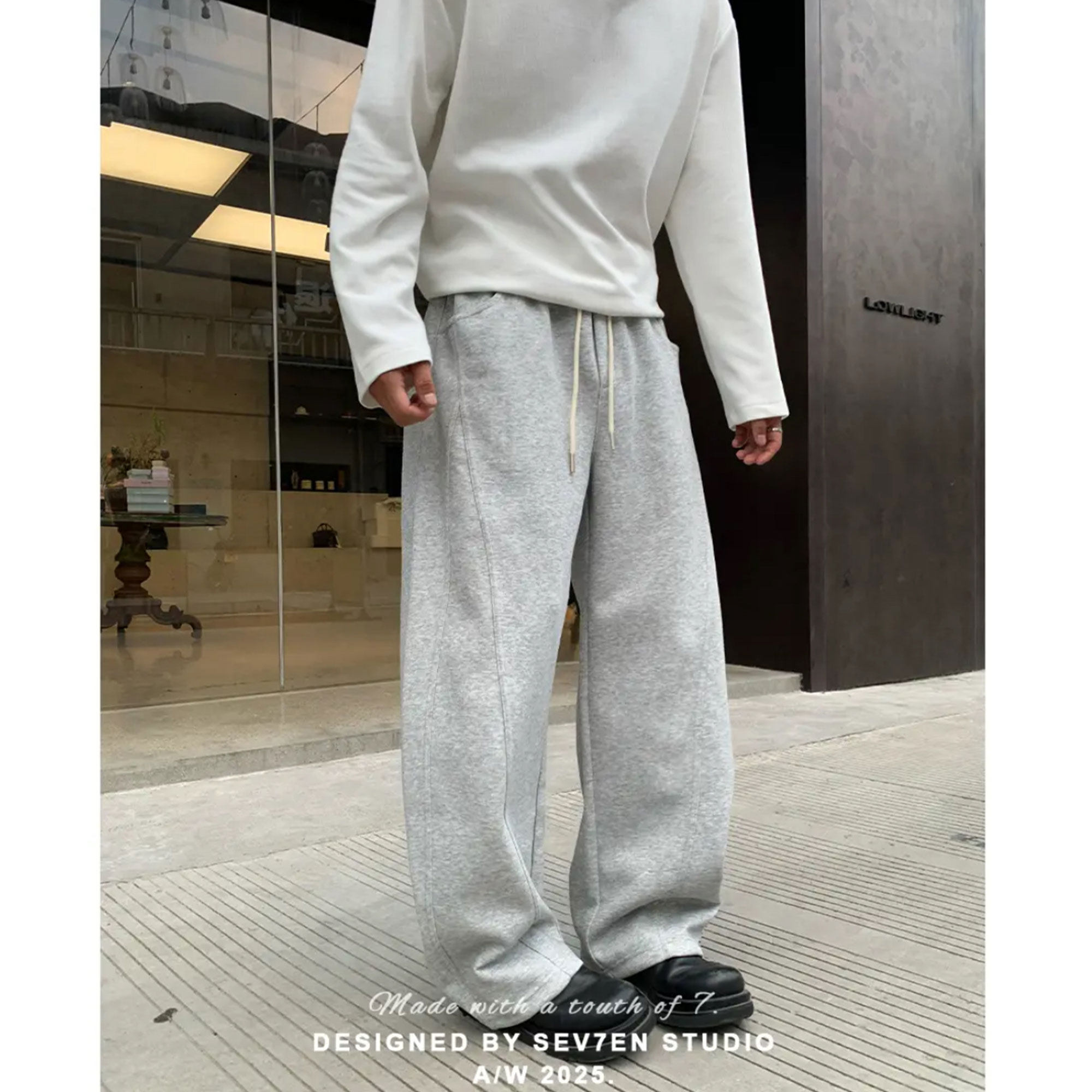 Spring and Autumn New Korean Style Trendy Gray Versatile Wide-Leg Pants for Men, Loose Casual Drawstring Solid Color Draped Straight-Leg Sweatpants
