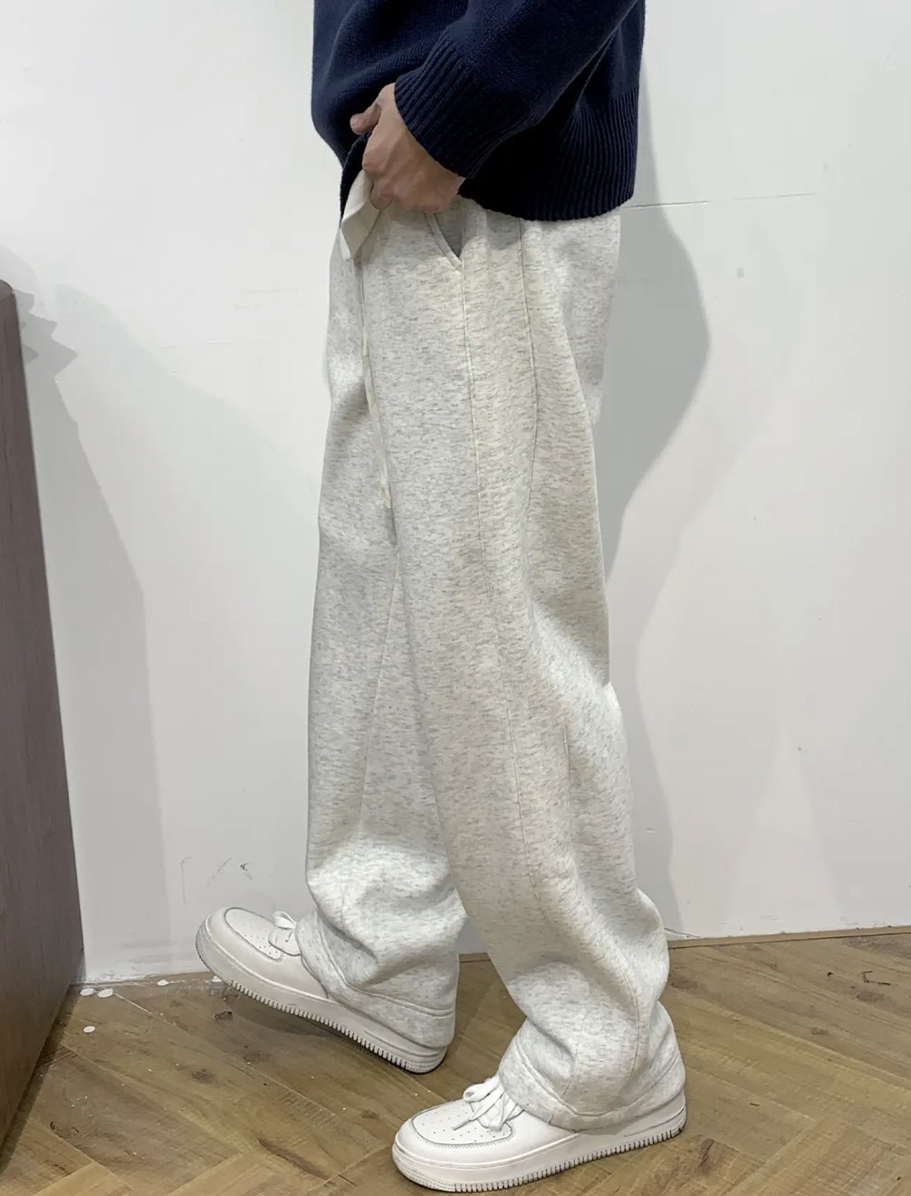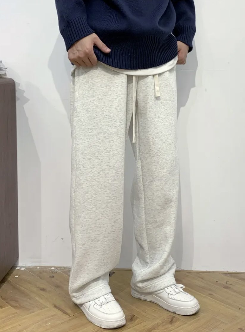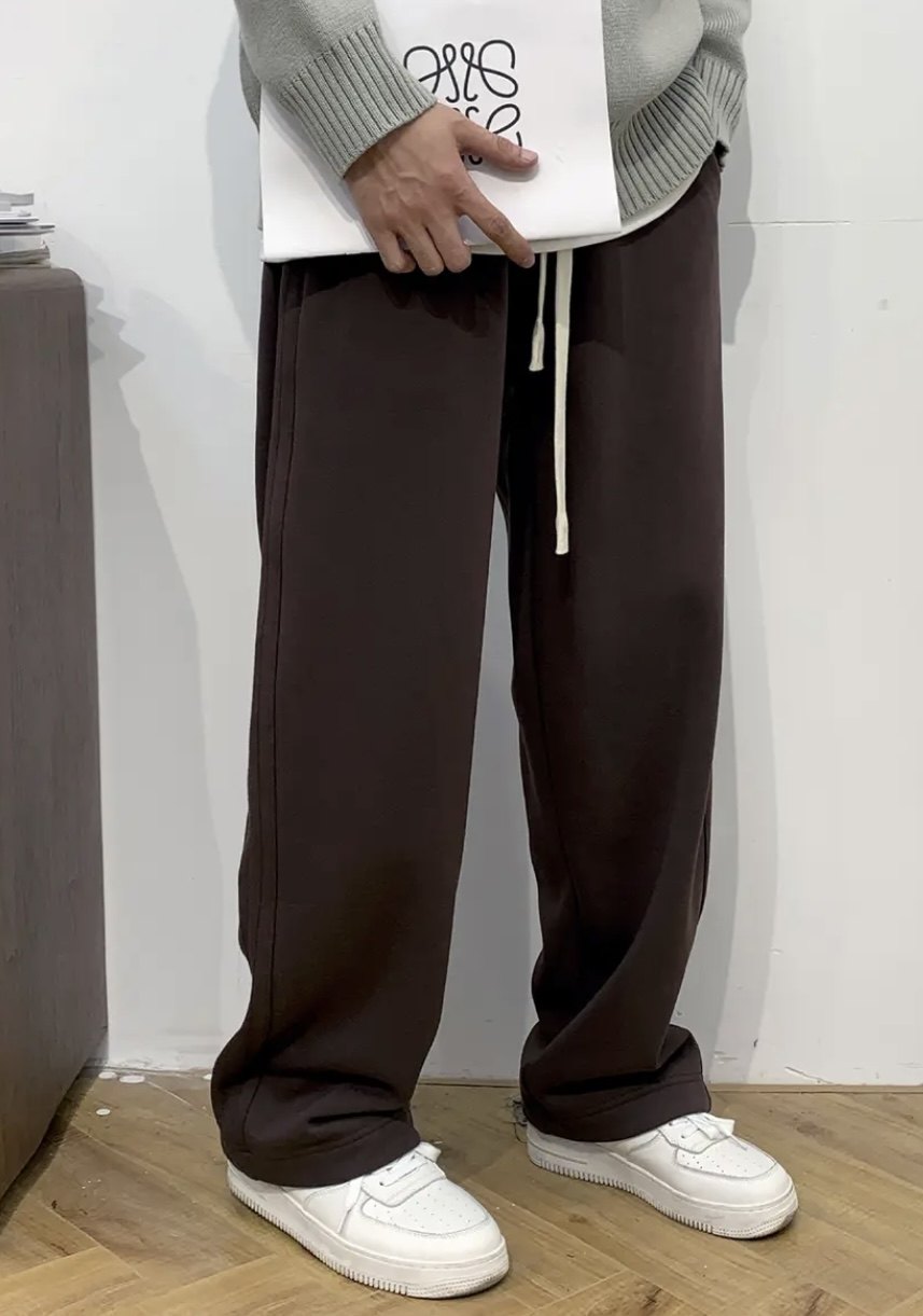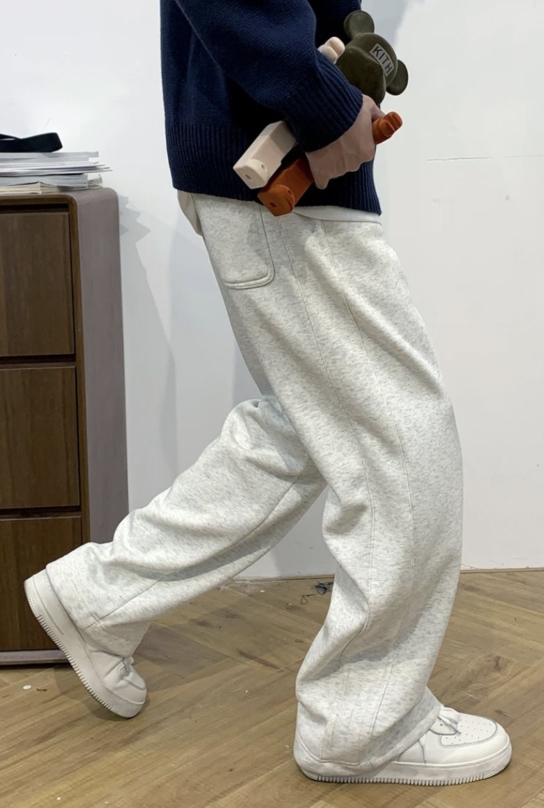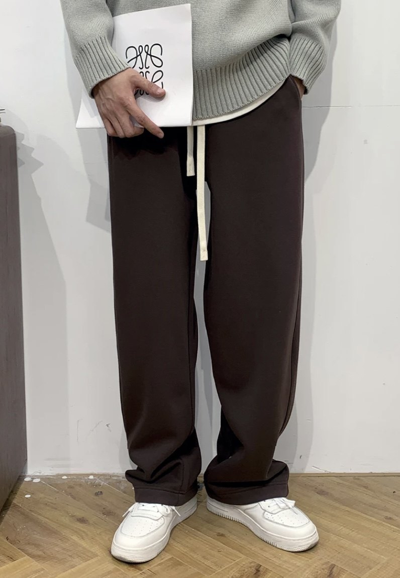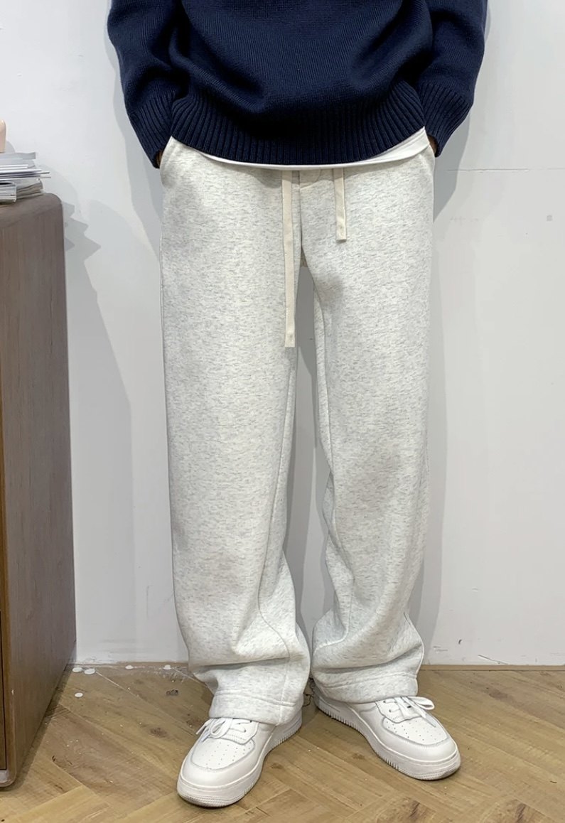 Spring and Autumn New Korean Style Trendy Gray Versatile Wide-Leg Pants for Men, Loose Casual Drawstring Solid Color Draped Straight-Leg Sweatpants