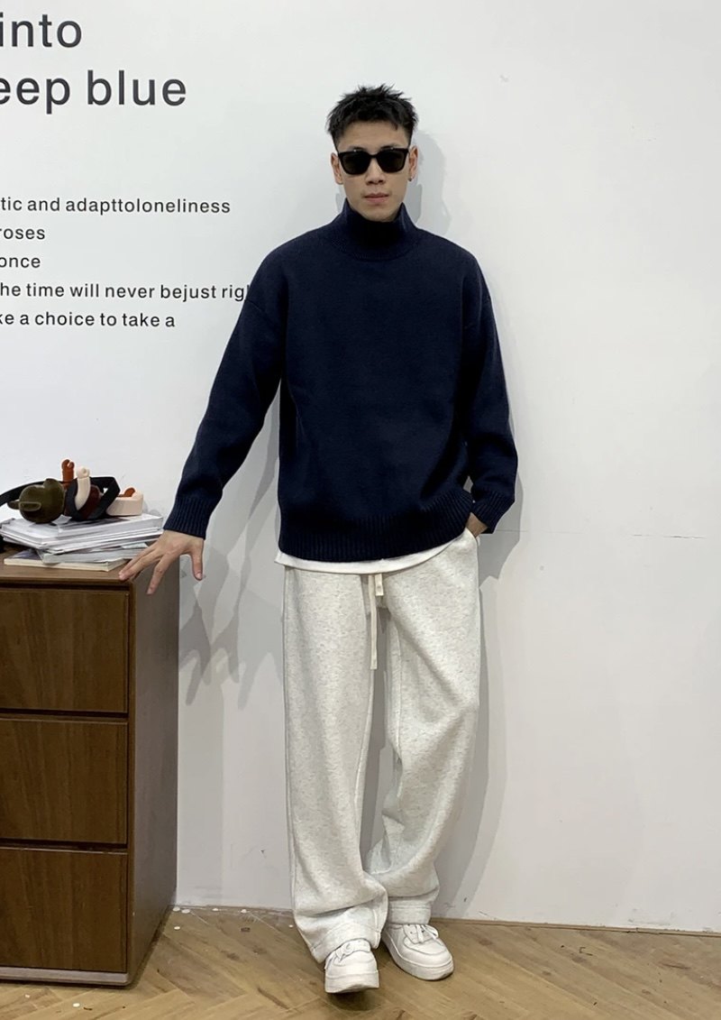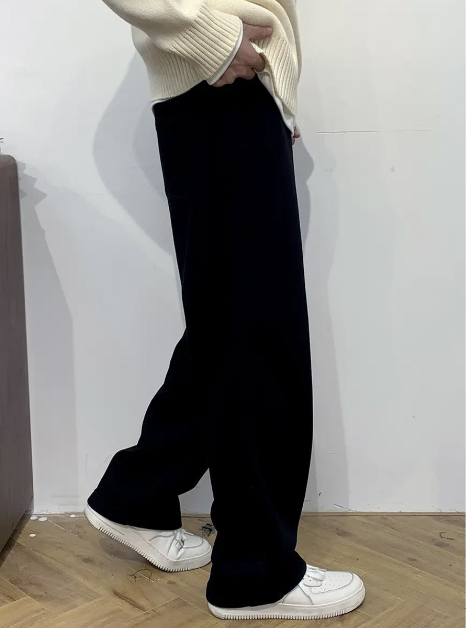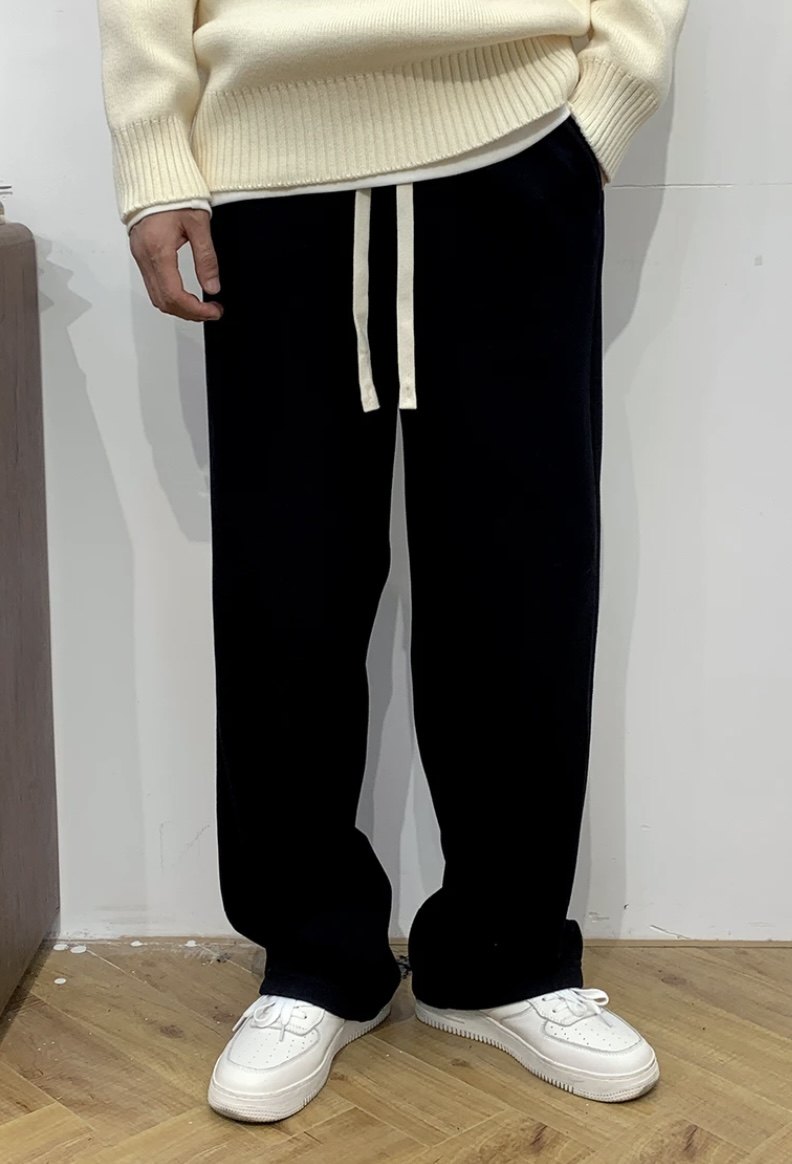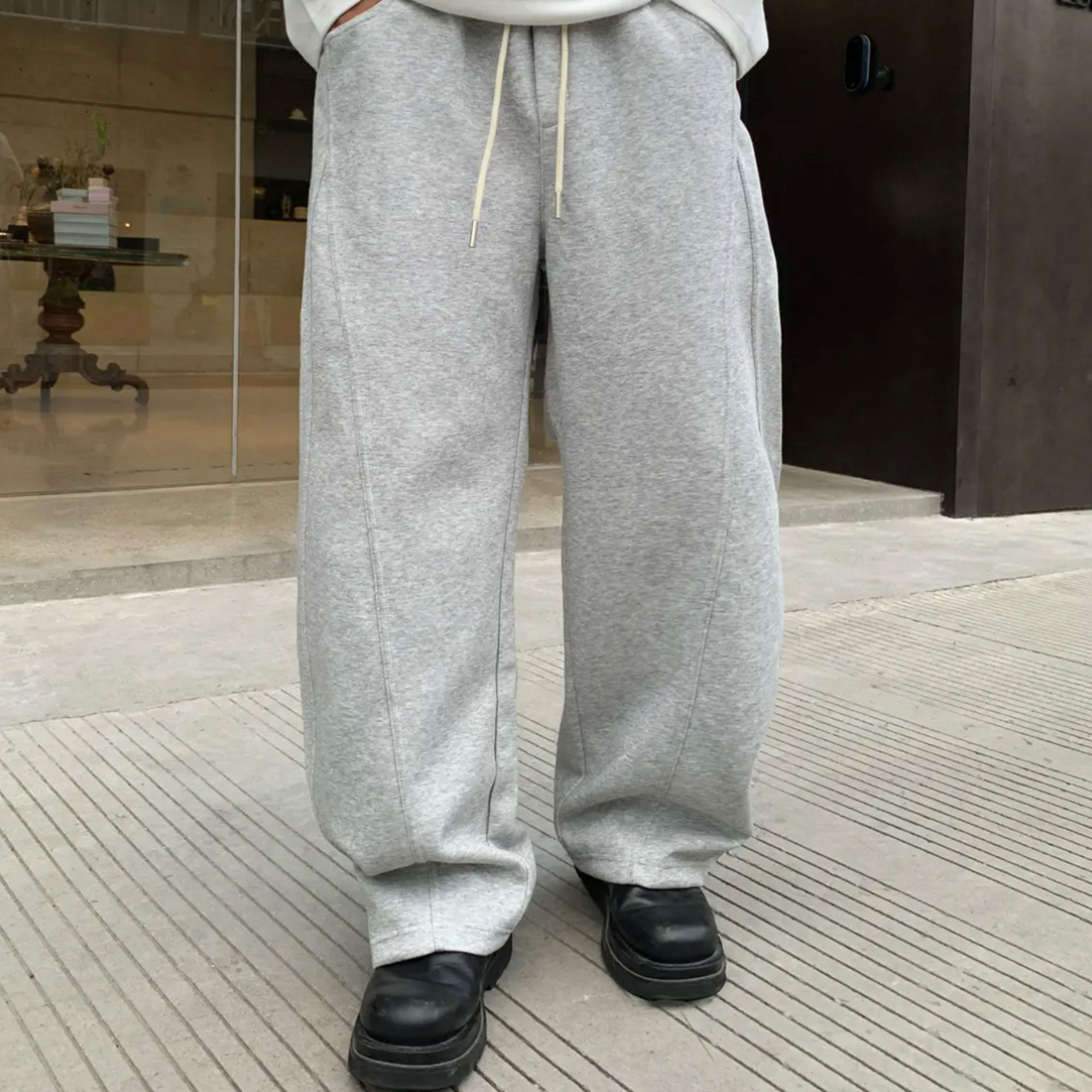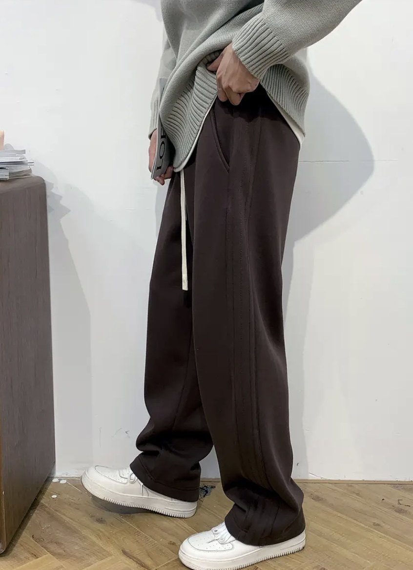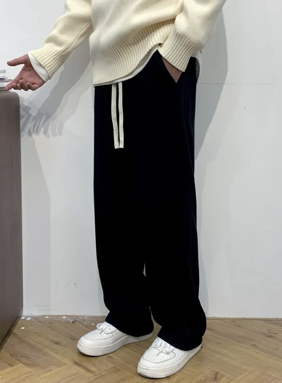 Spring and Autumn New Korean Style Trendy Gray Versatile Wide-Leg Pants for Men, Loose Casual Drawstring Solid Color Draped Straight-Leg Sweatpants
