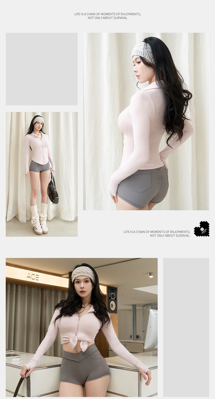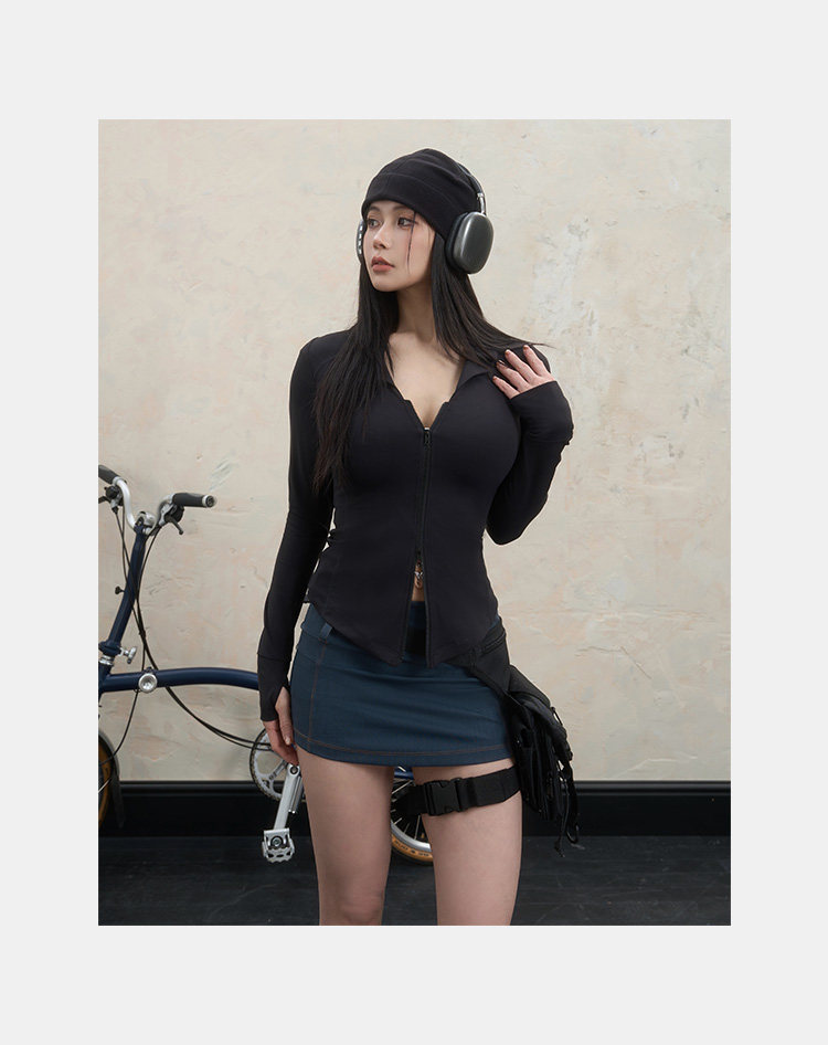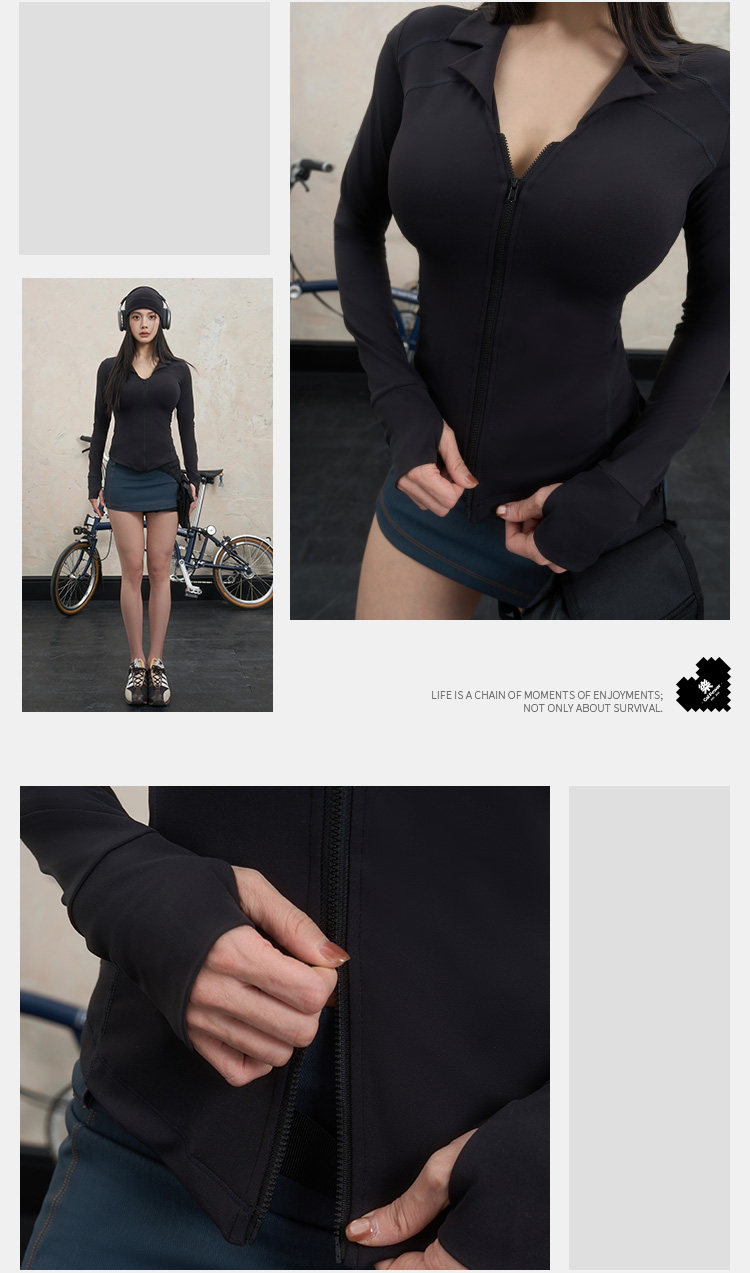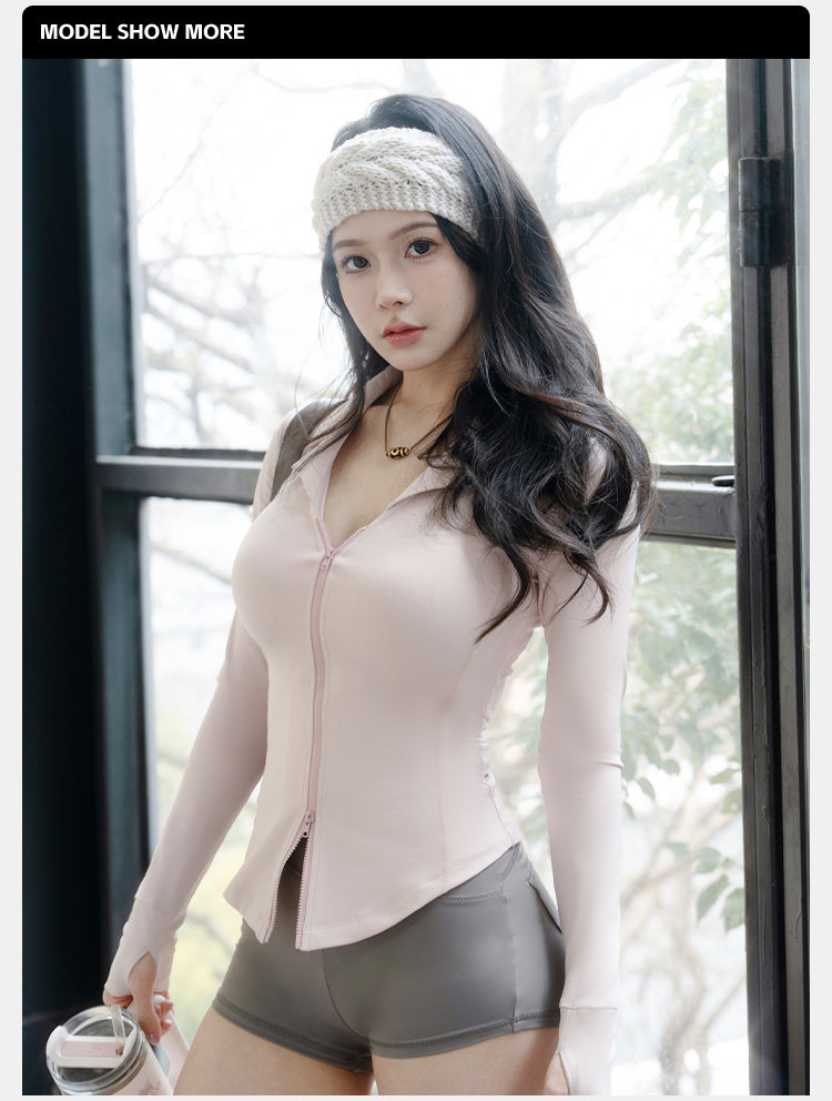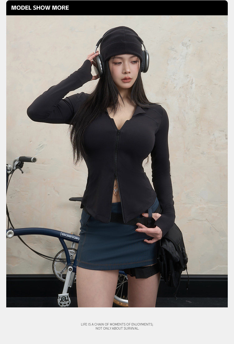 Yile Gal Power Lunch Break Teacher Double Zipper V-Neck Shirt Collar Autumn Slim Fit Brushed Jacket Coat