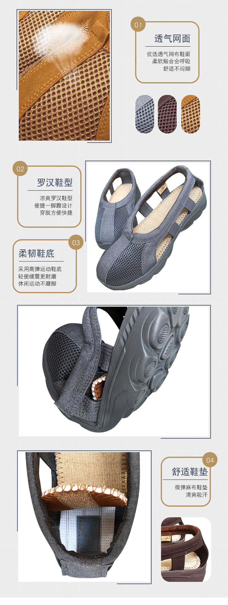 Dust Thickeneded Sports Shock-Absorbing Soft-Soled Summer Deodorant Linen Insole Breathable Luohan Shoes Flats Monk Shoes Dad Shoes