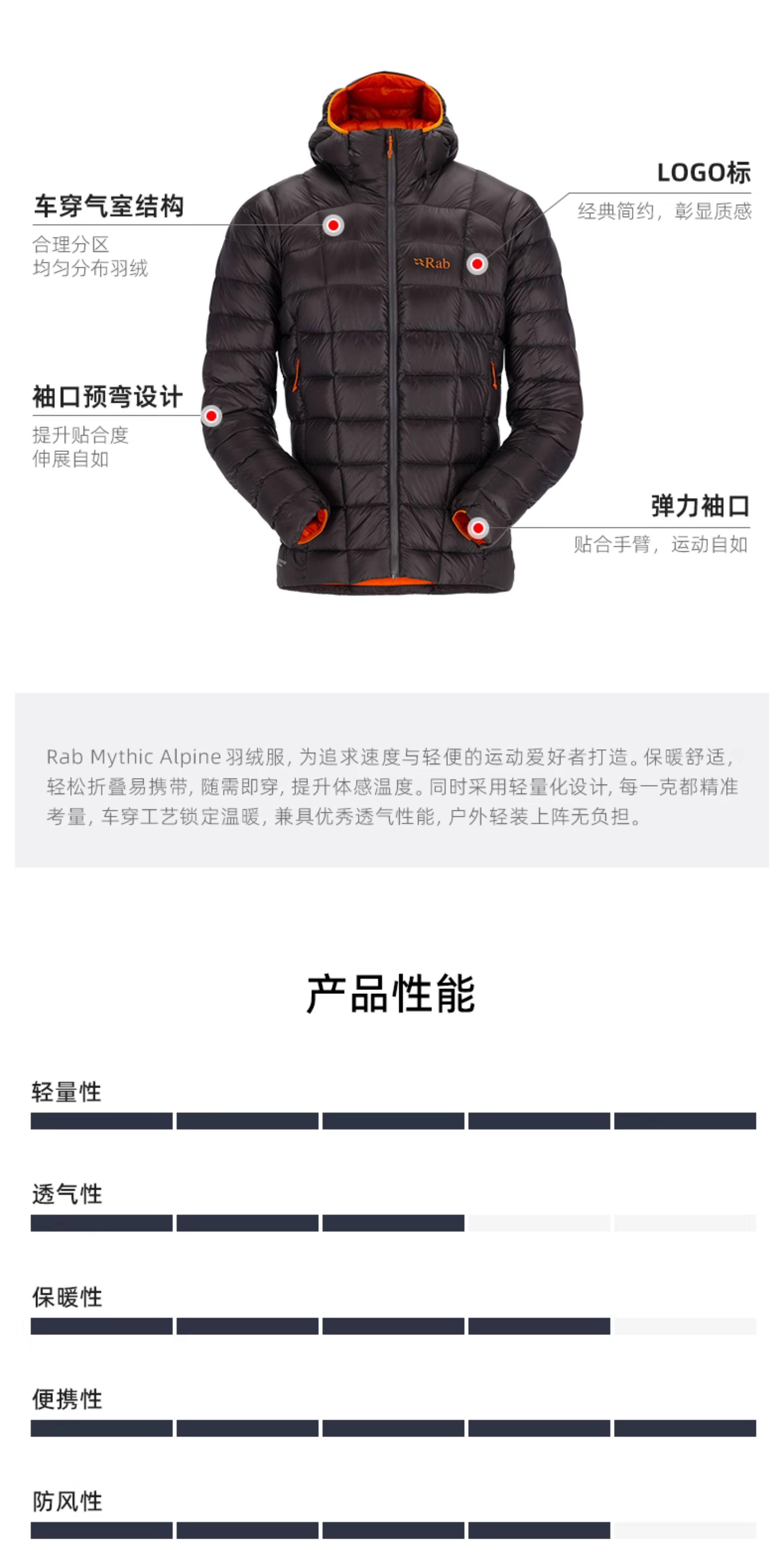 Rab Mythic Alpine Men's 900 Fill Power Goose down Hooded Lightweight Warm down Jacket Qdb-45