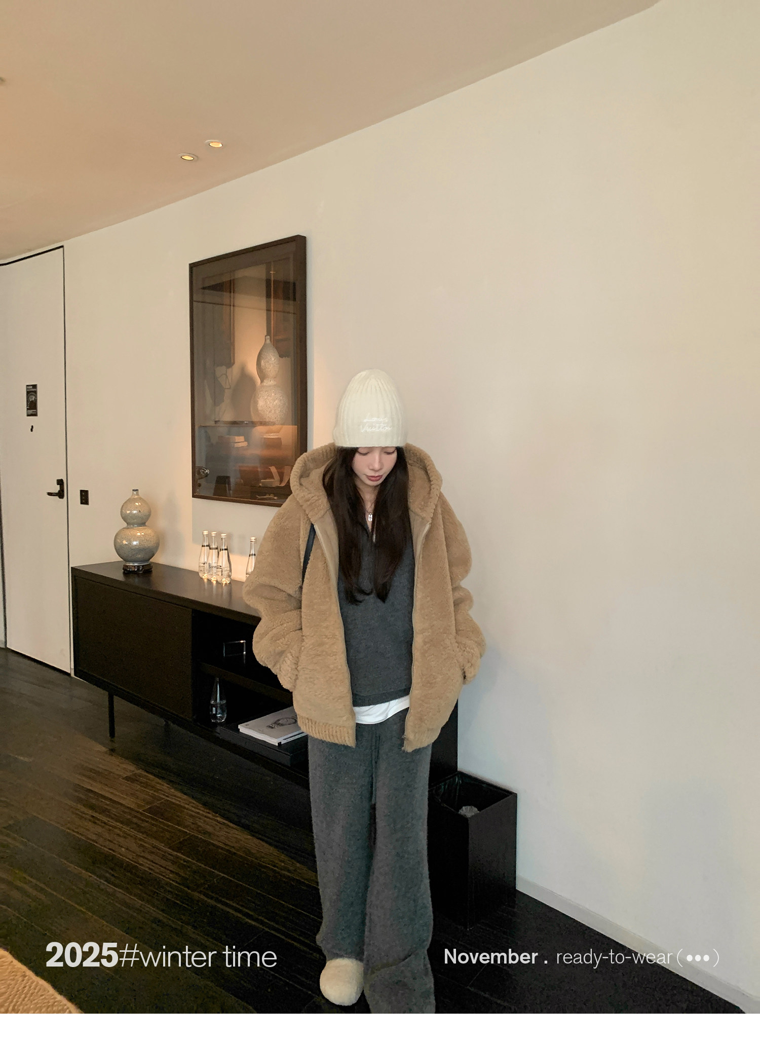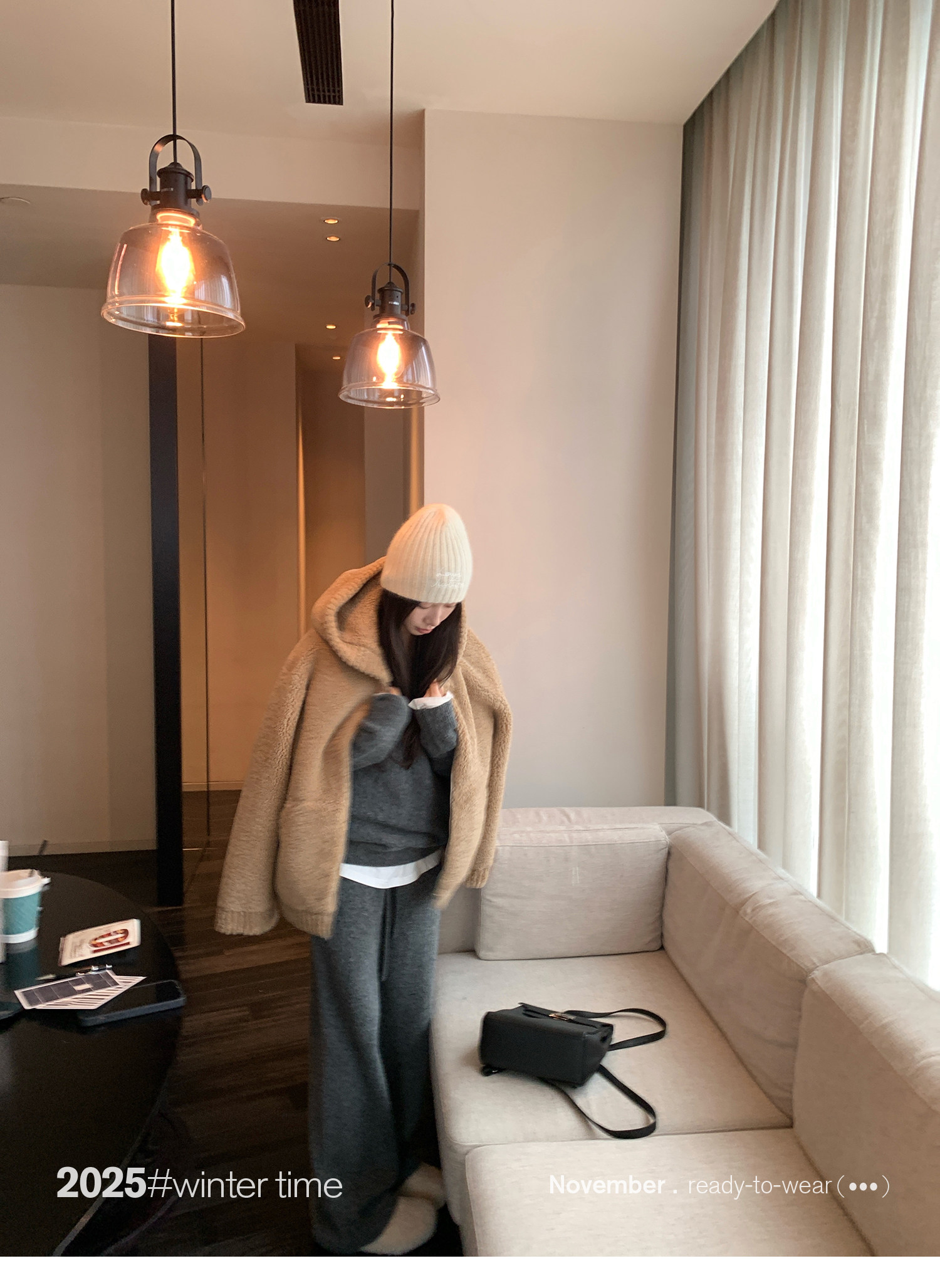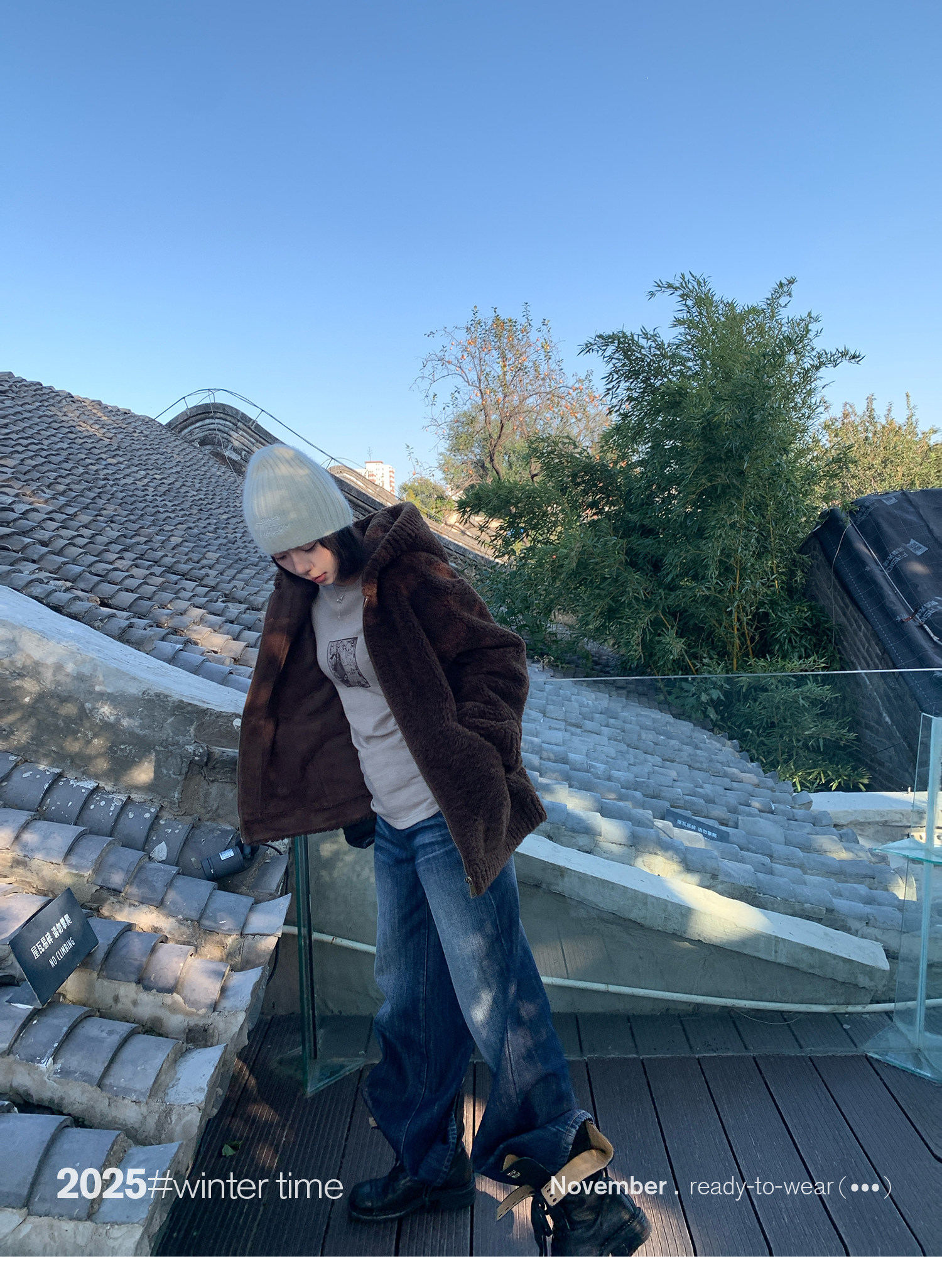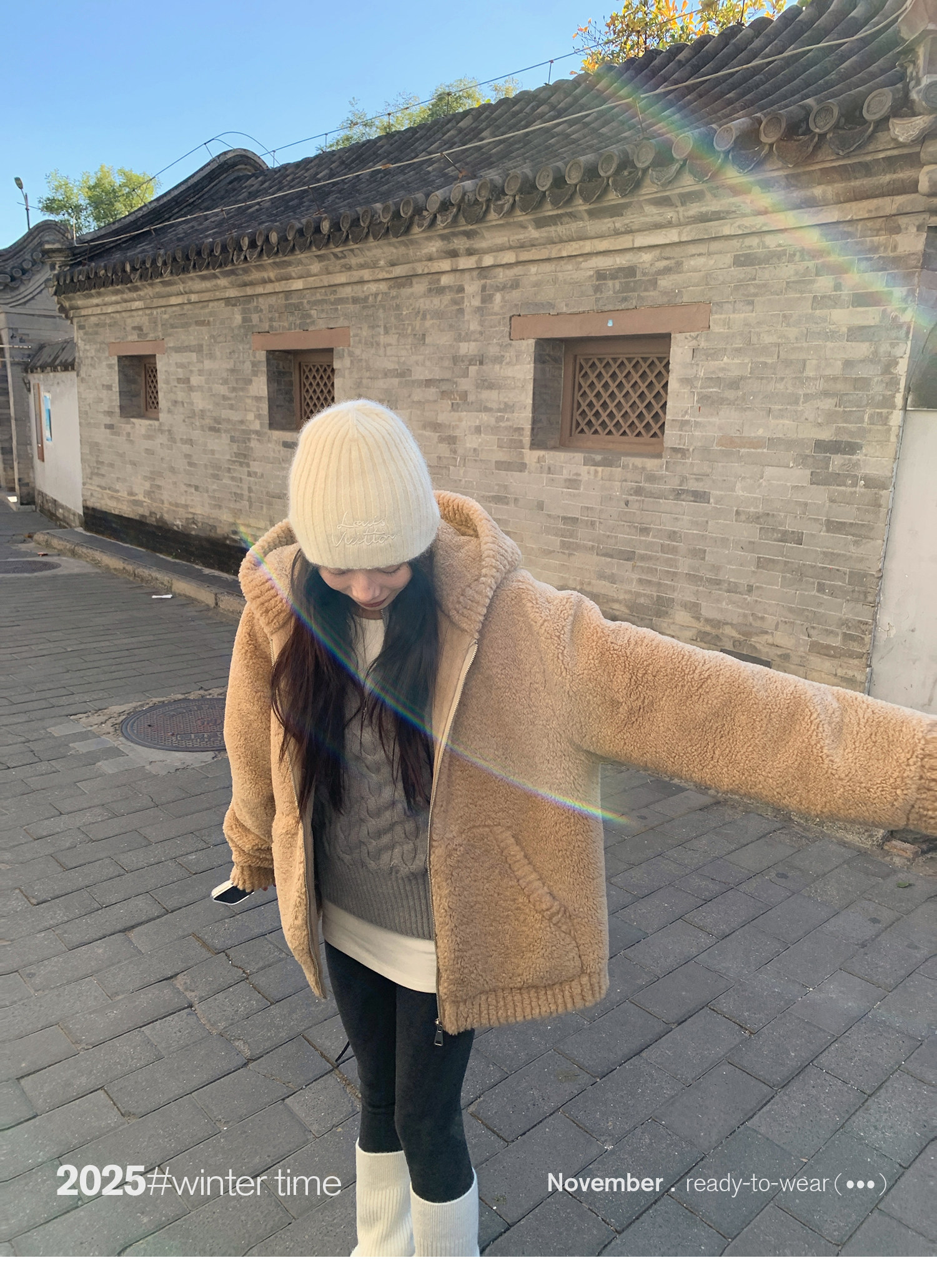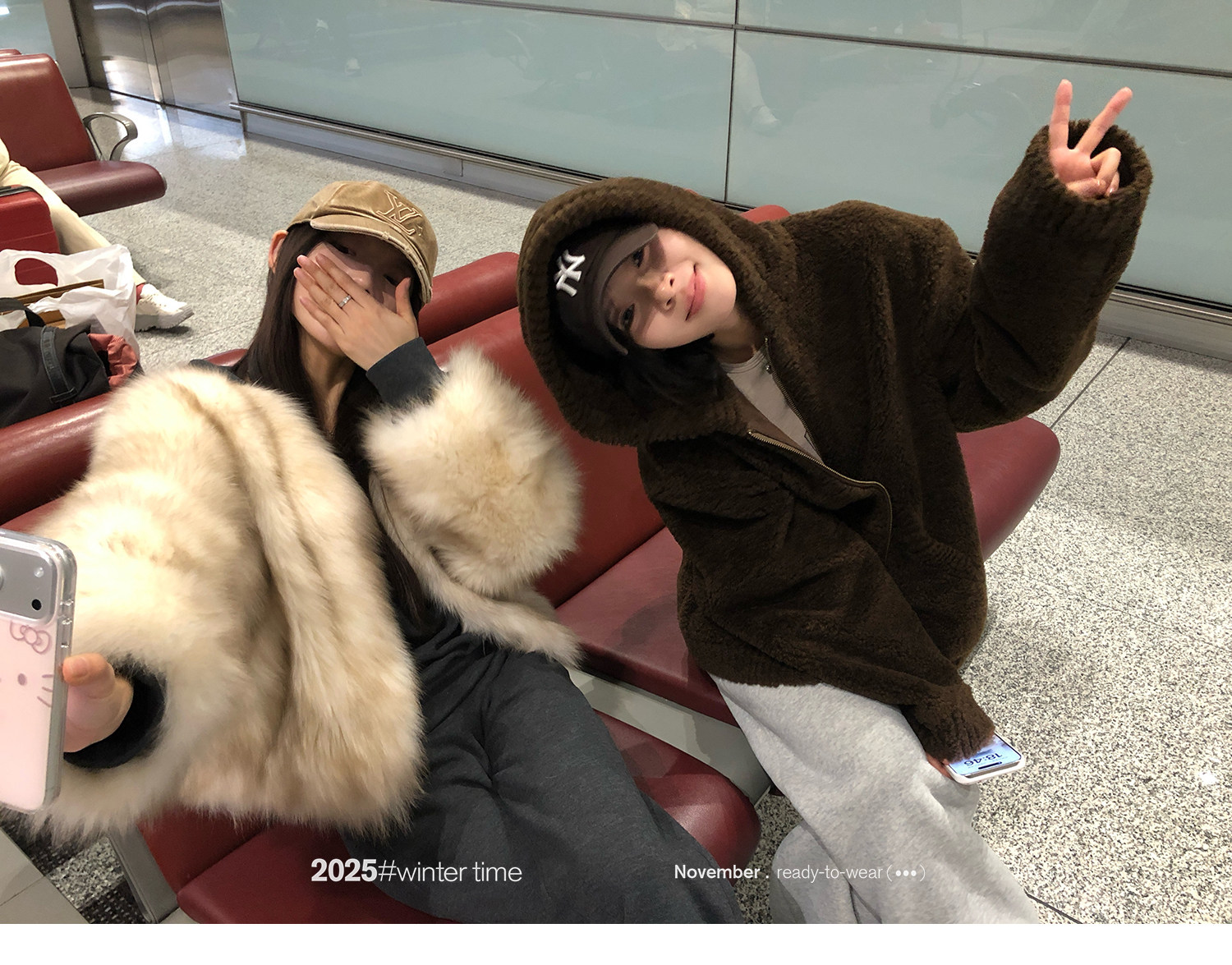 Sunoneone Hooded Pocket Loose Faux Shearling Wool Coat for Women, Winter Woolen Short Coat for Petite Women