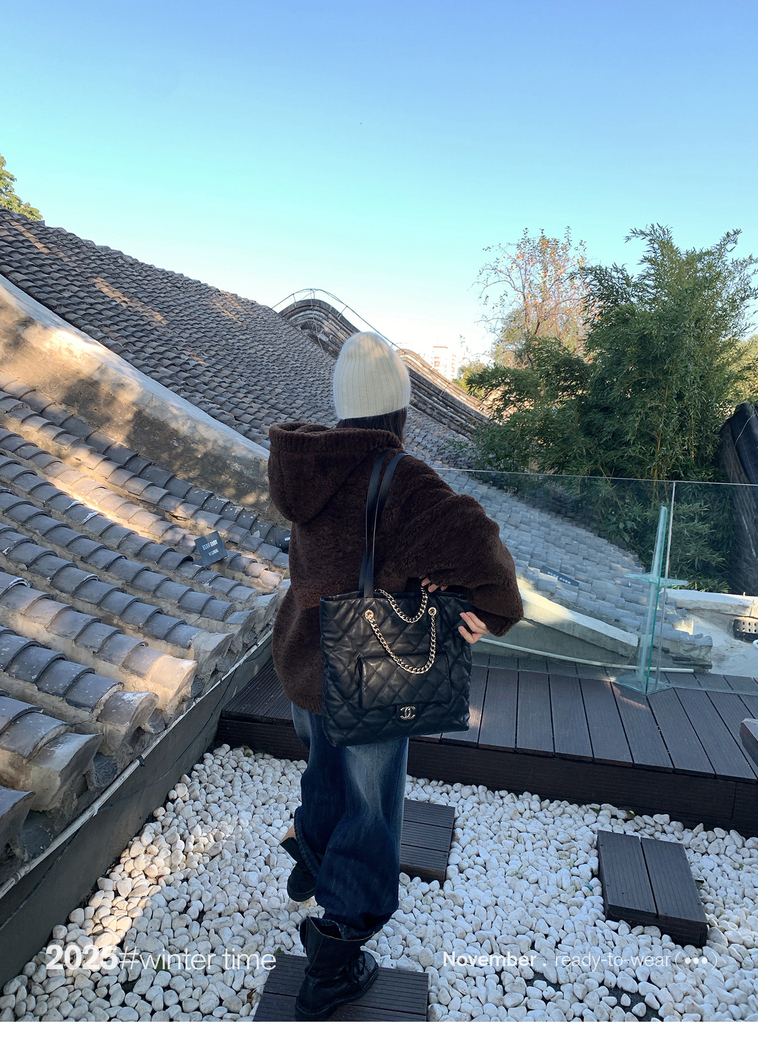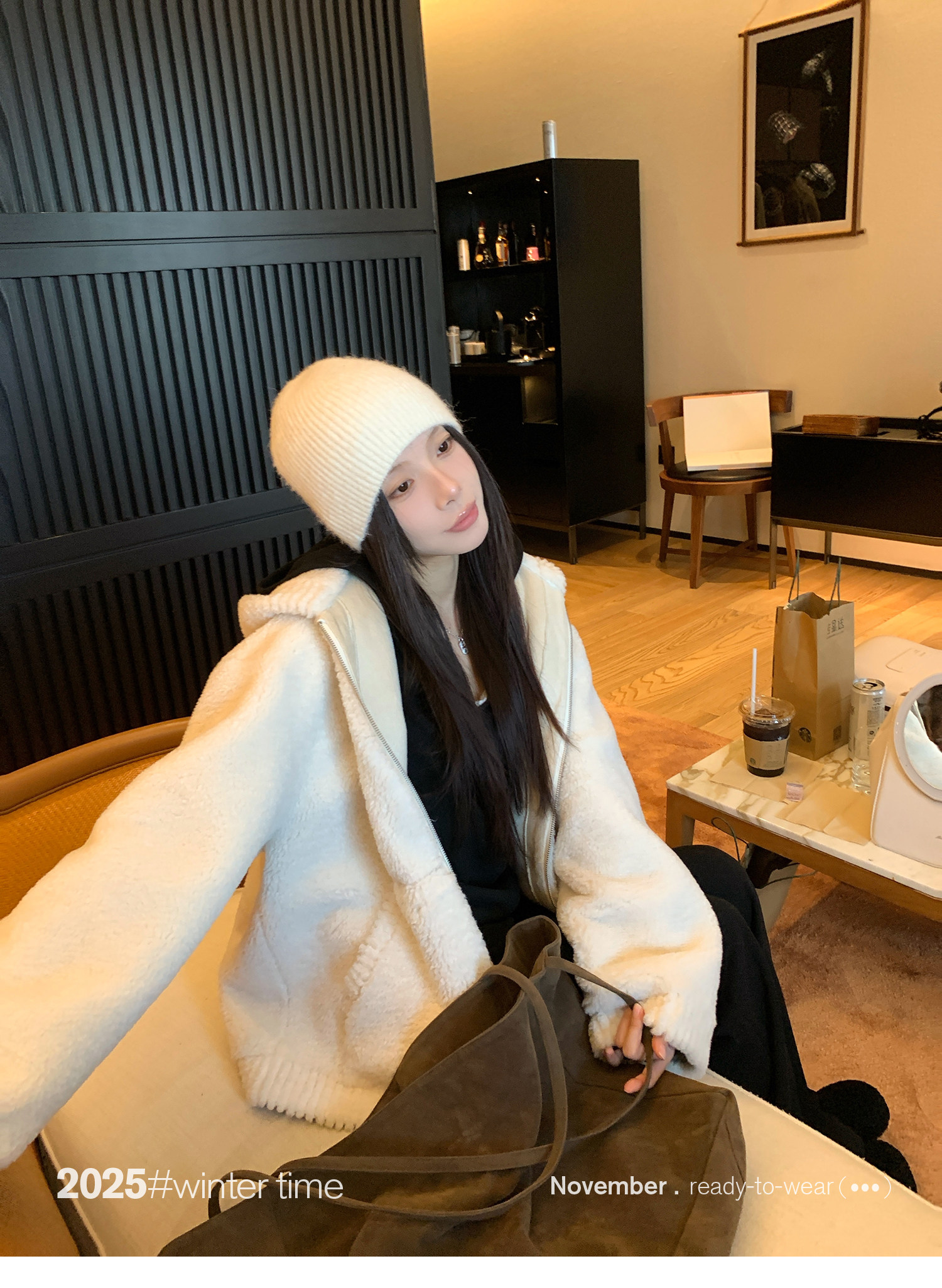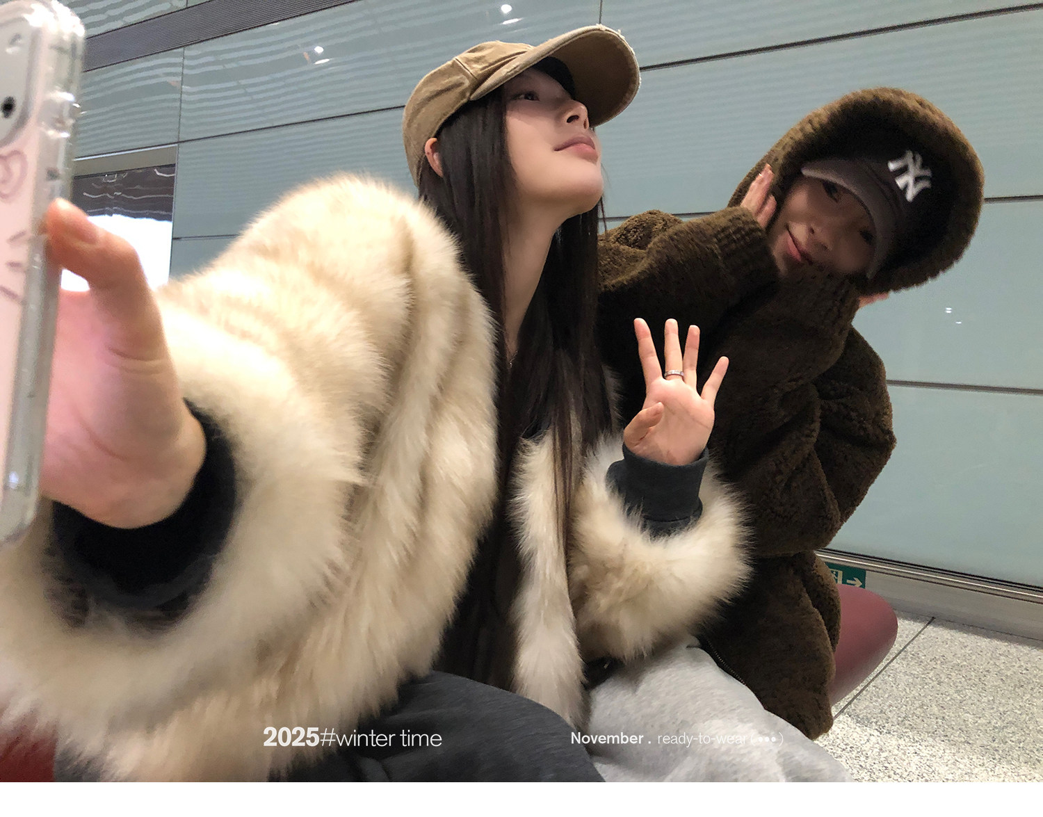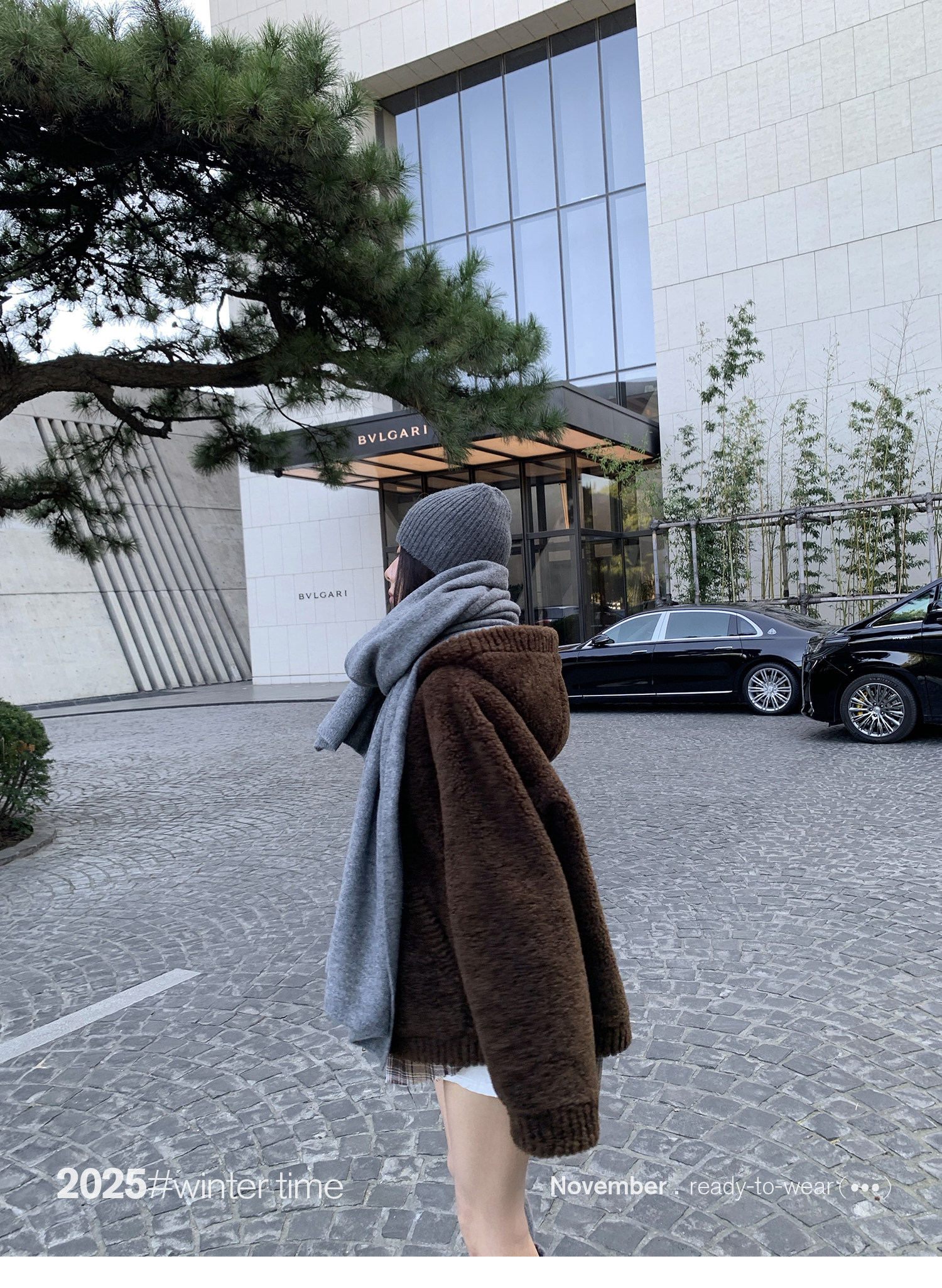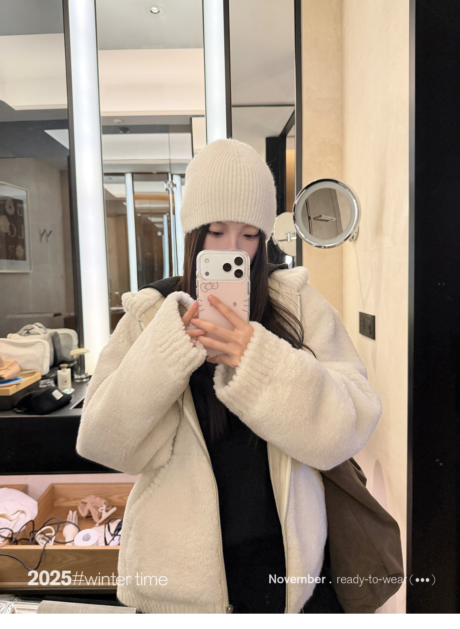 Sunoneone Hooded Pocket Loose Faux Shearling Wool Coat for Women, Winter Woolen Short Coat for Petite Women