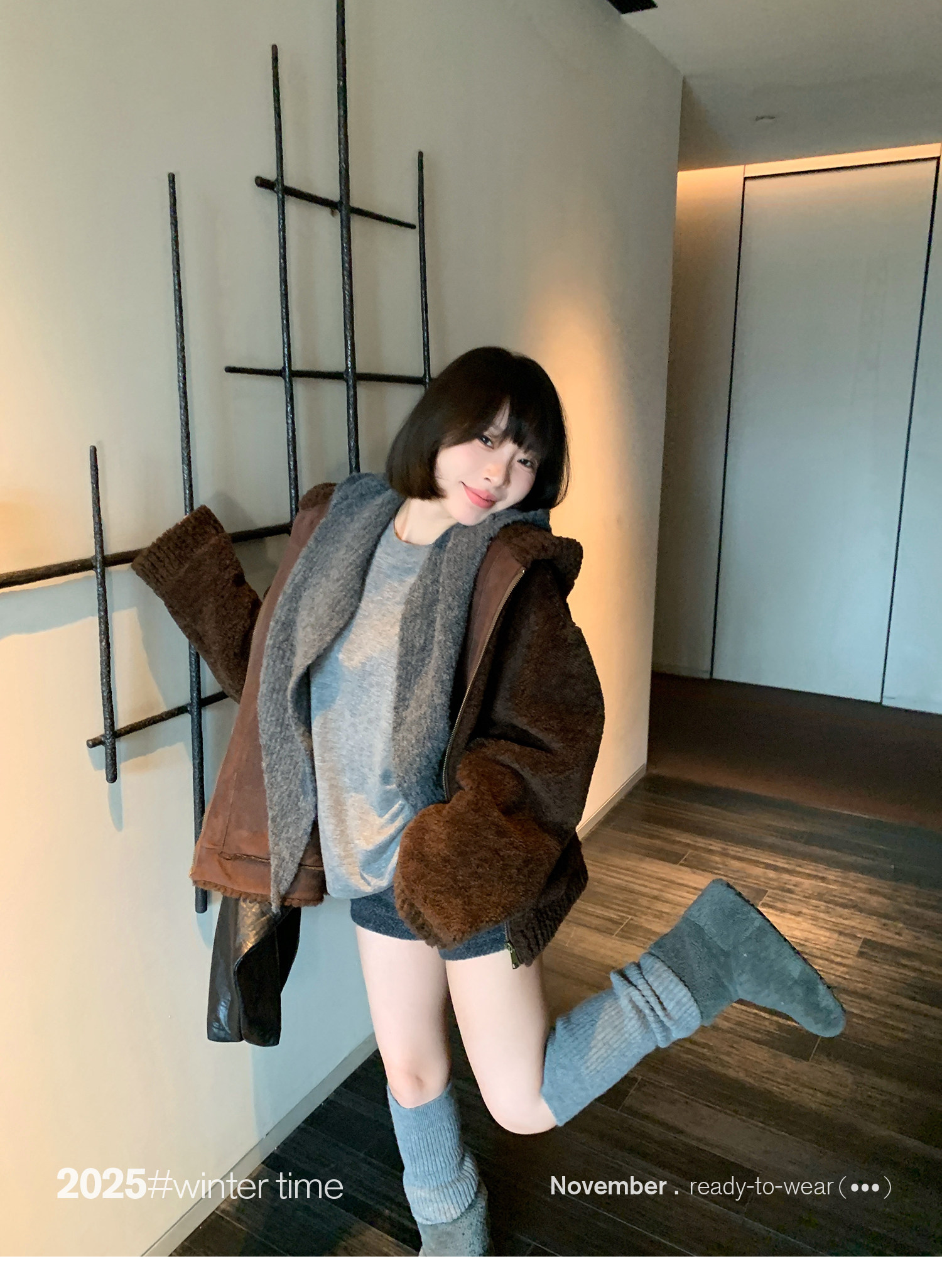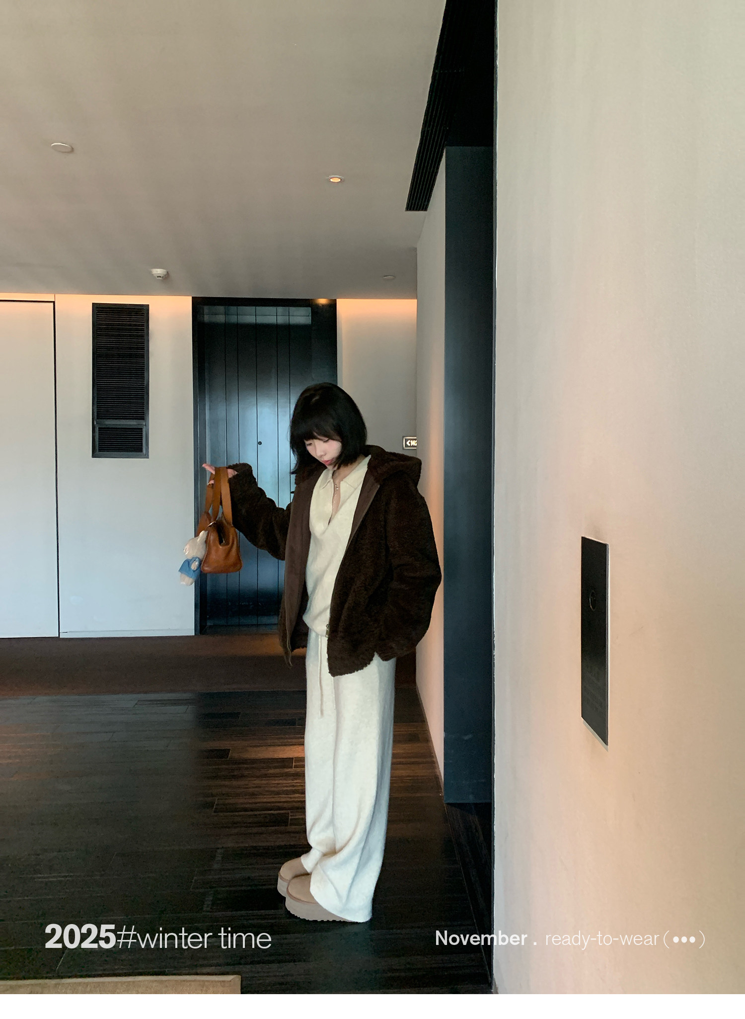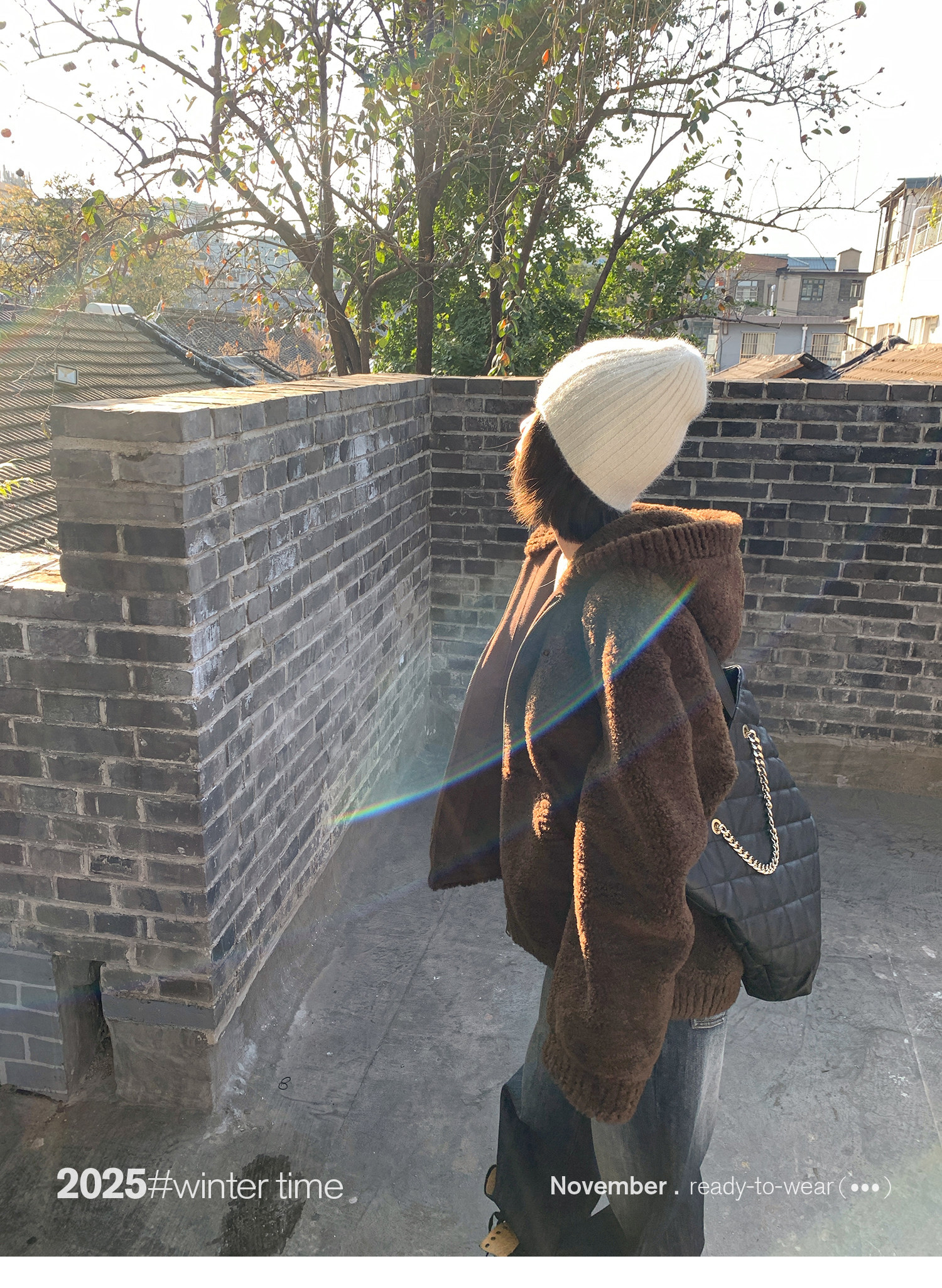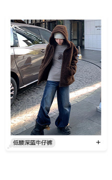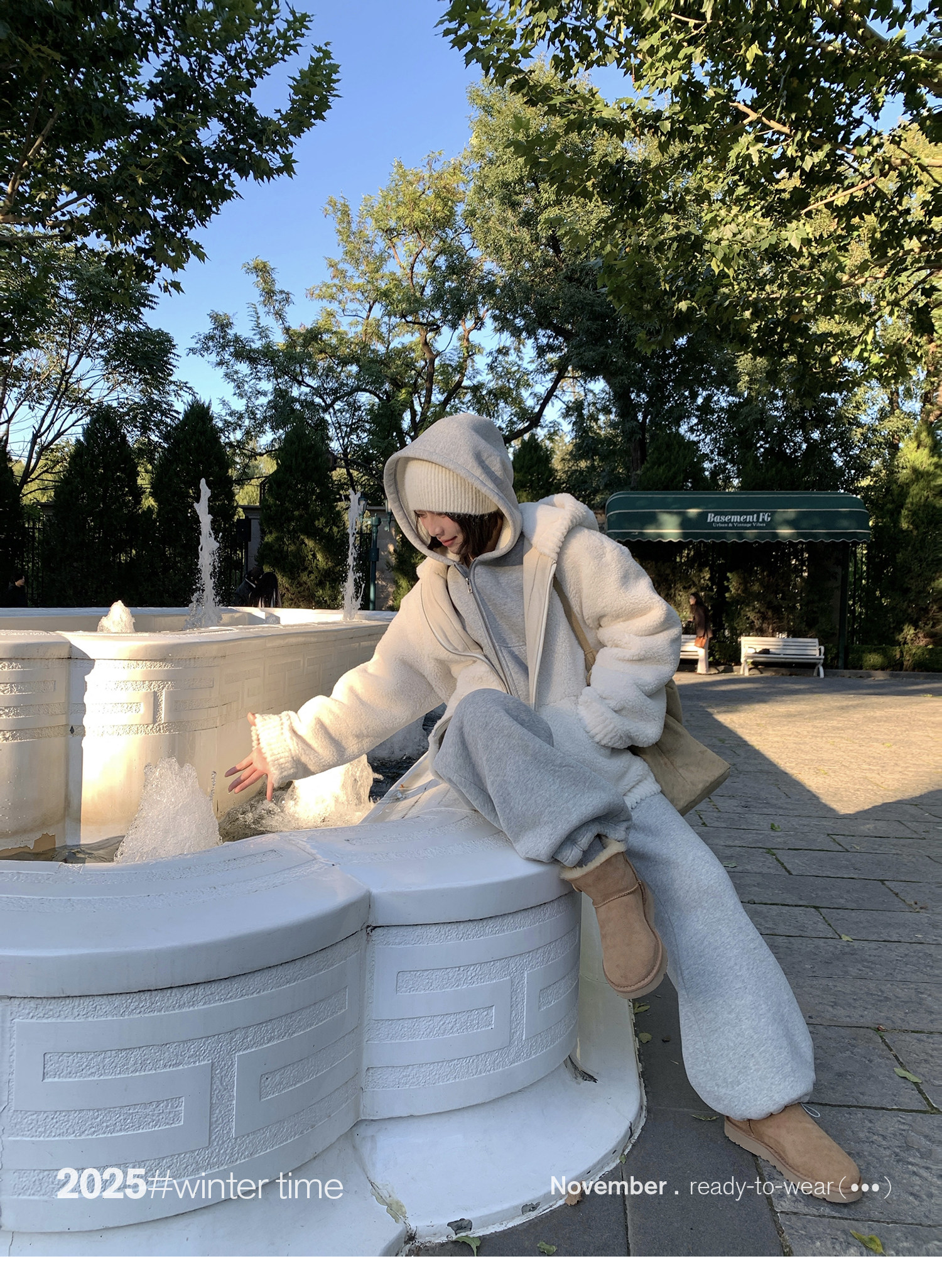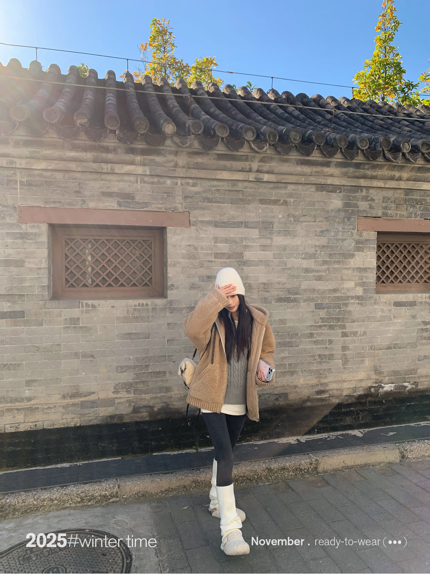 Sunoneone Hooded Pocket Loose Faux Shearling Wool Coat for Women, Winter Woolen Short Coat for Petite Women