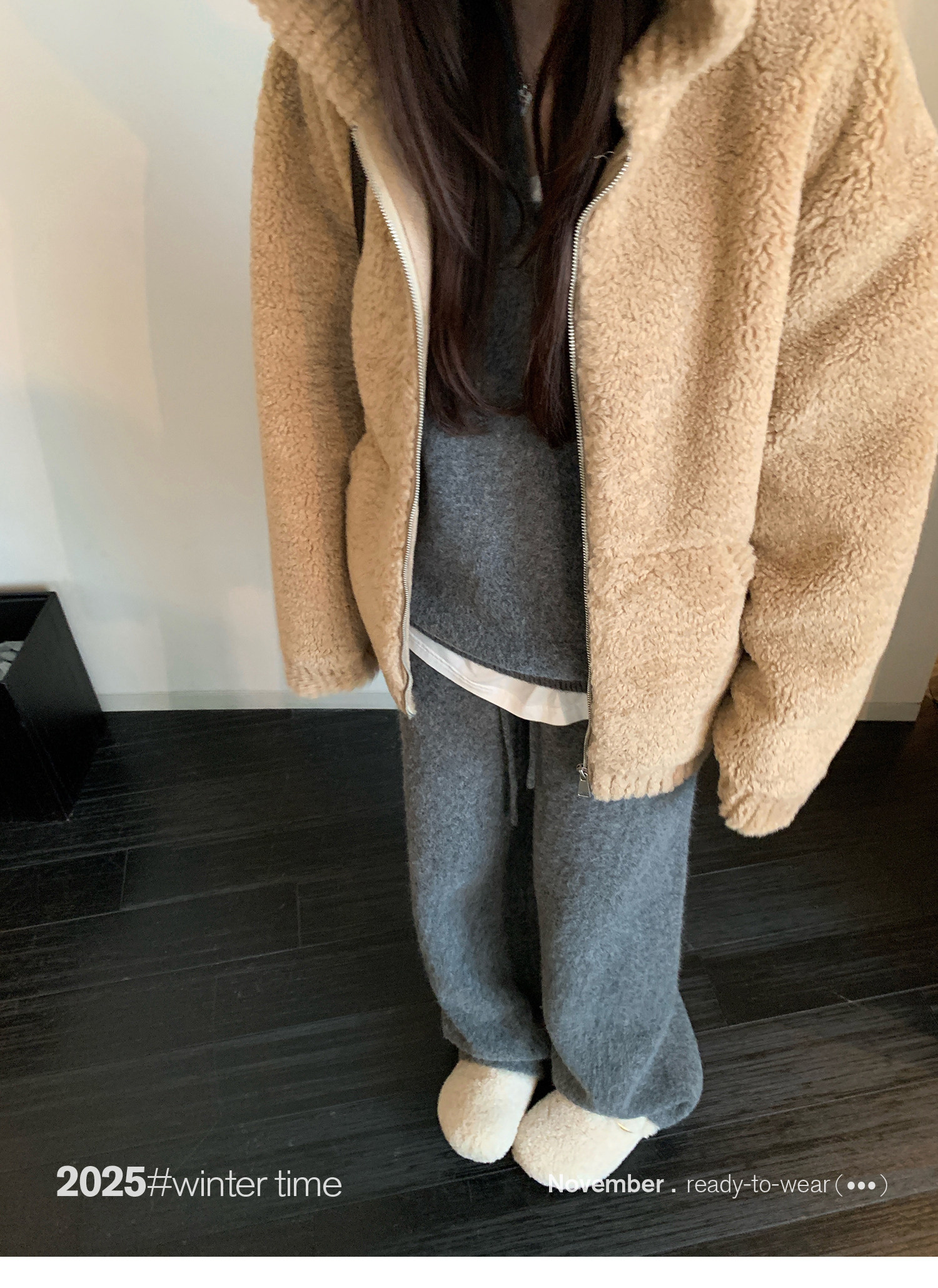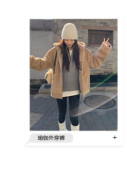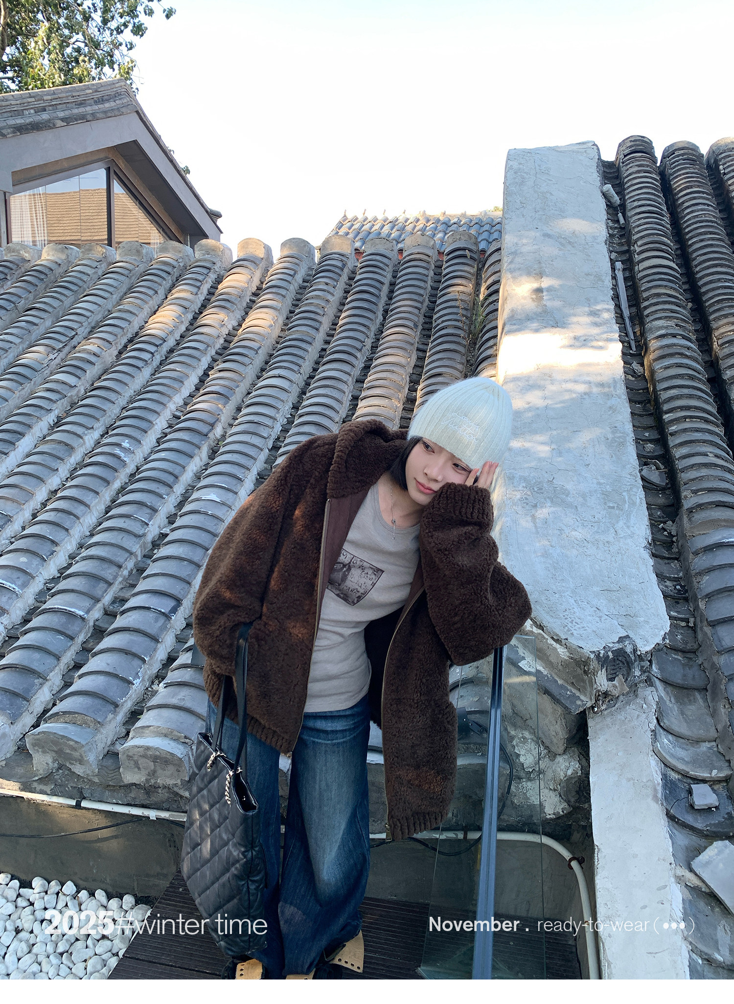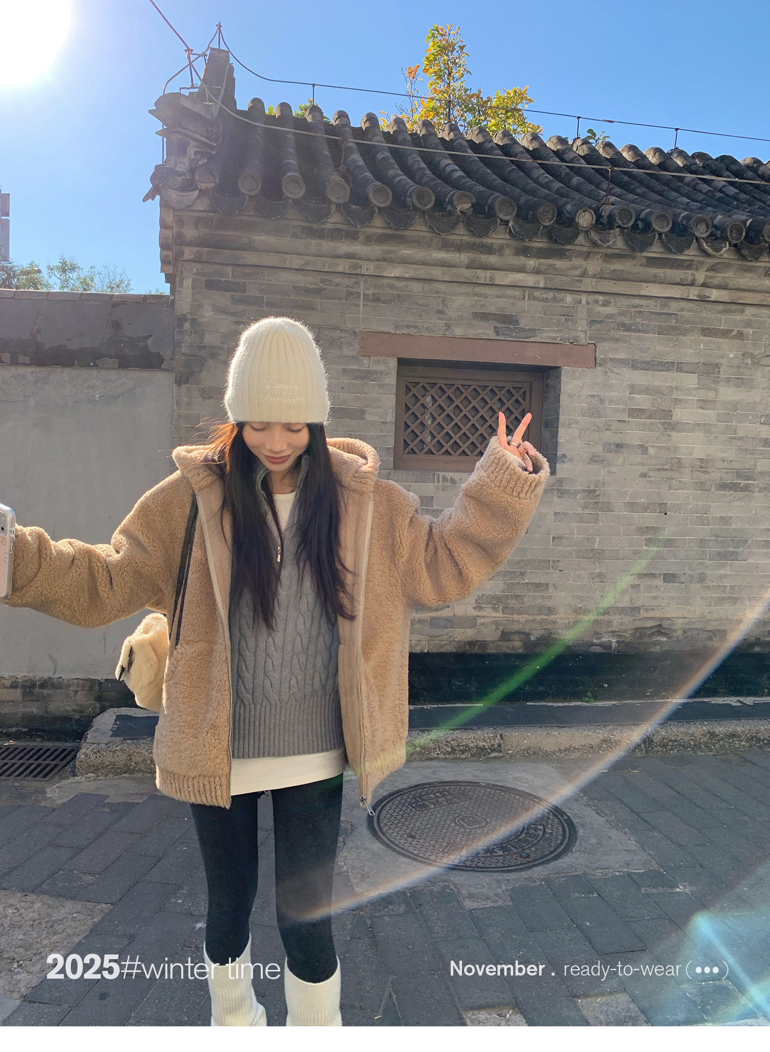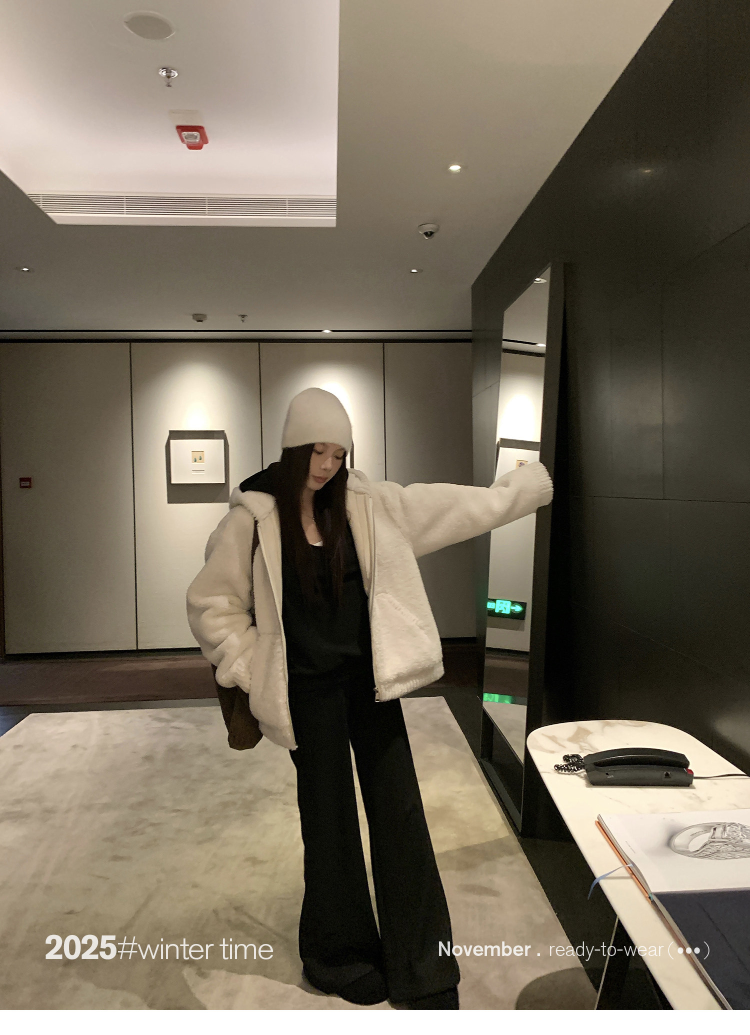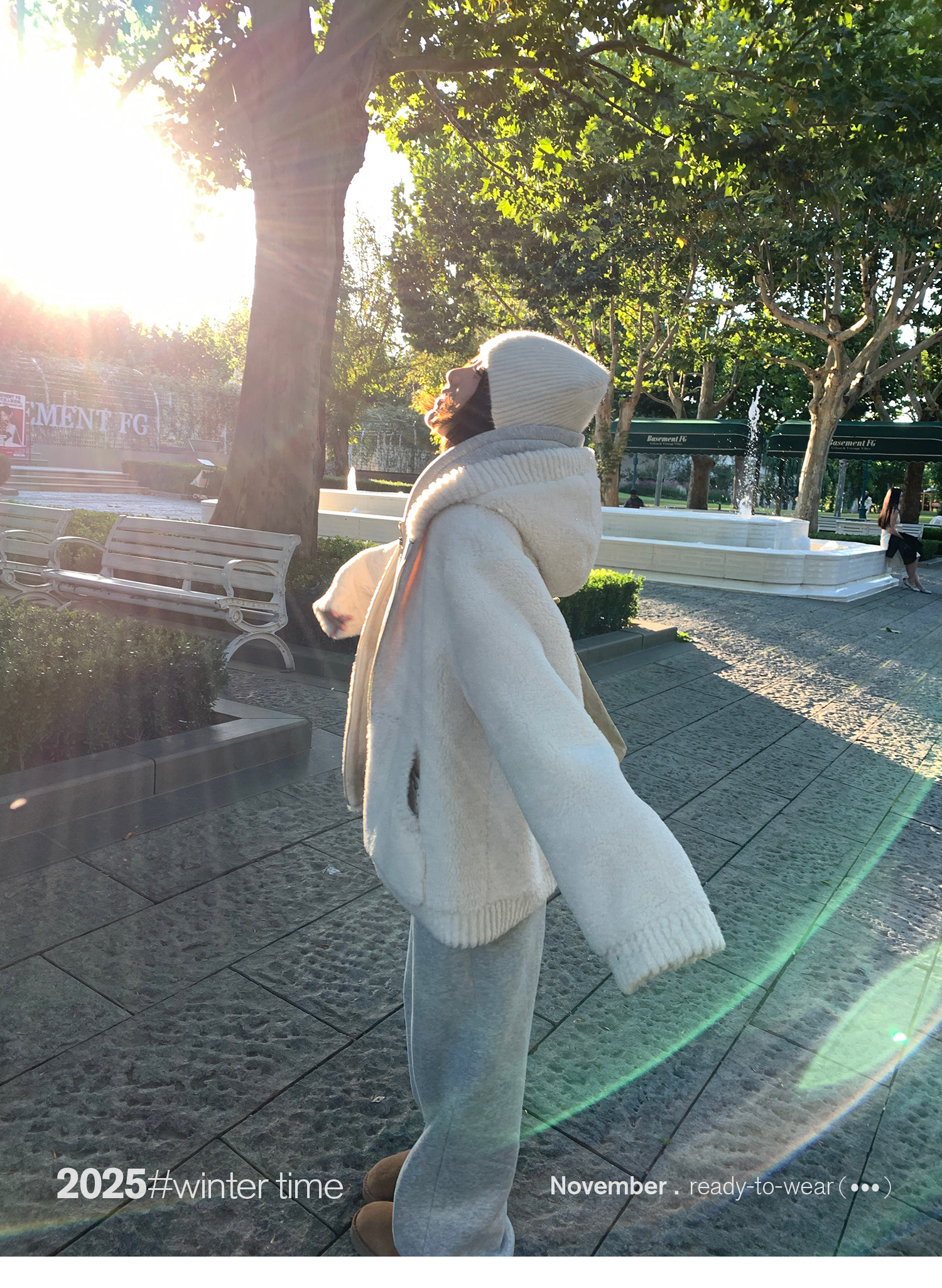 Sunoneone Hooded Pocket Loose Faux Shearling Wool Coat for Women, Winter Woolen Short Coat for Petite Women