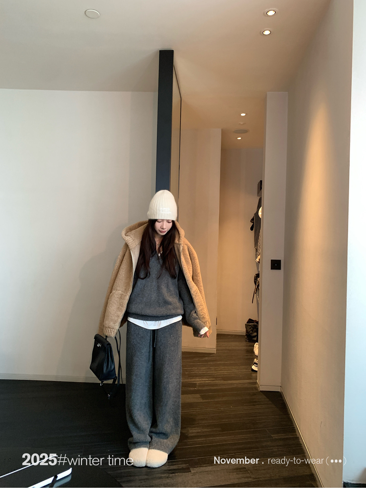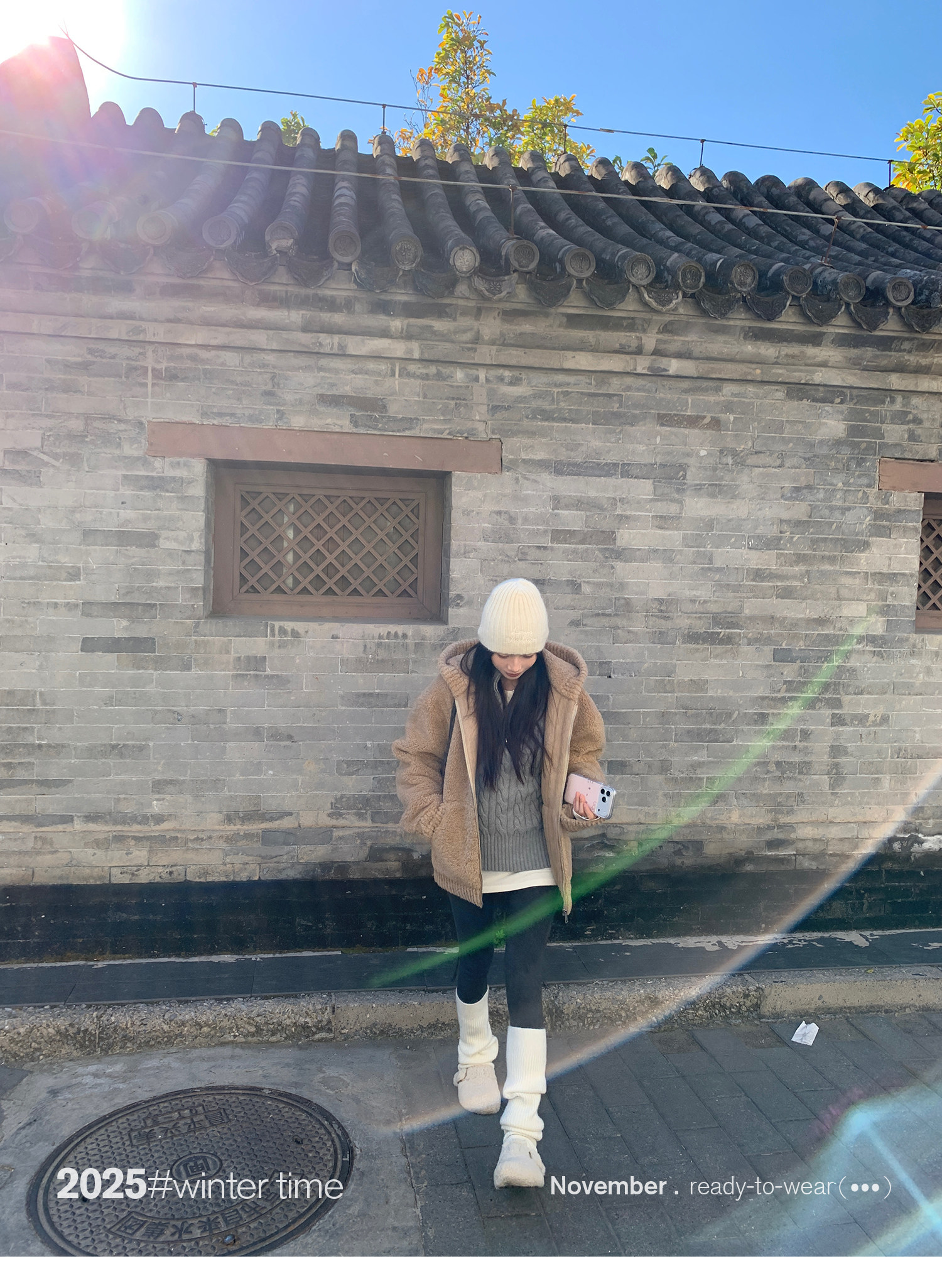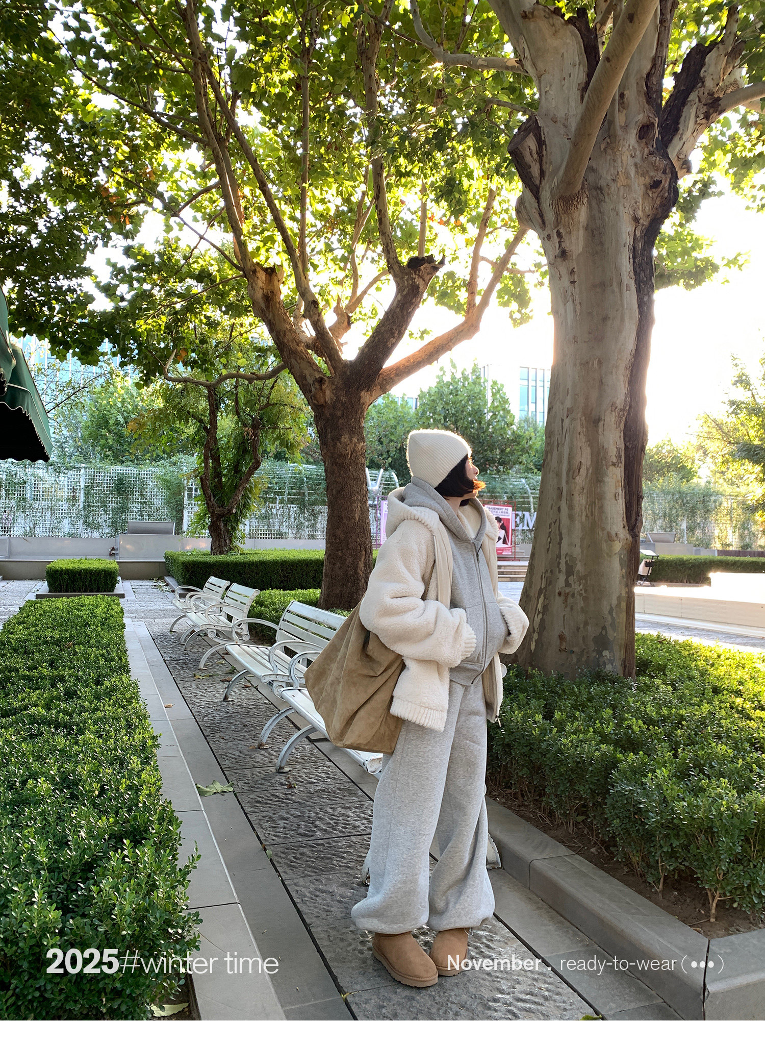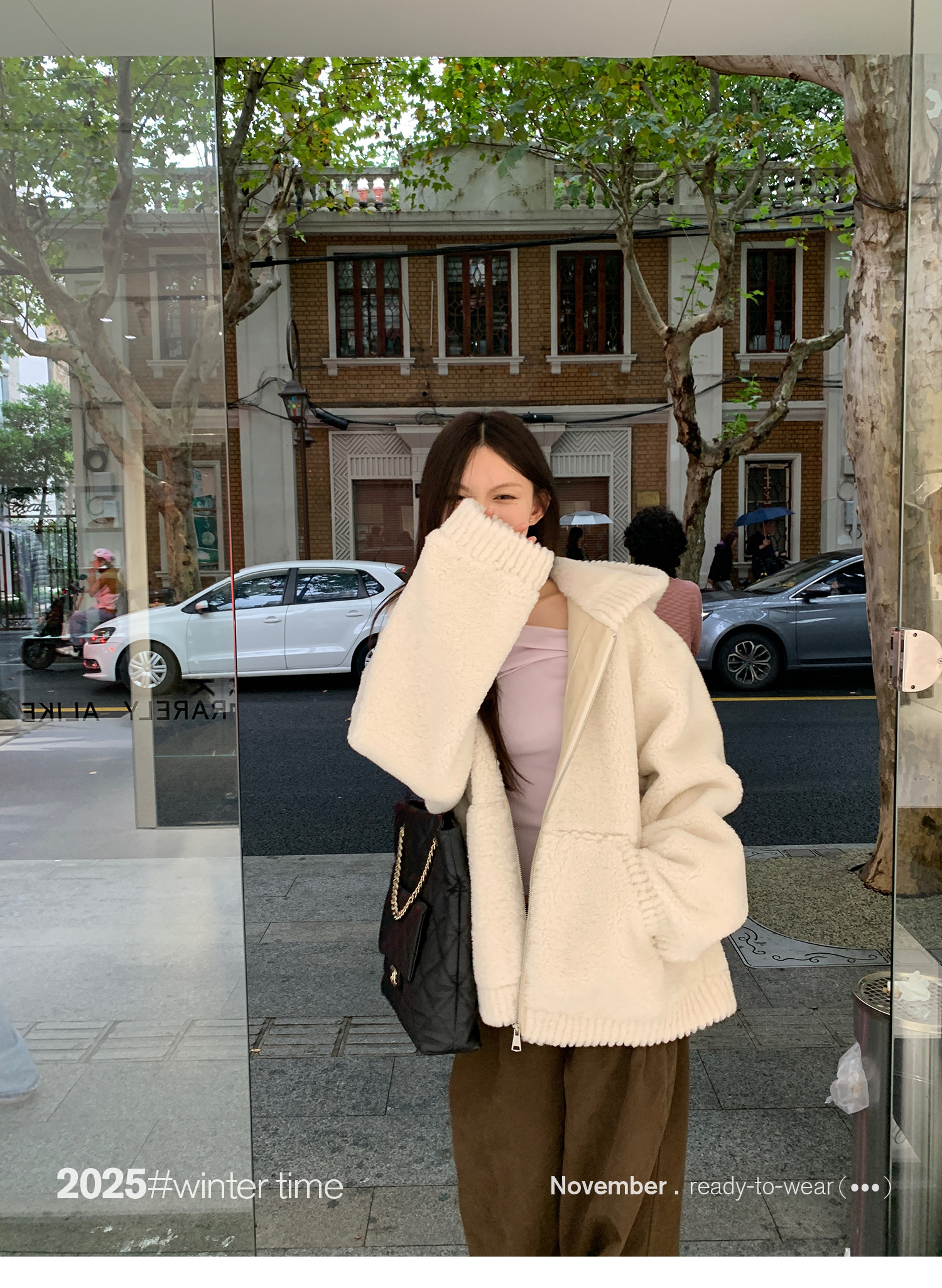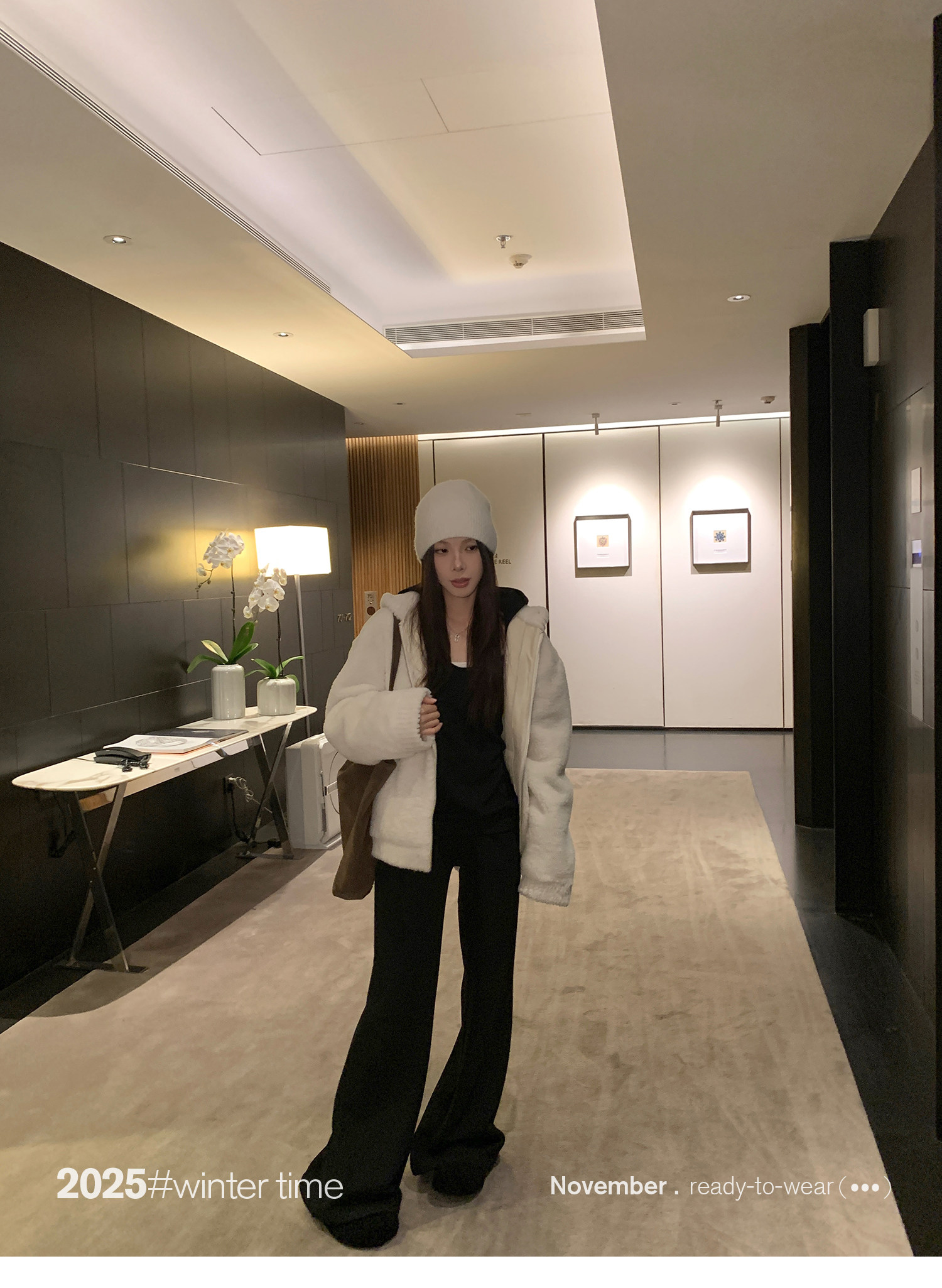 Sunoneone Hooded Pocket Loose Faux Shearling Wool Coat for Women, Winter Woolen Short Coat for Petite Women