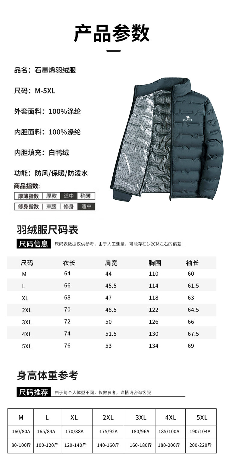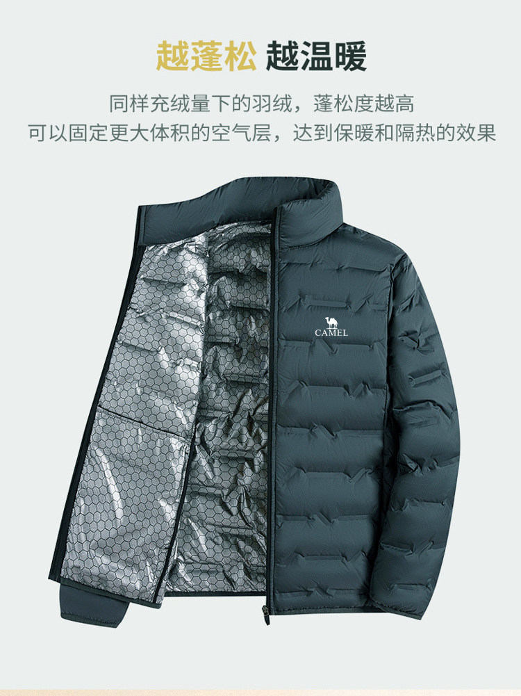 Camel 2025 New Graphene Stand-Up Collar down Jacket for Men, Lightweight Winter Warm White Duck down Coat for Middle-Aged Men