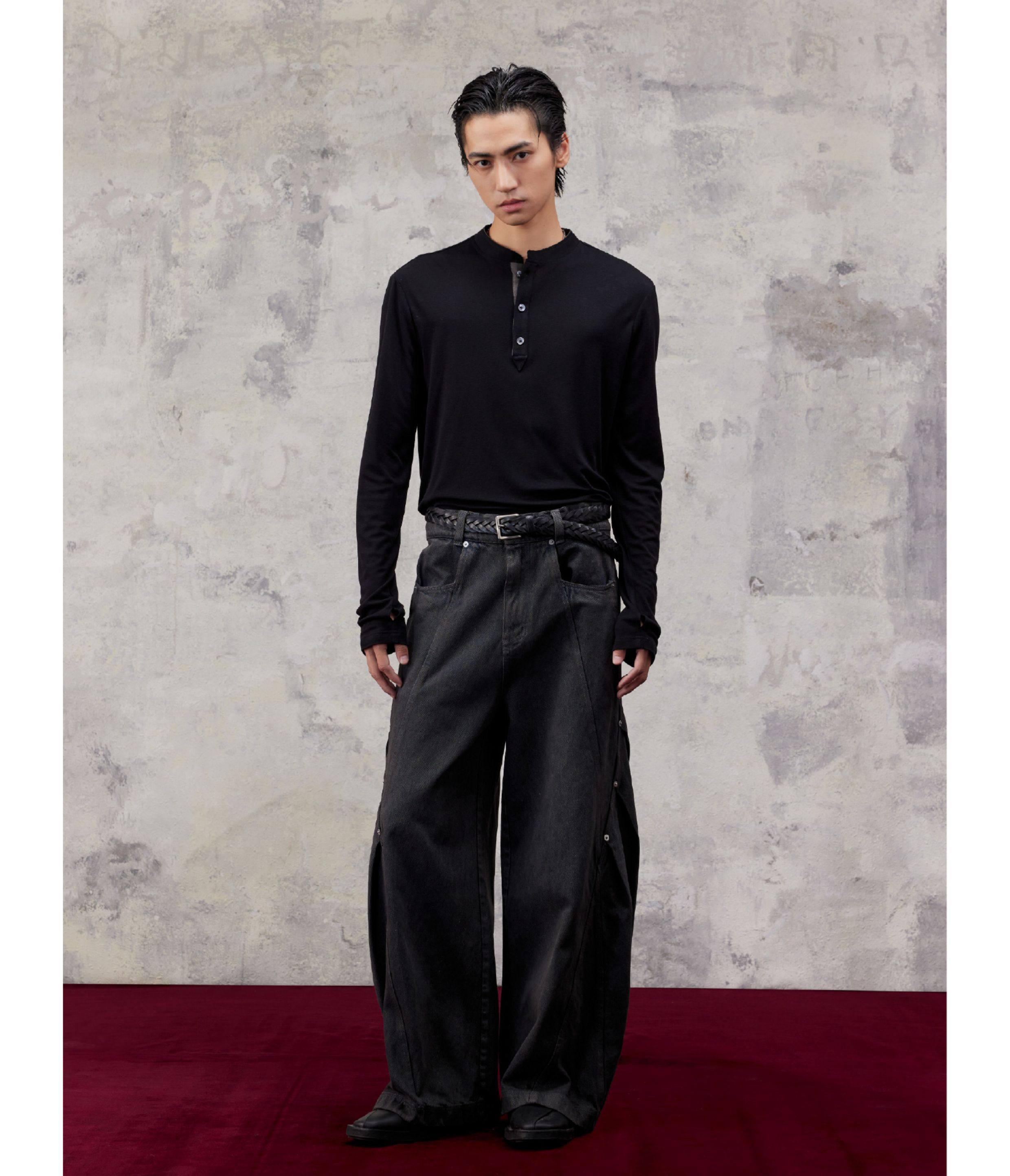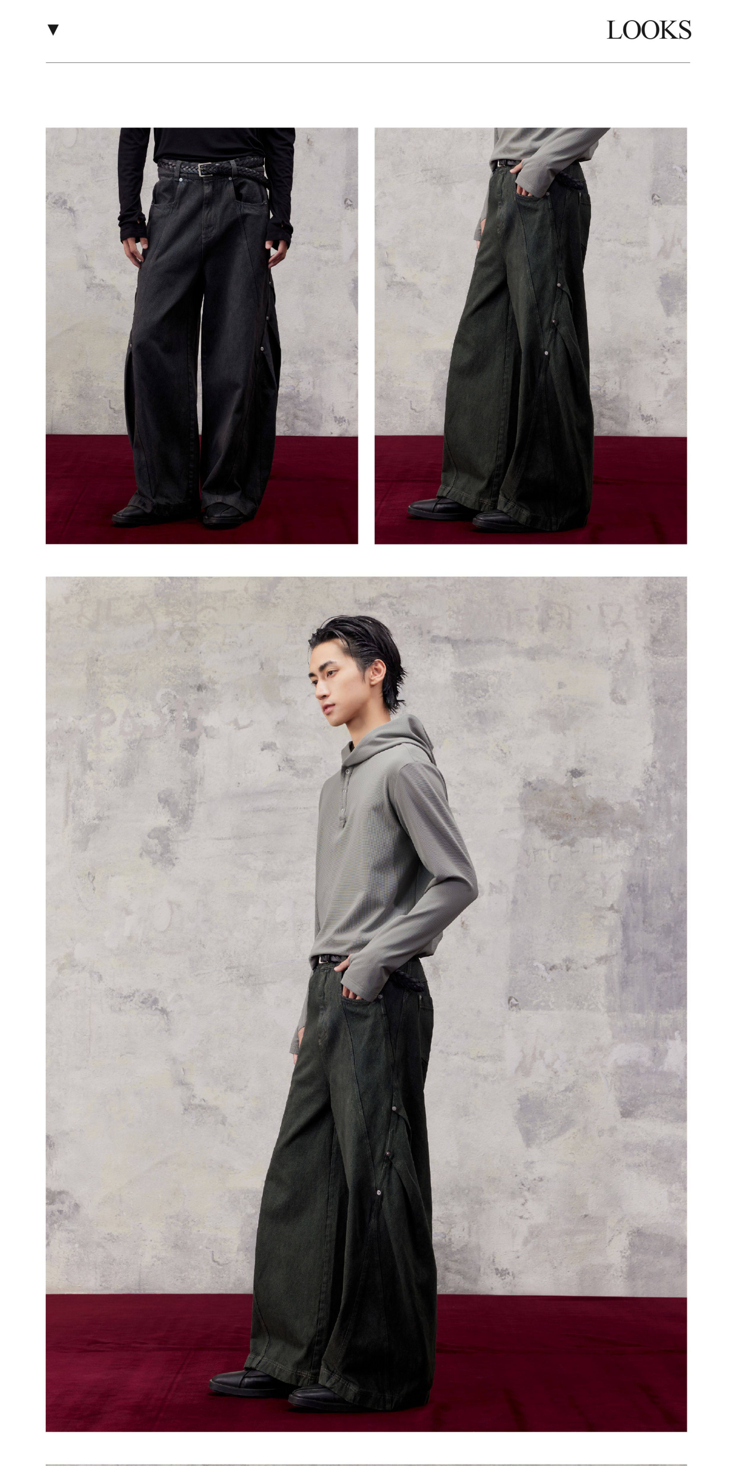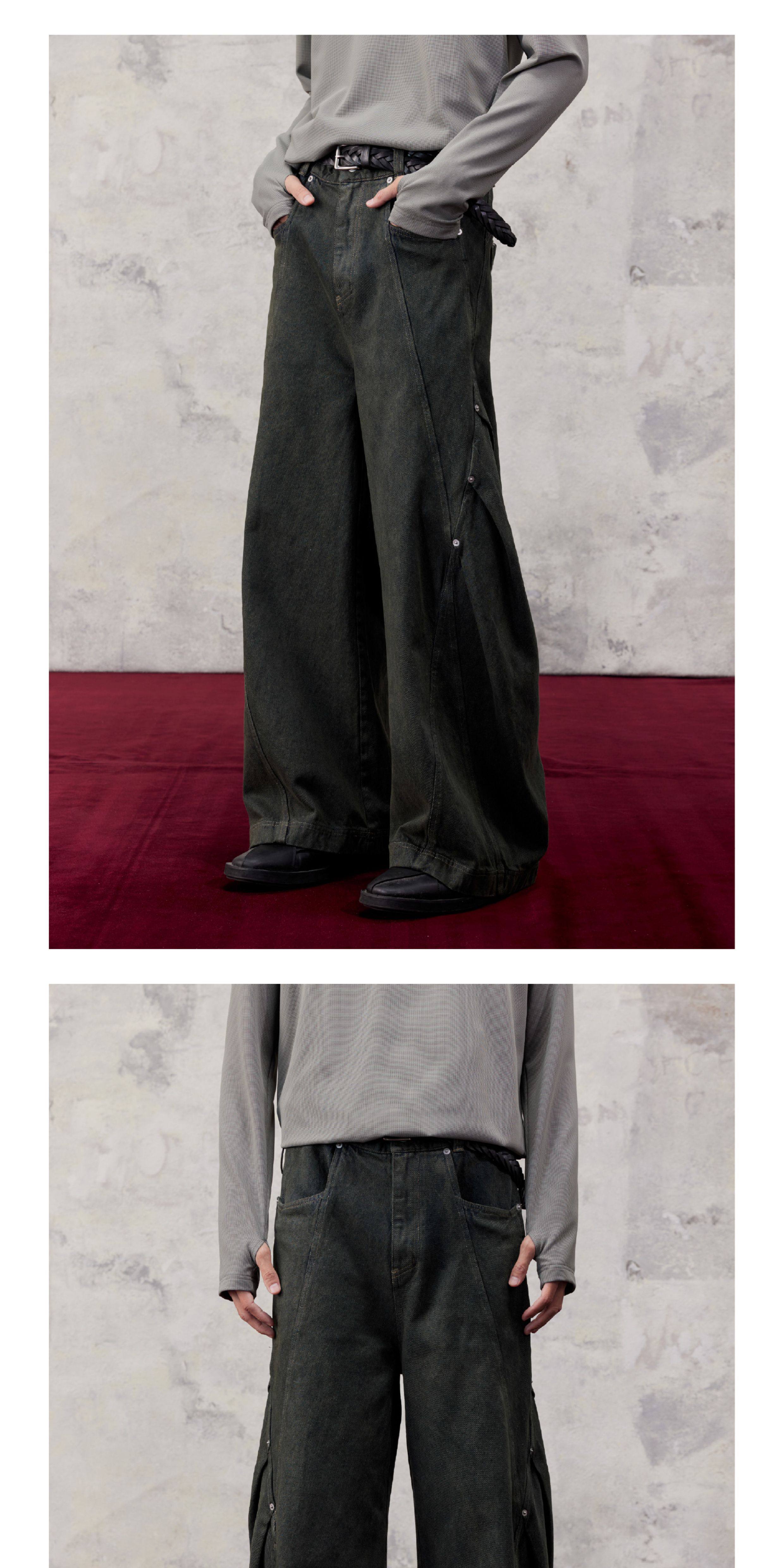 Yunyi [Wind Blade] Washed Distressed Three-Dimensional Light and Shadow Pleated Curved Knife Heavy Denim Silhouette Structure Jeans