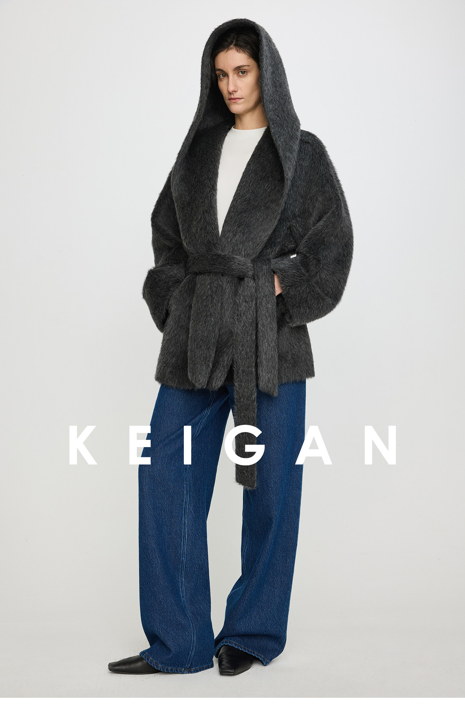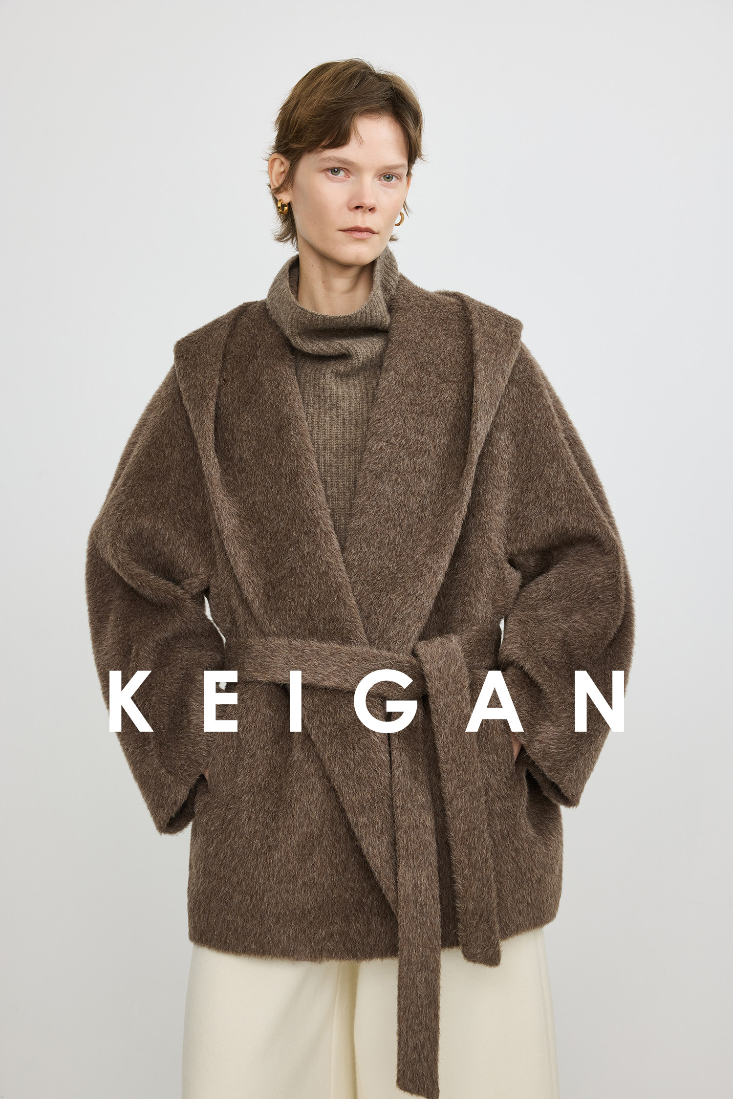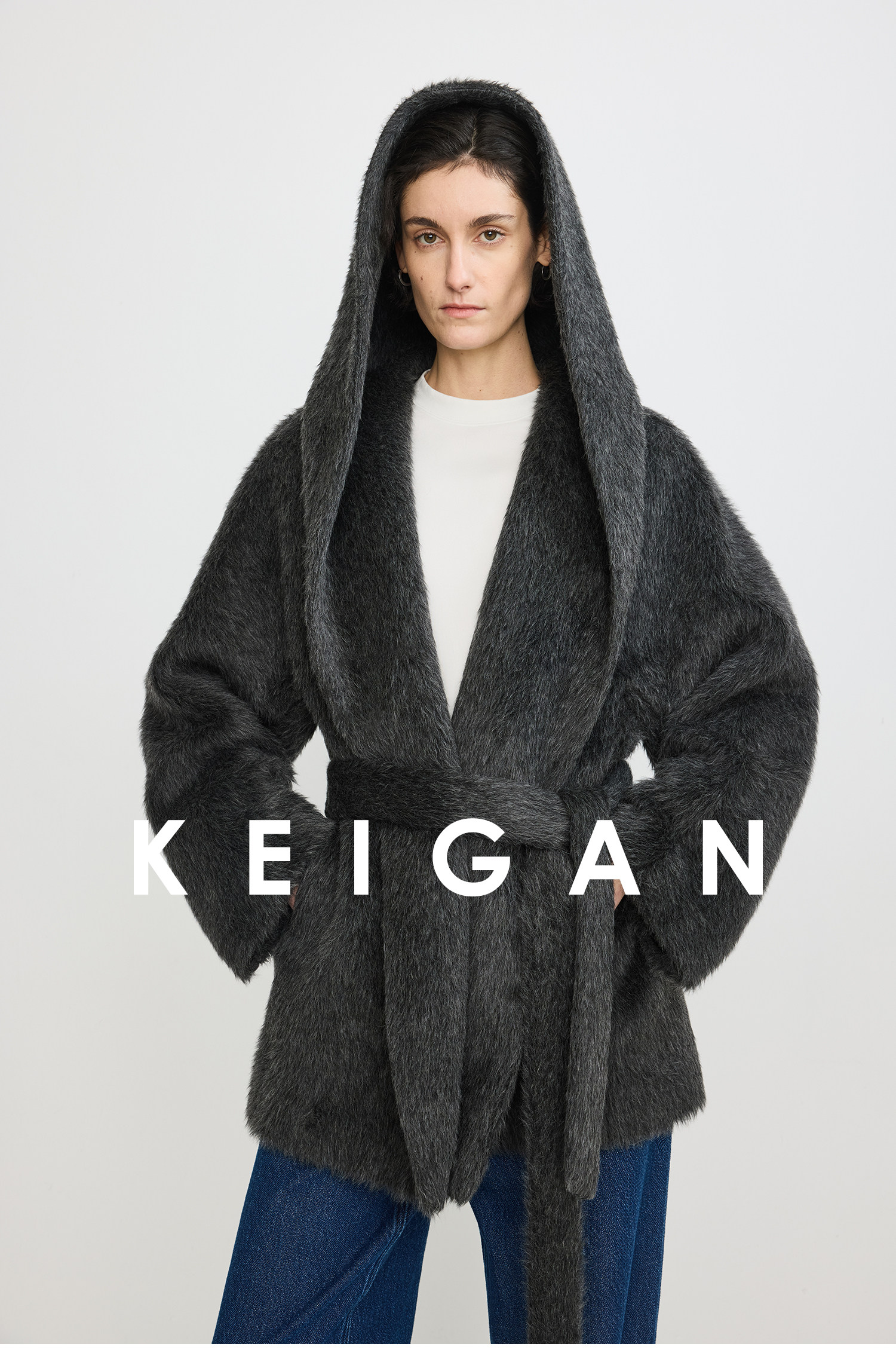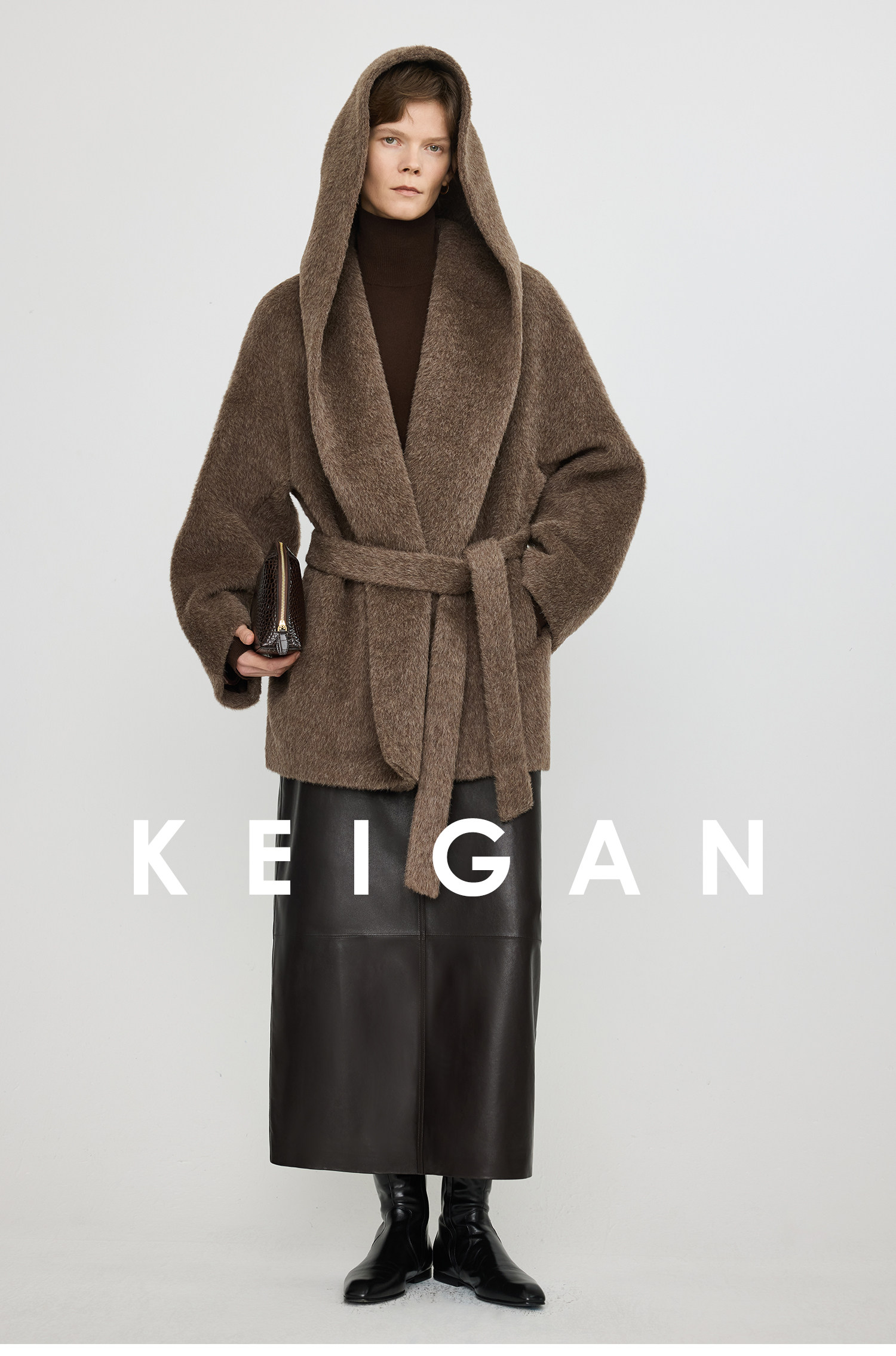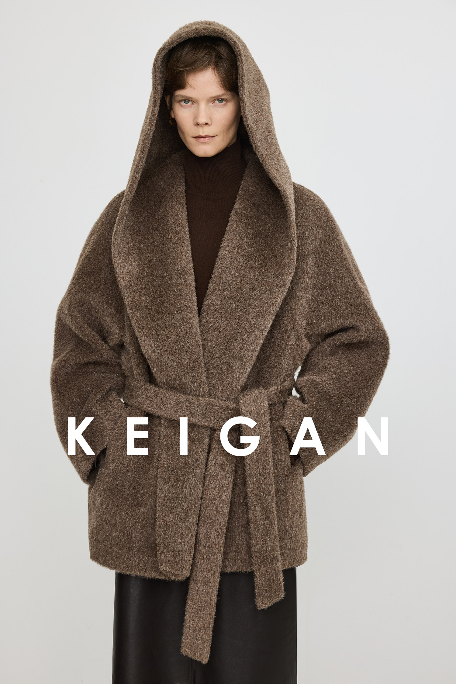 Black Label/Italian Texco Extra-Long Wool Peruvian Inca Natural Color Alpaca Hooded Bathrobe-Style Short Coat
