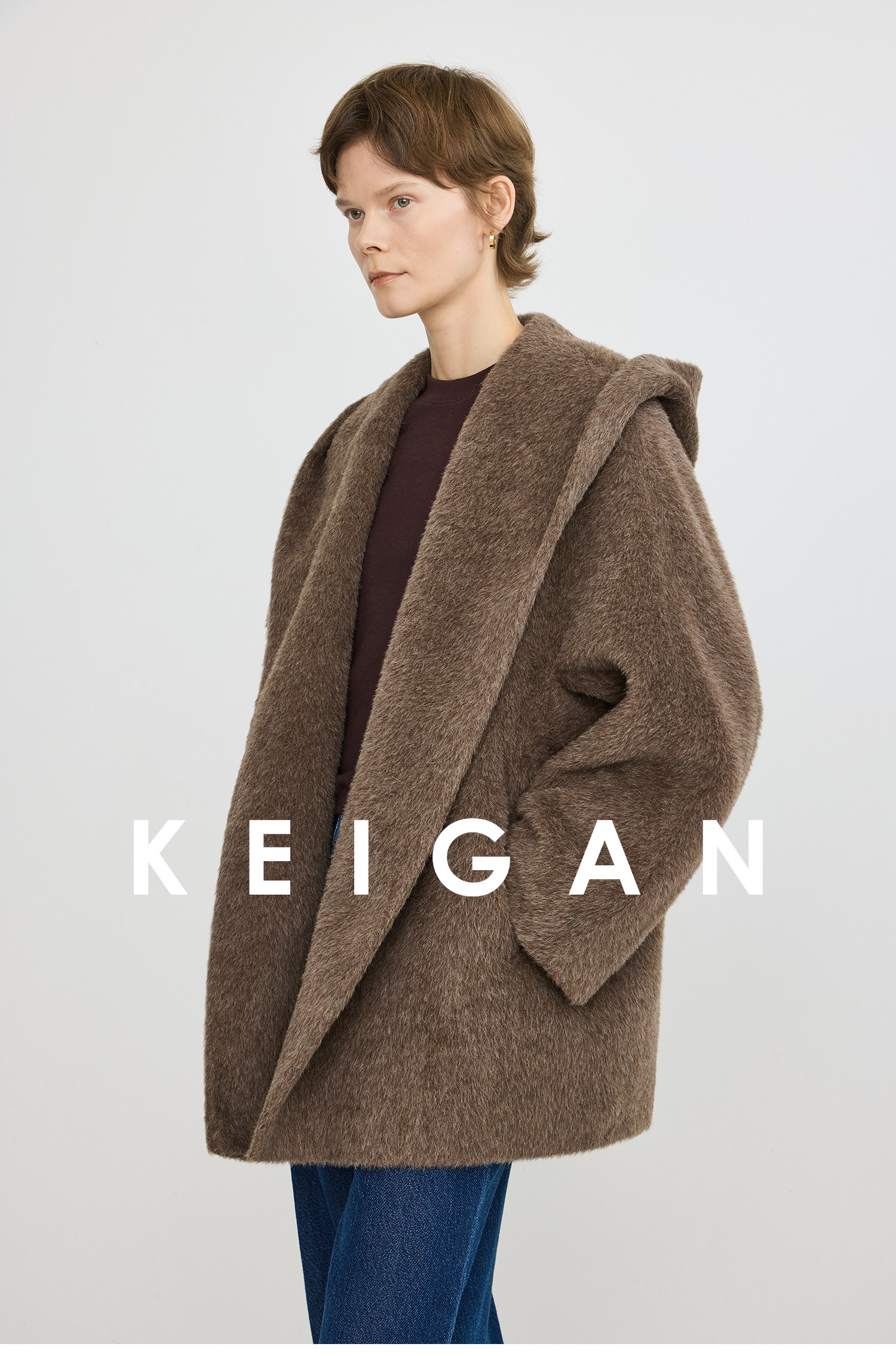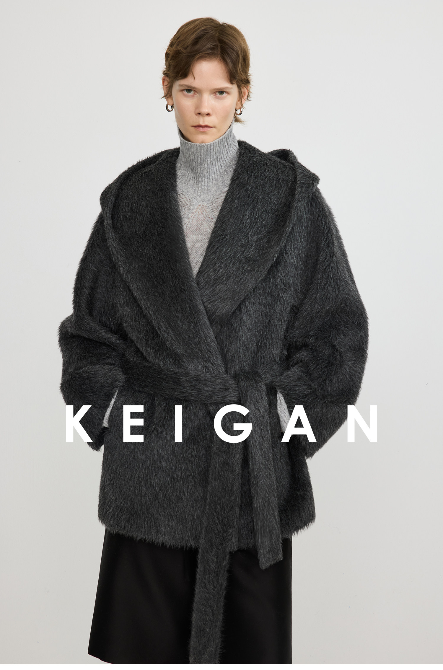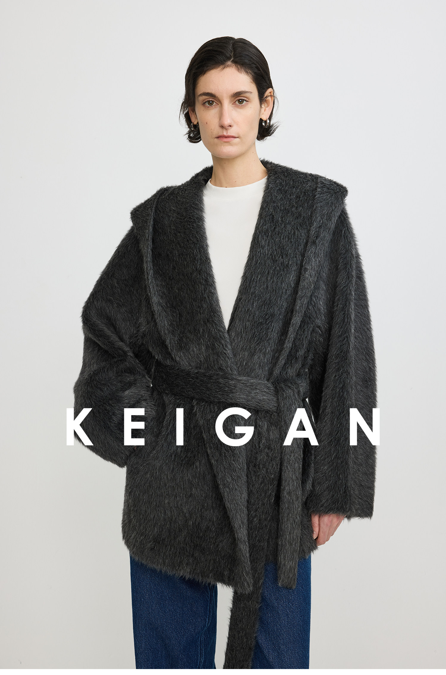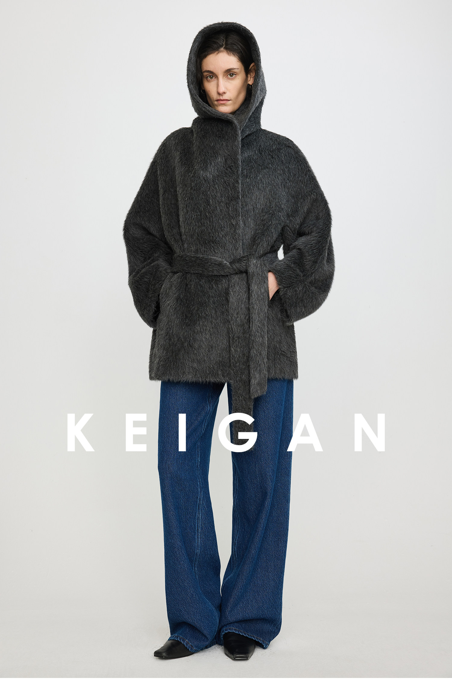Black Label/Italian Texco Extra-Long Wool Peruvian Inca Natural Color Alpaca Hooded Bathrobe-Style Short Coat