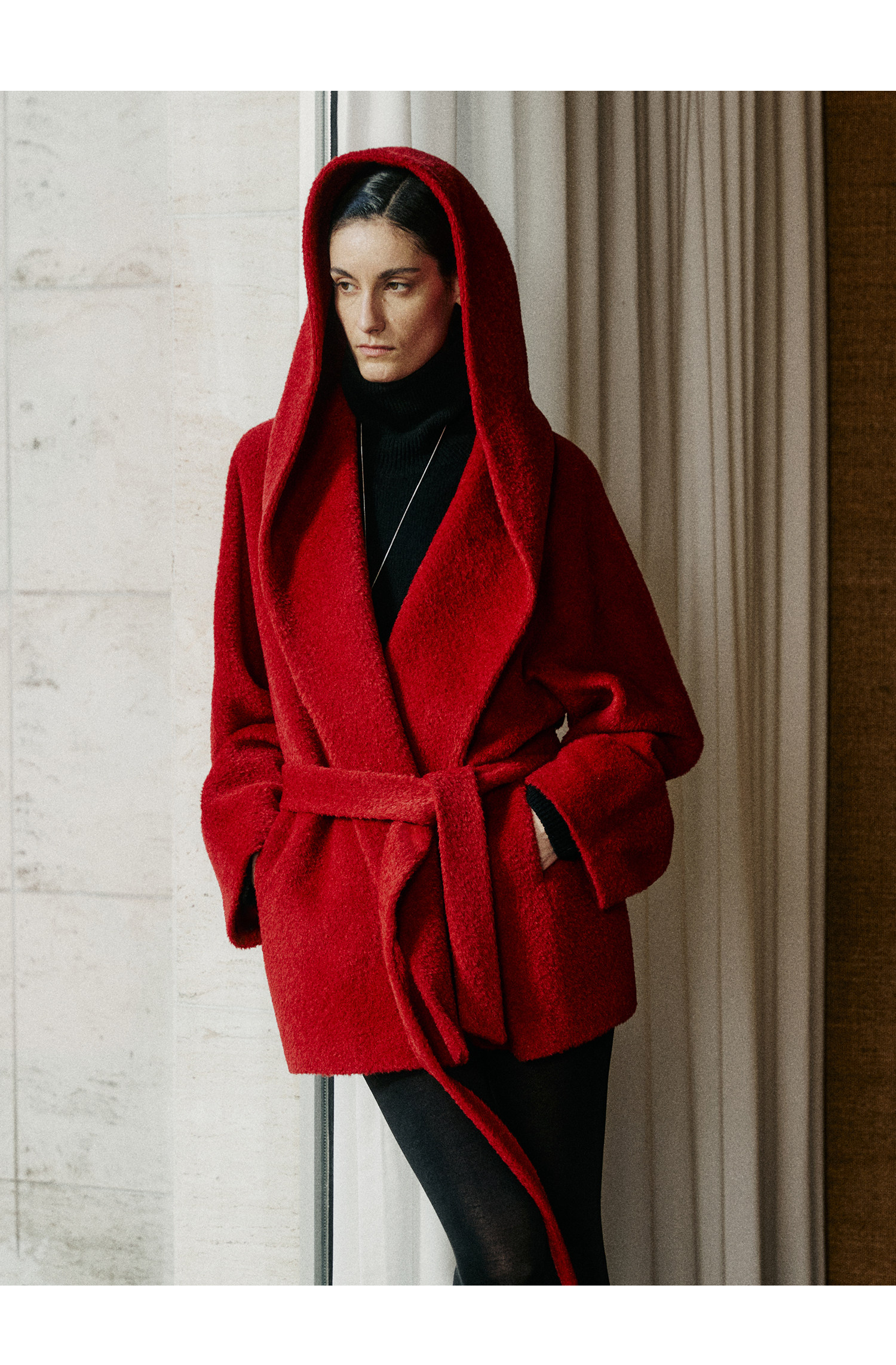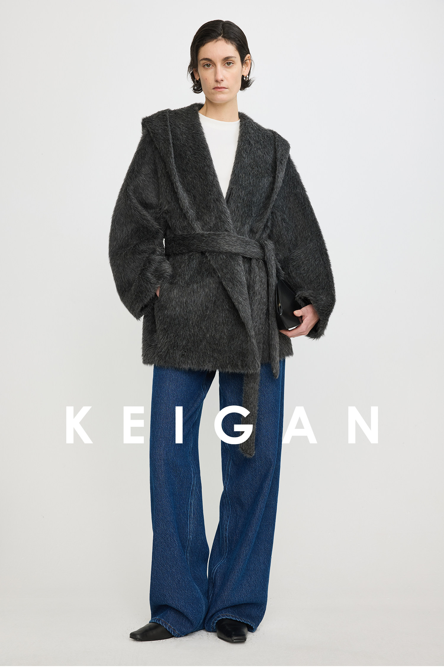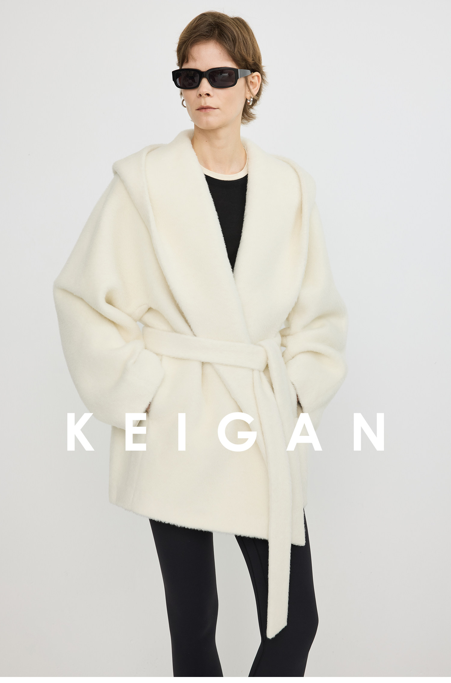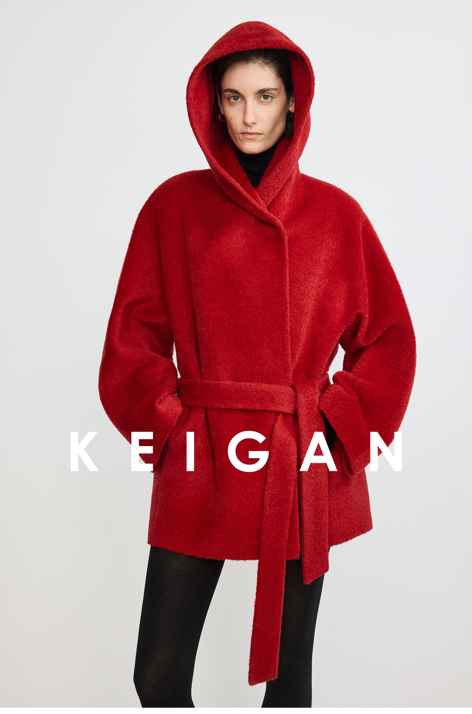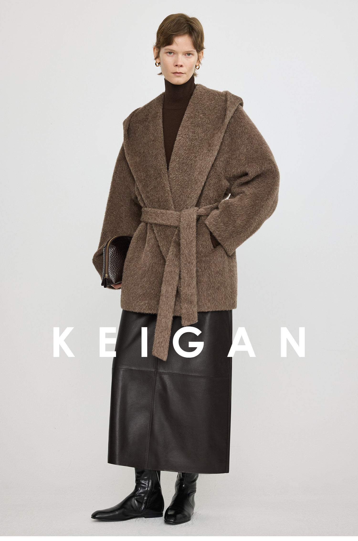 Black Label/Italian Texco Extra-Long Wool Peruvian Inca Natural Color Alpaca Hooded Bathrobe-Style Short Coat