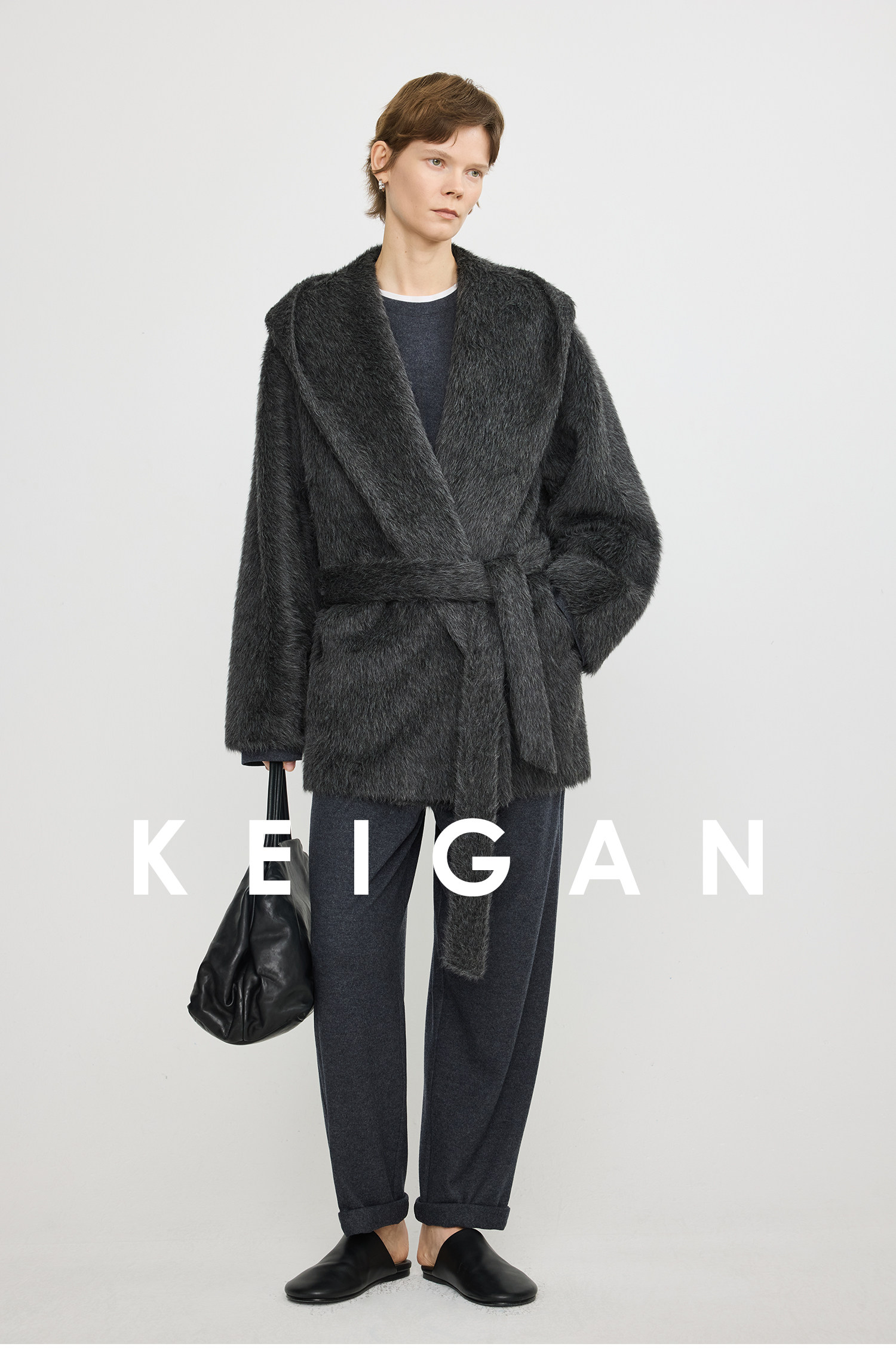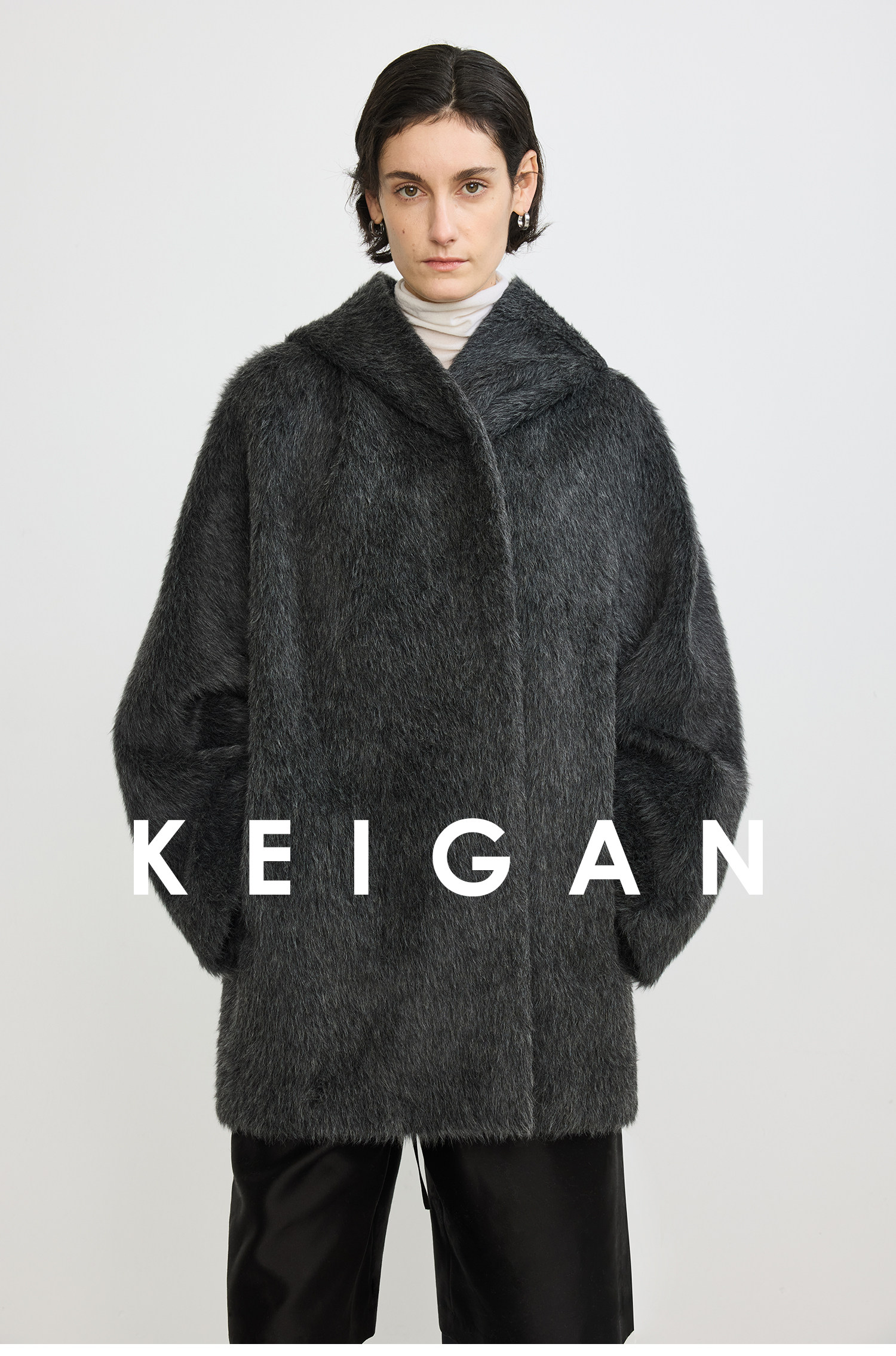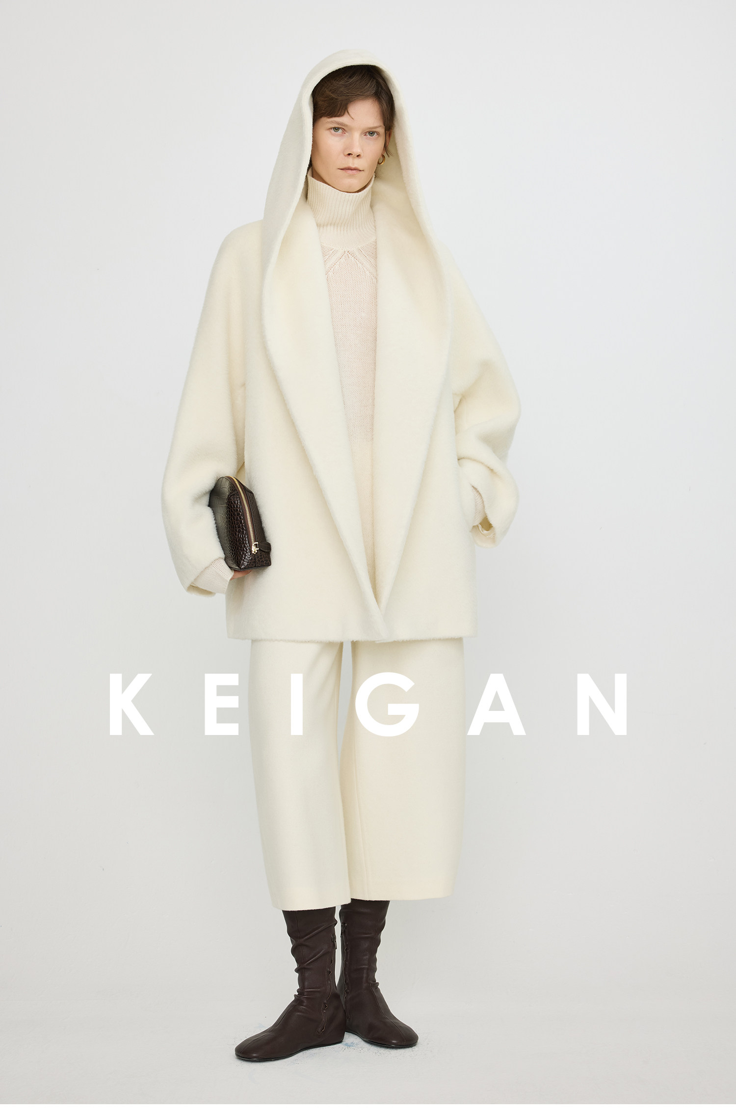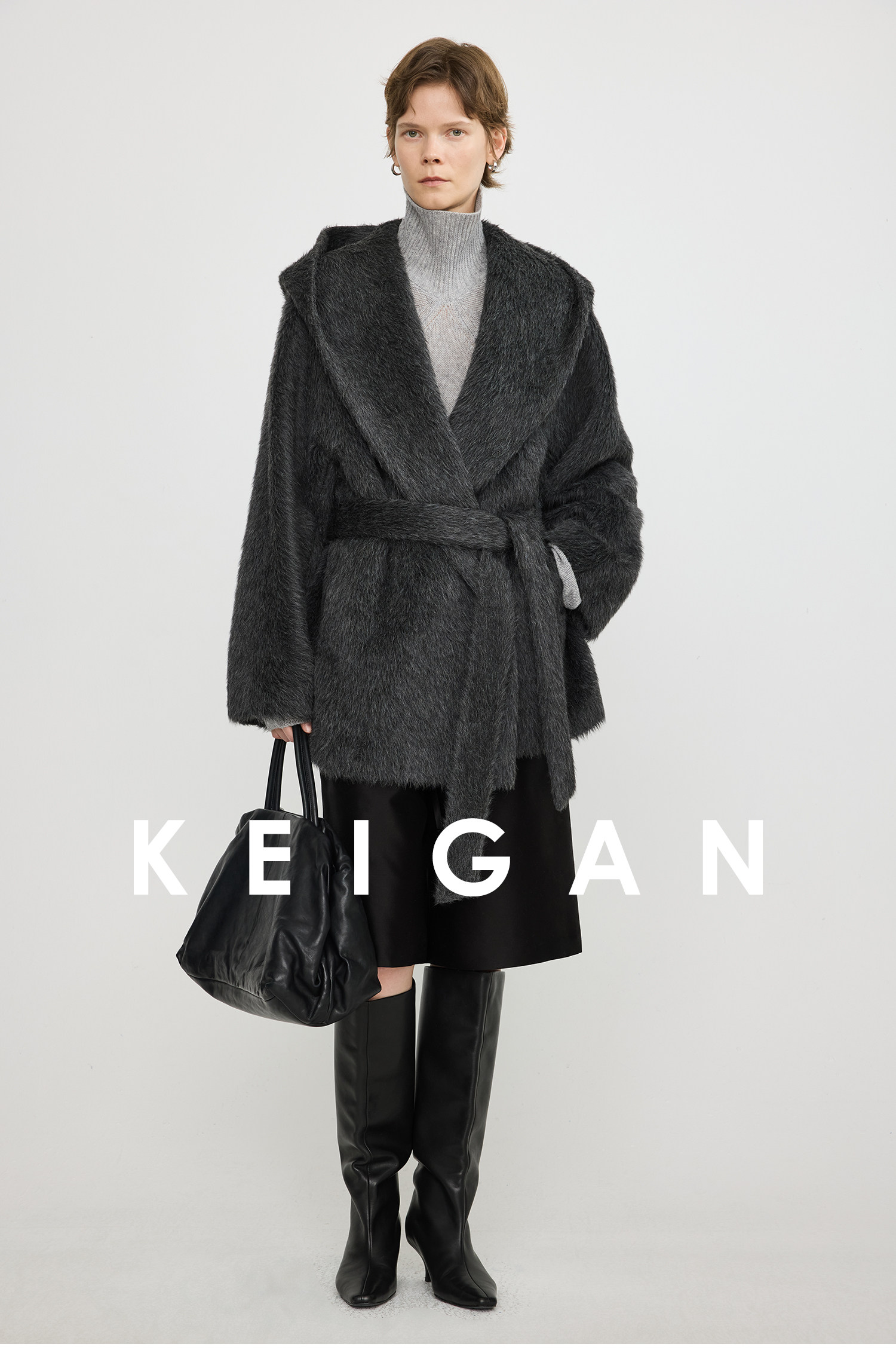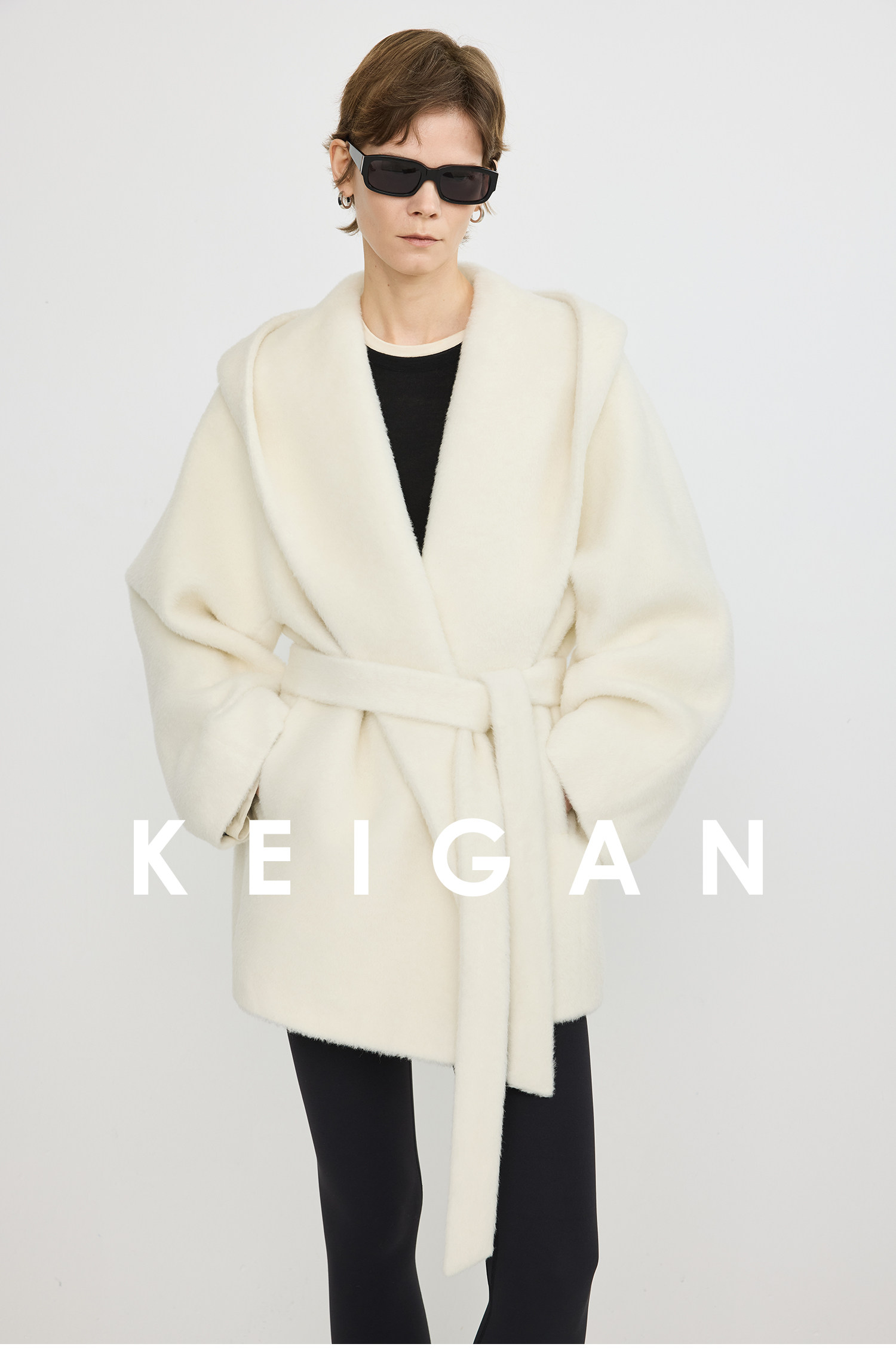 Black Label/Italian Texco Extra-Long Wool Peruvian Inca Natural Color Alpaca Hooded Bathrobe-Style Short Coat