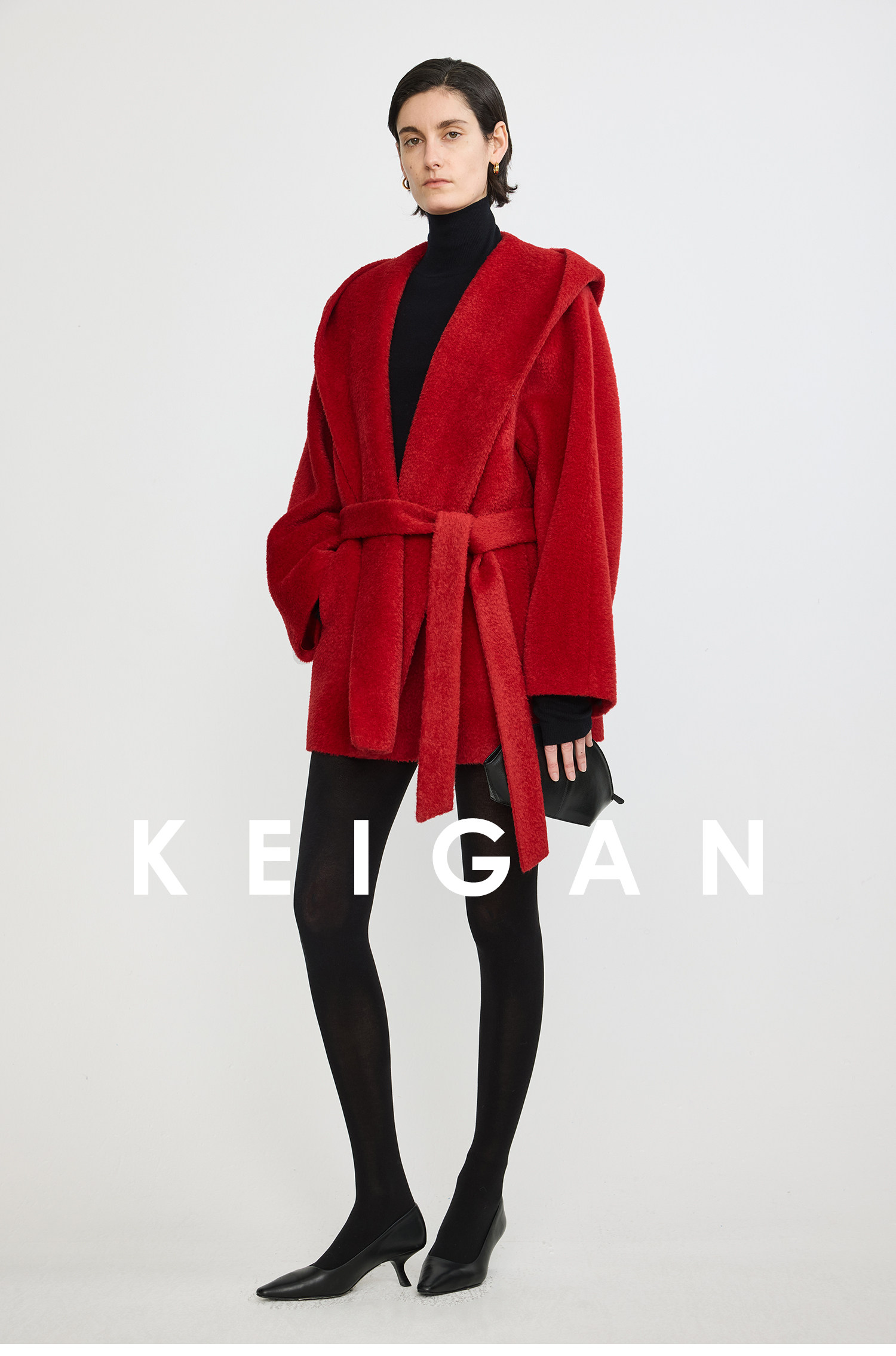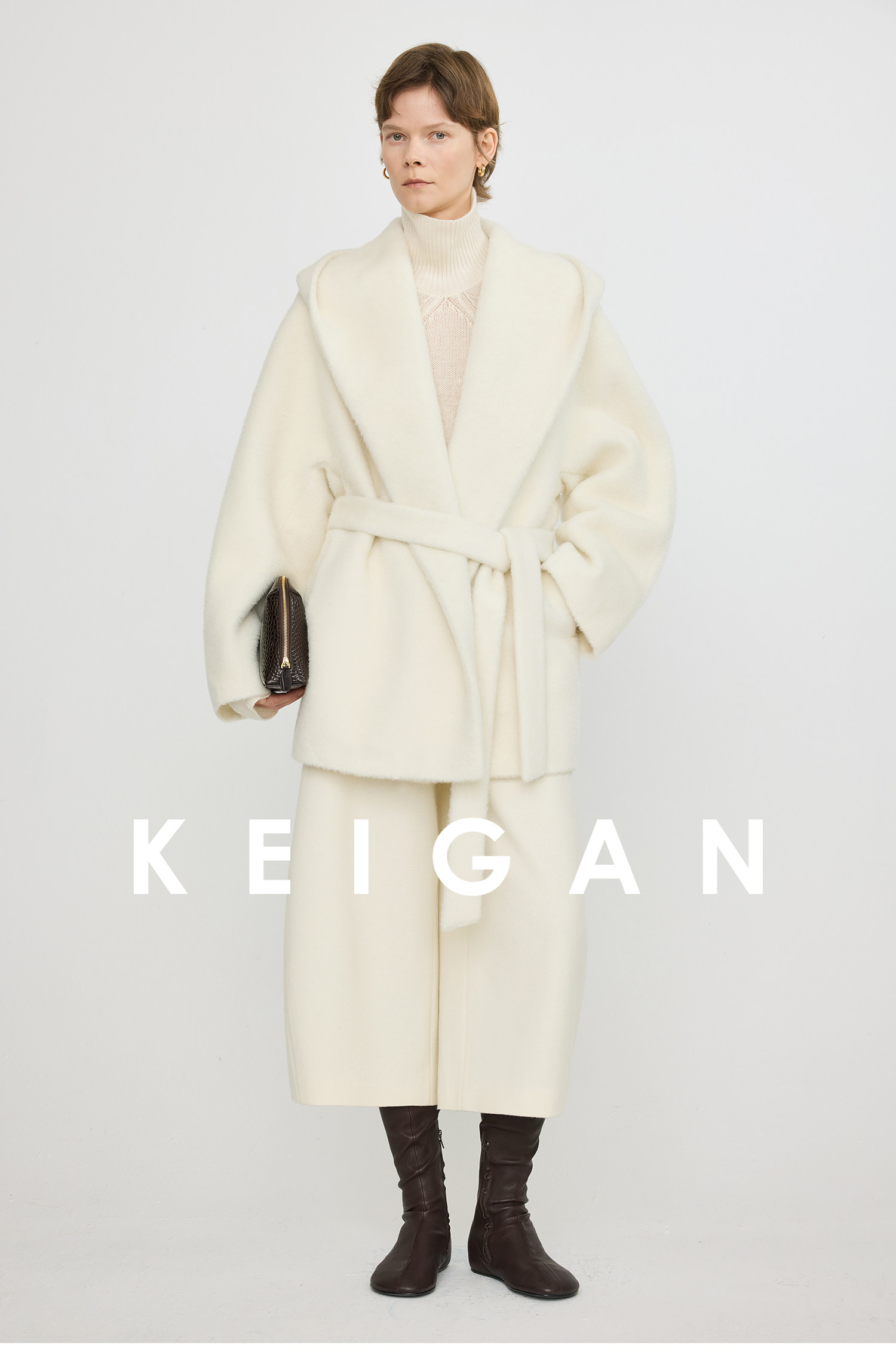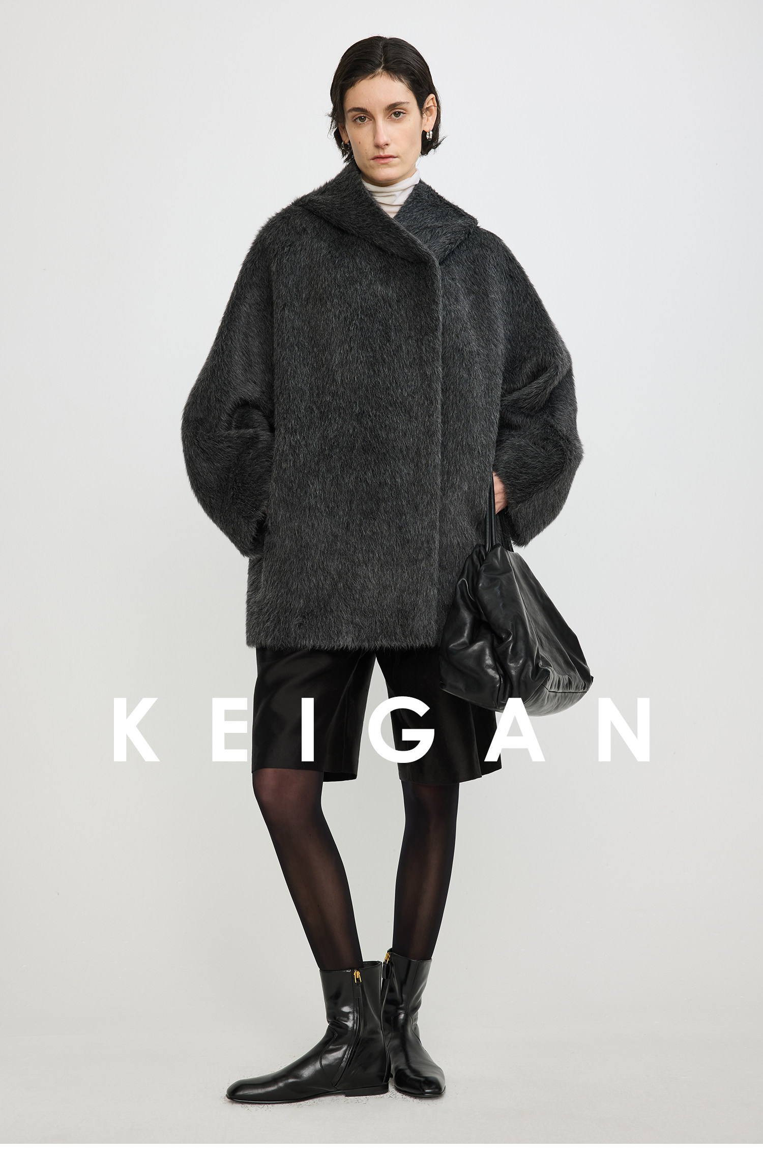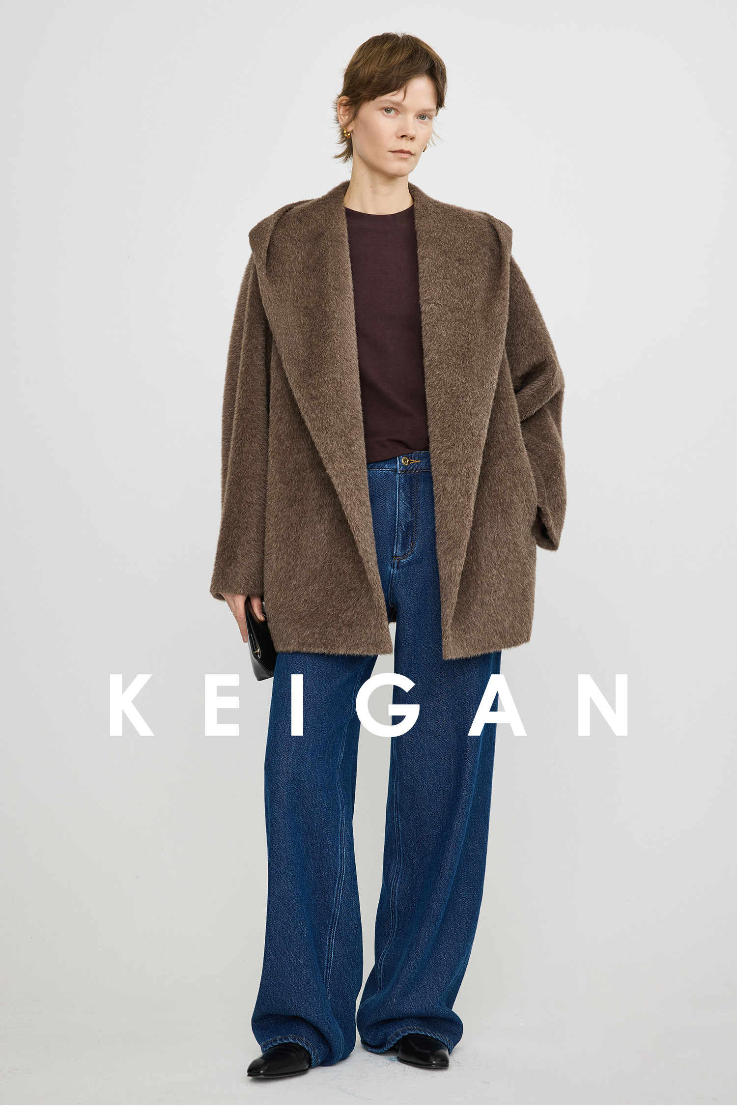 Black Label/Italian Texco Extra-Long Wool Peruvian Inca Natural Color Alpaca Hooded Bathrobe-Style Short Coat