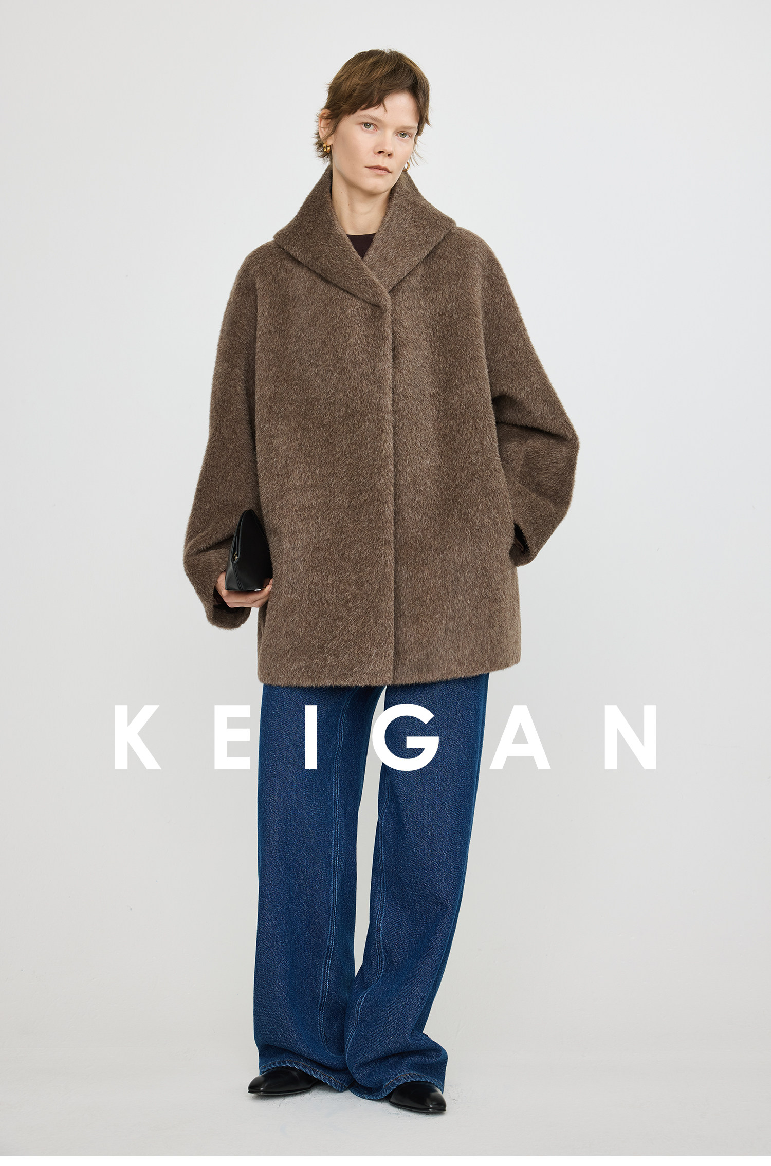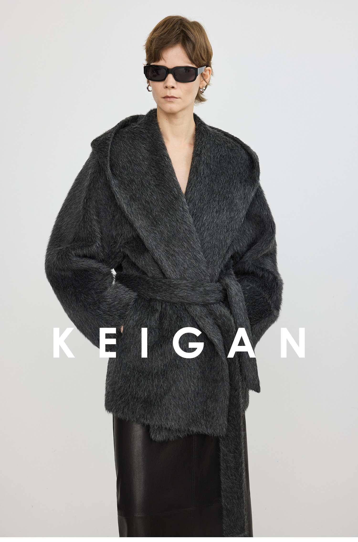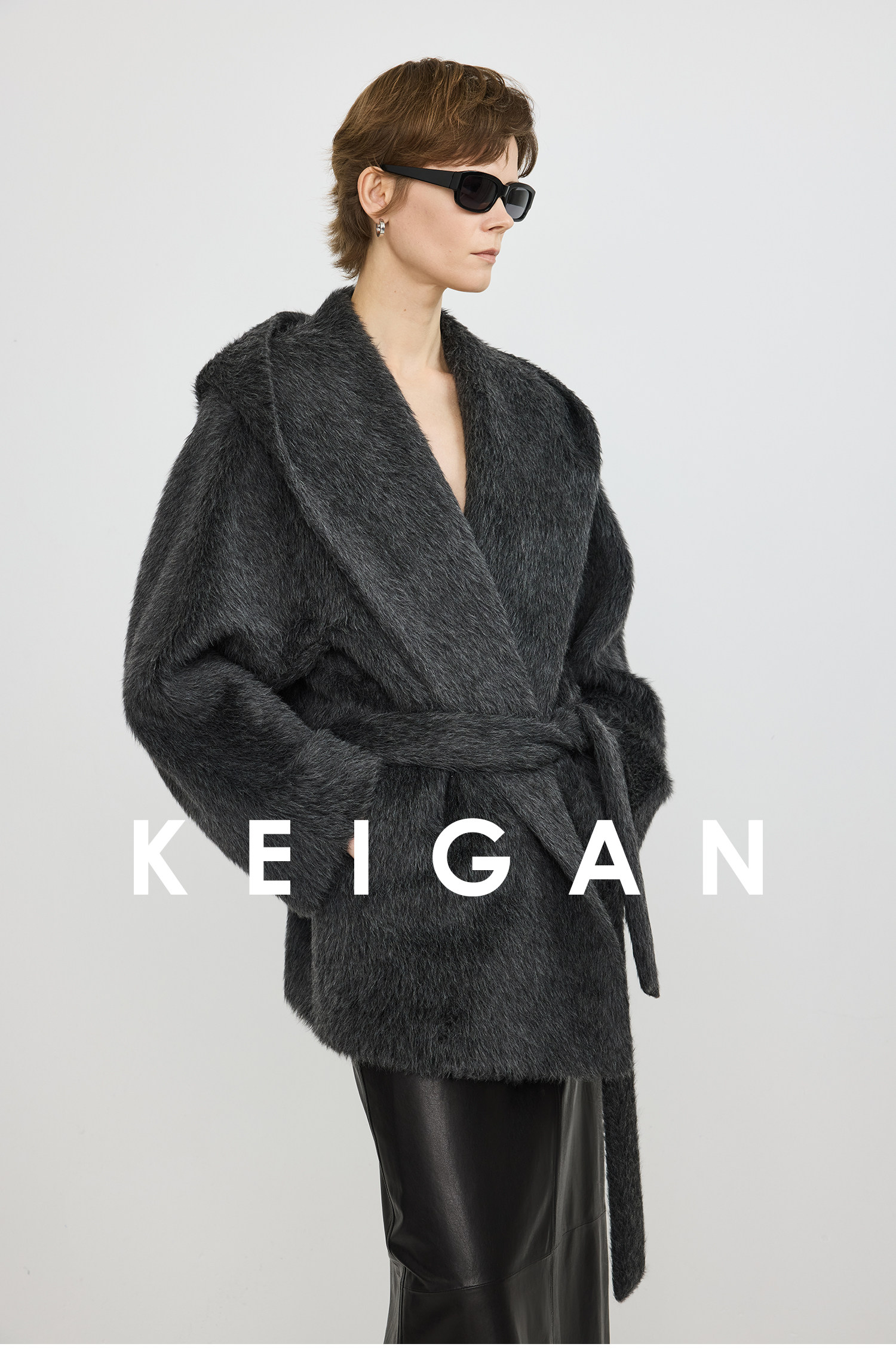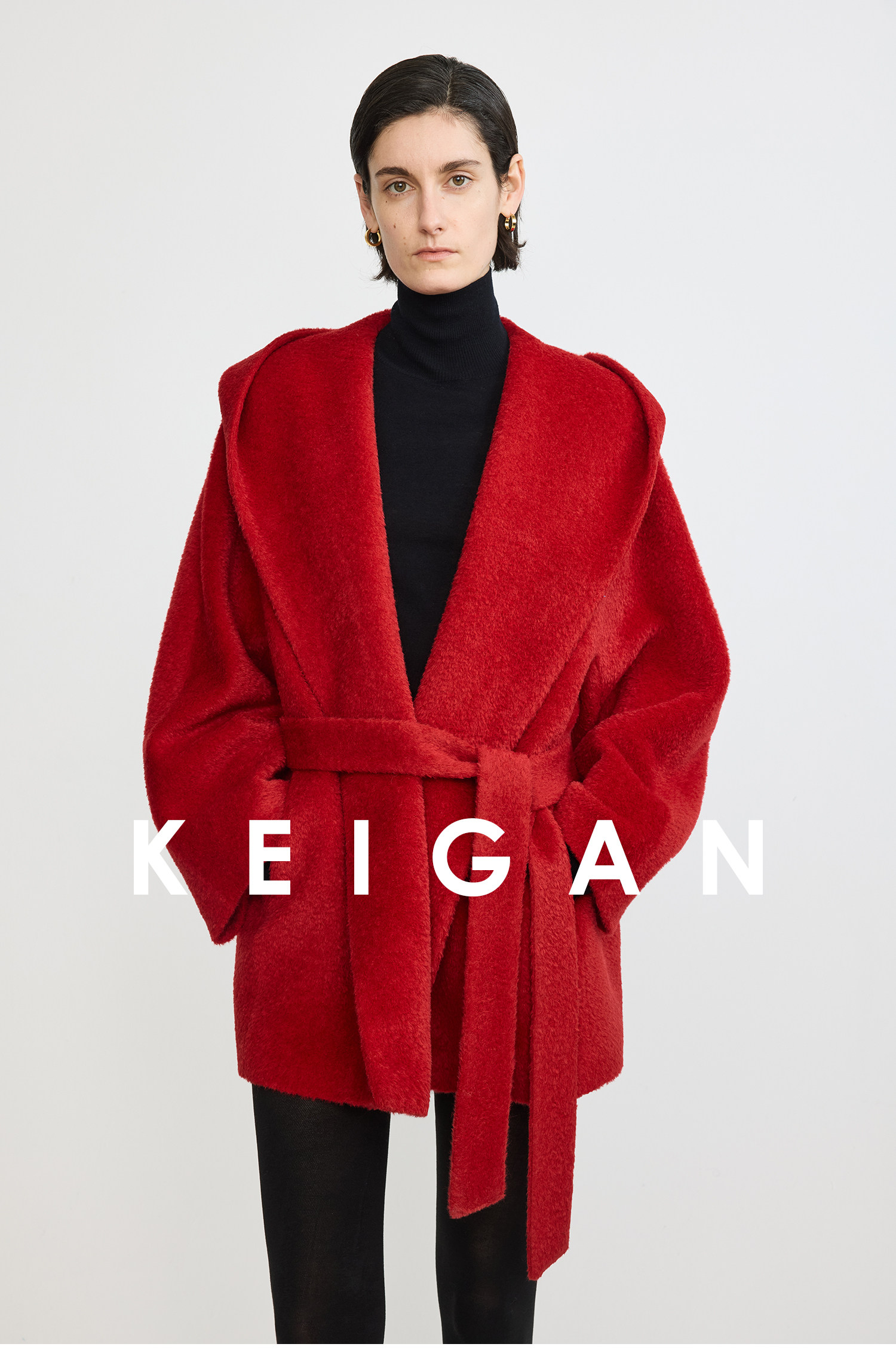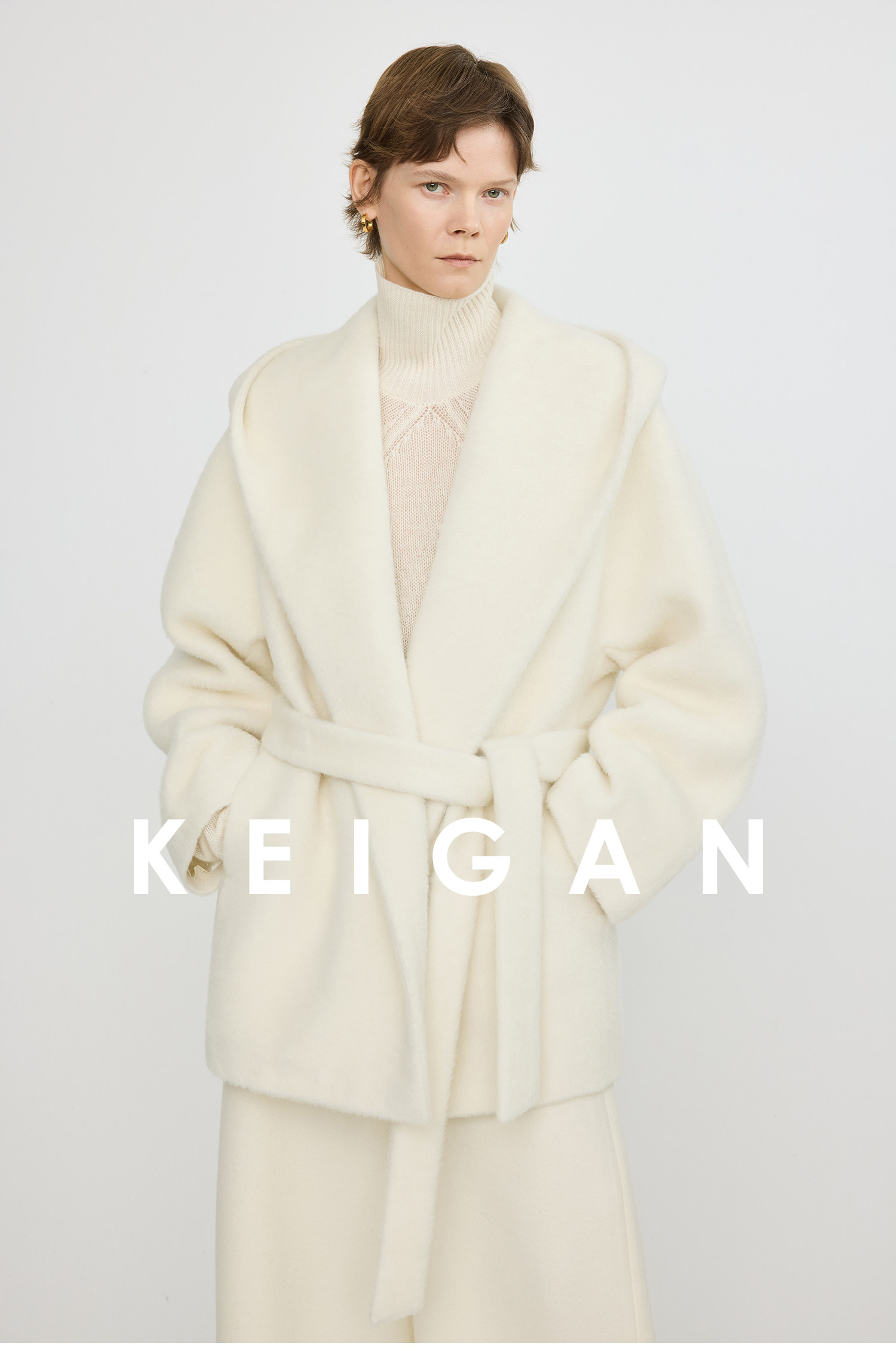 Black Label/Italian Texco Extra-Long Wool Peruvian Inca Natural Color Alpaca Hooded Bathrobe-Style Short Coat