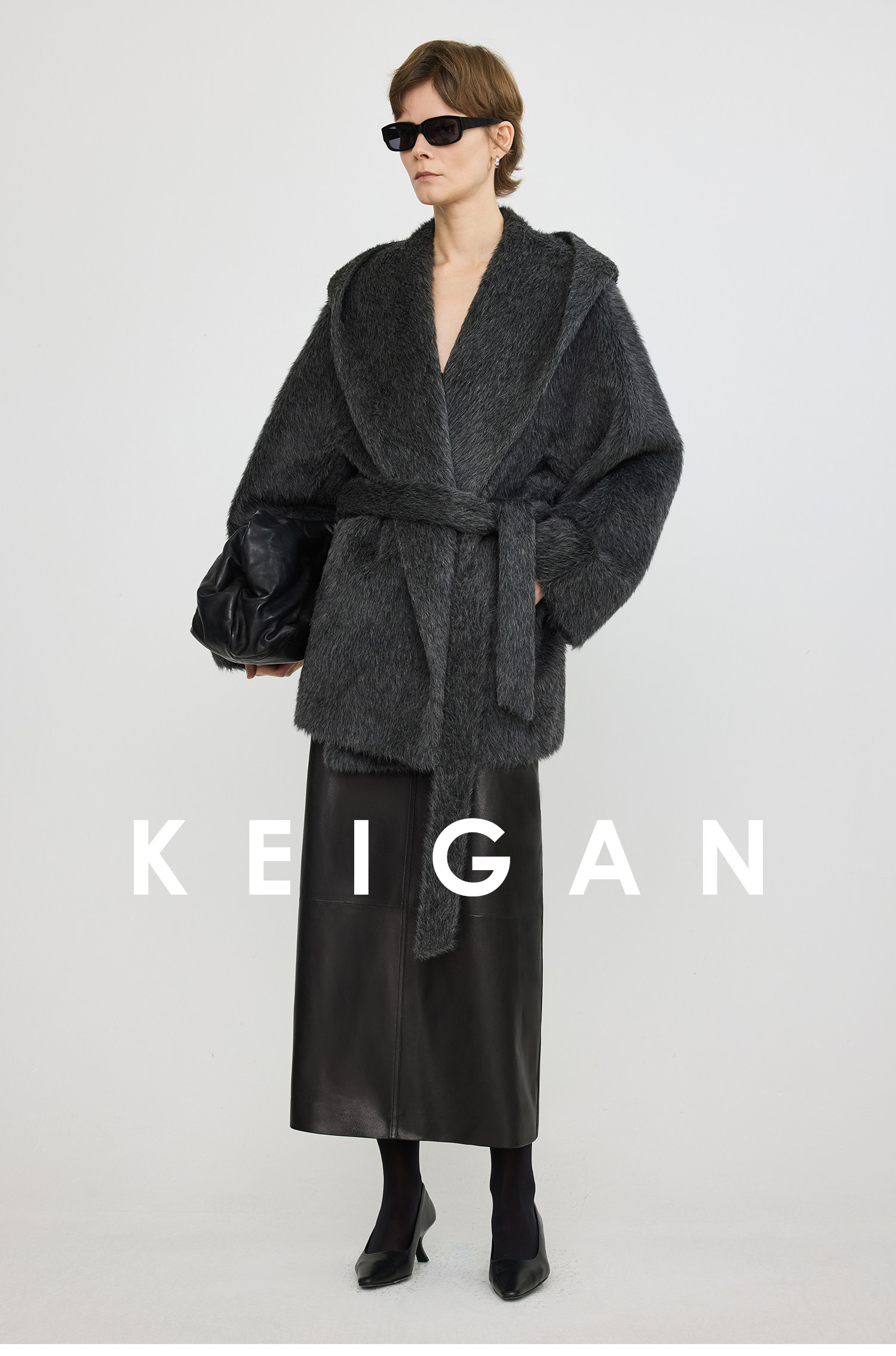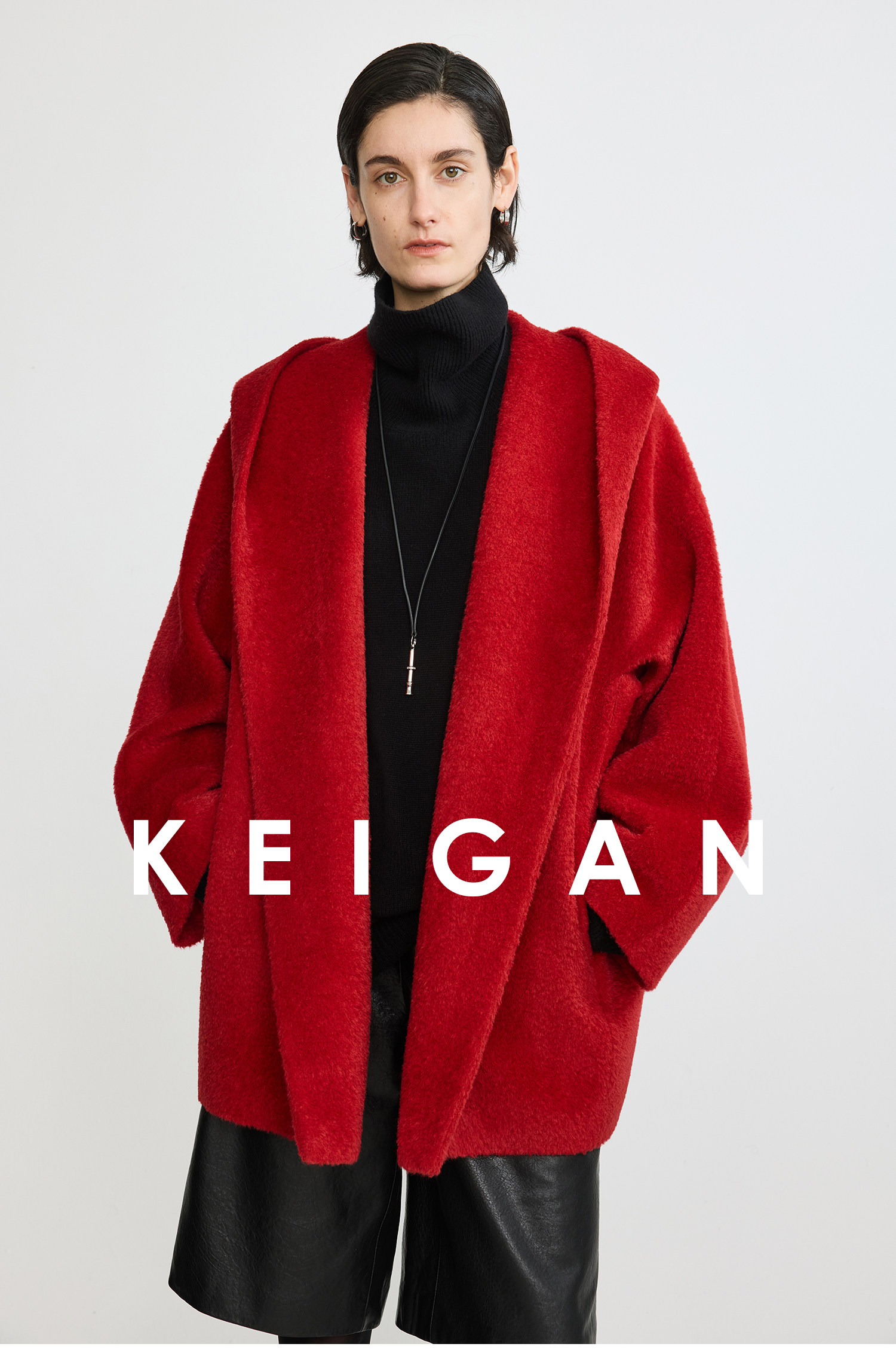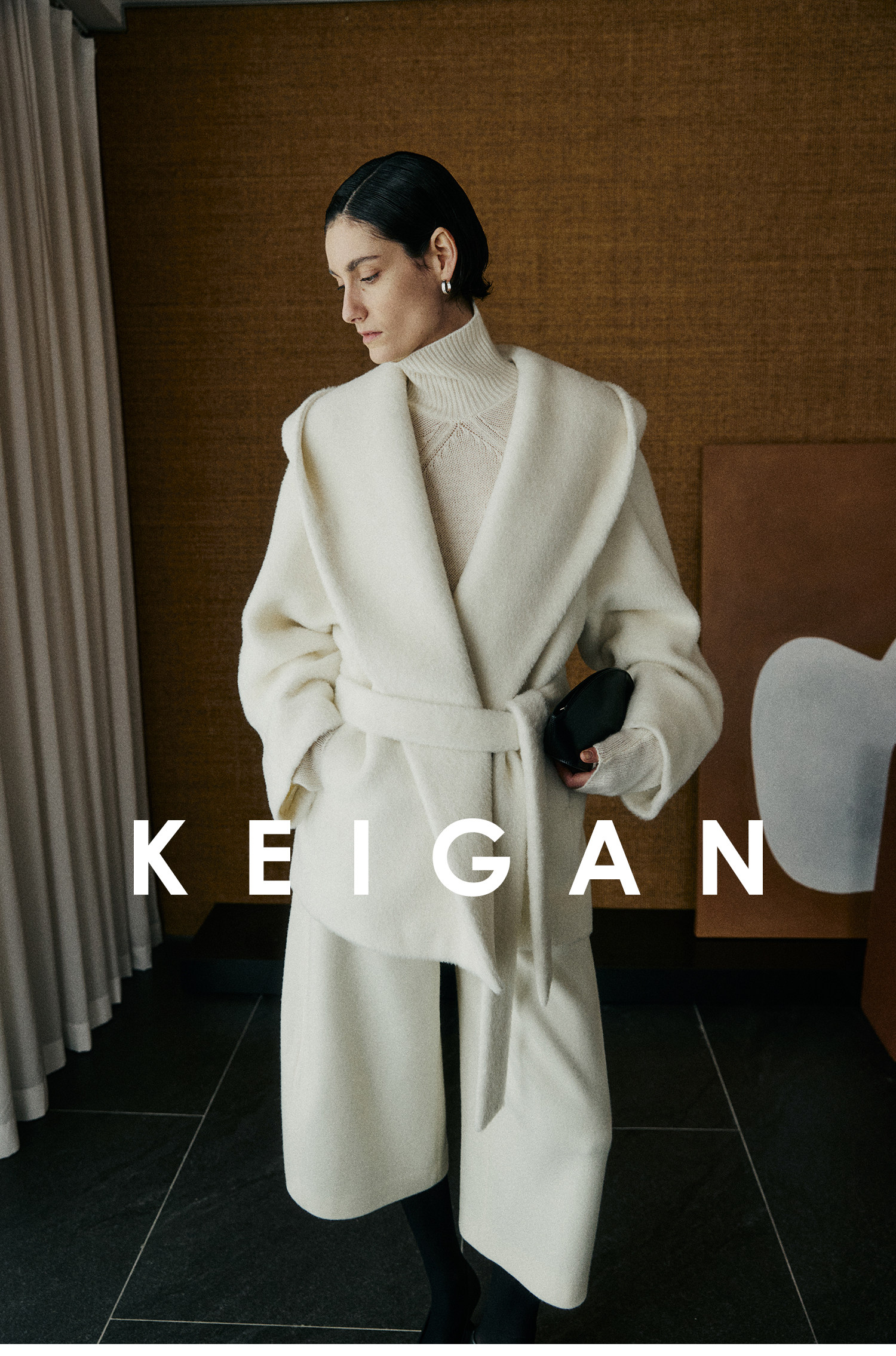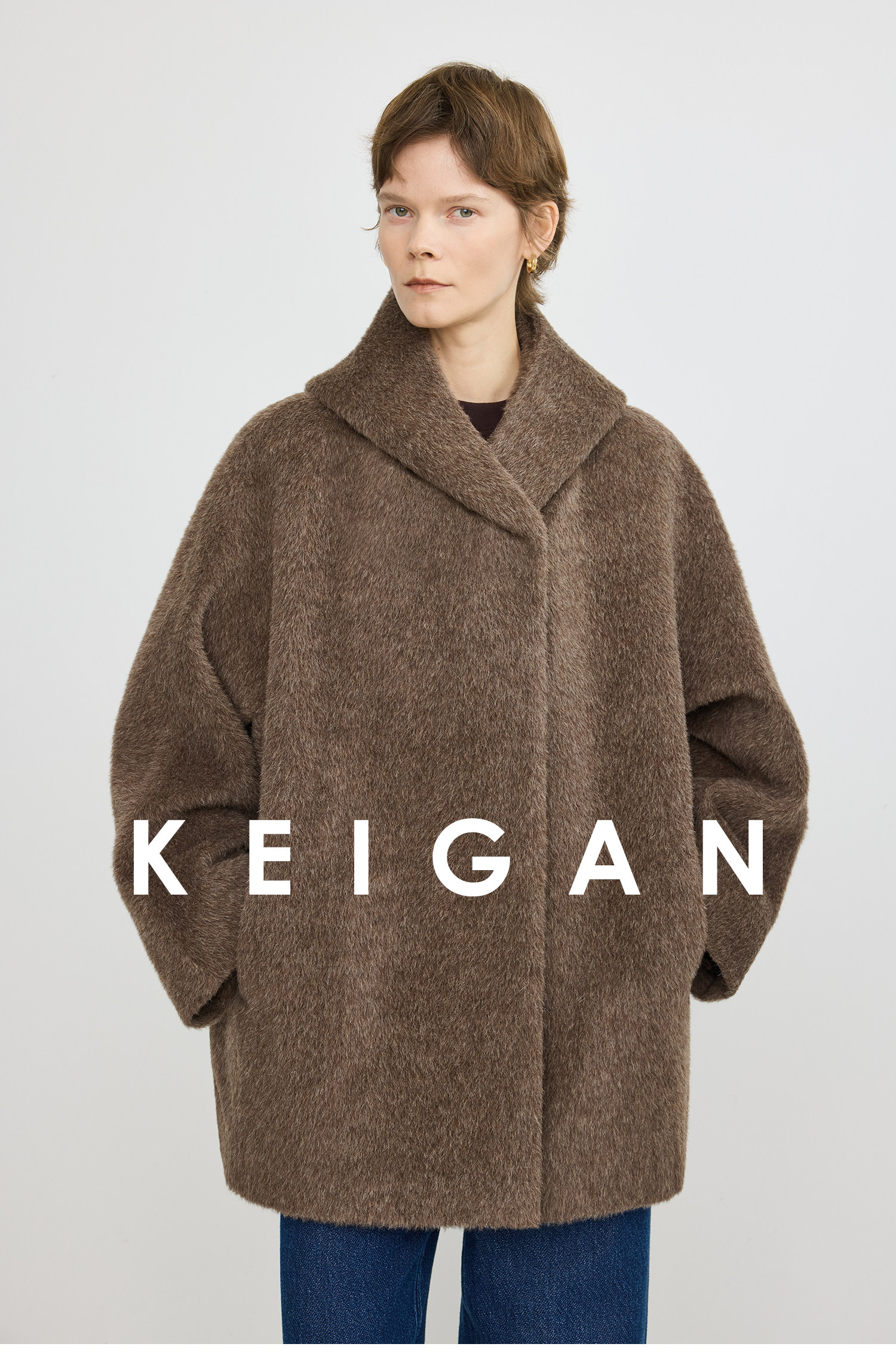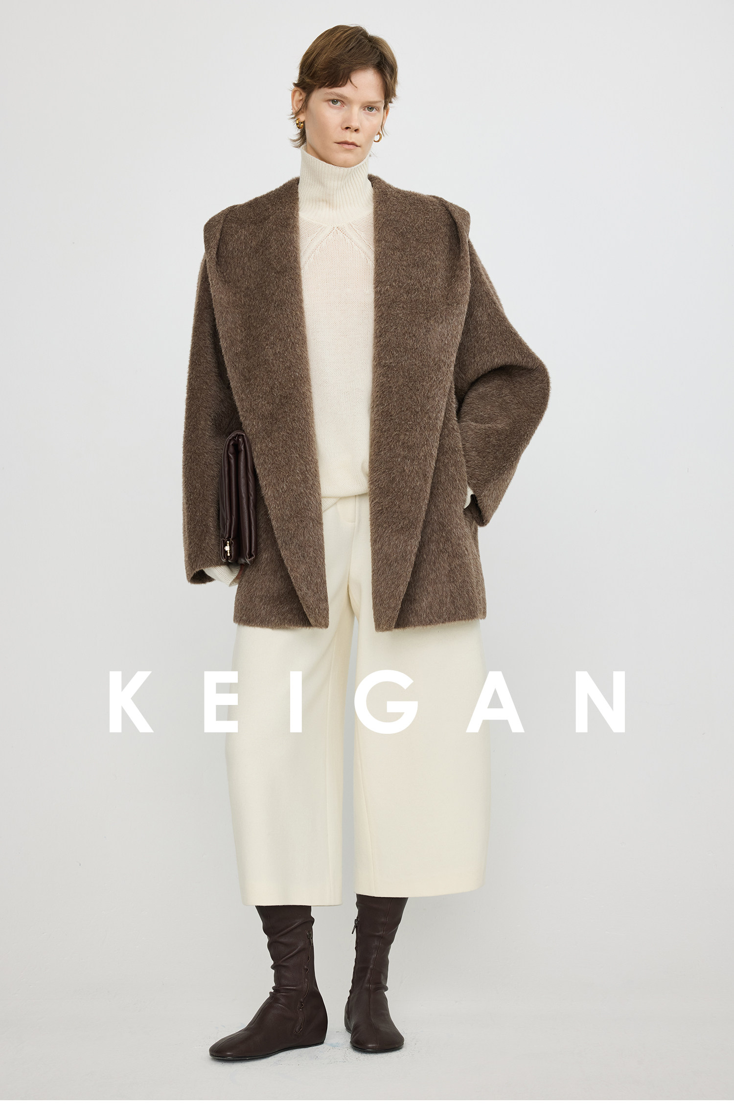 Black Label/Italian Texco Extra-Long Wool Peruvian Inca Natural Color Alpaca Hooded Bathrobe-Style Short Coat
