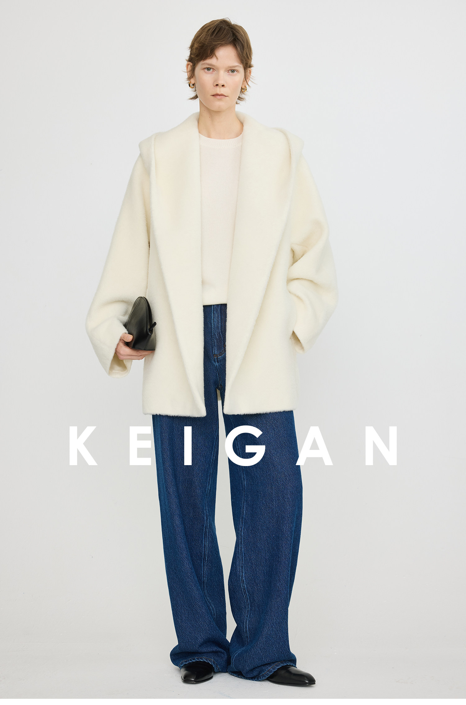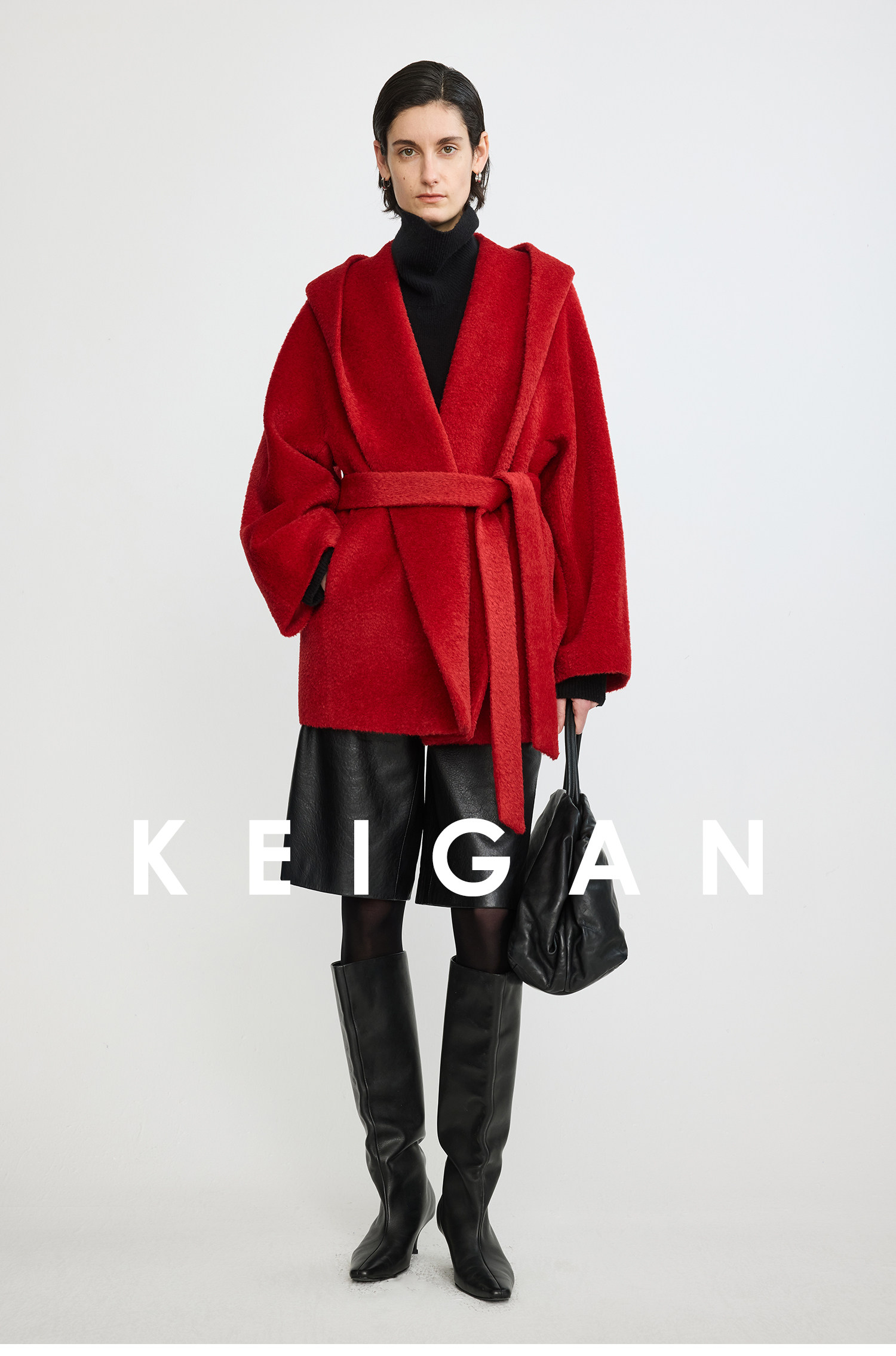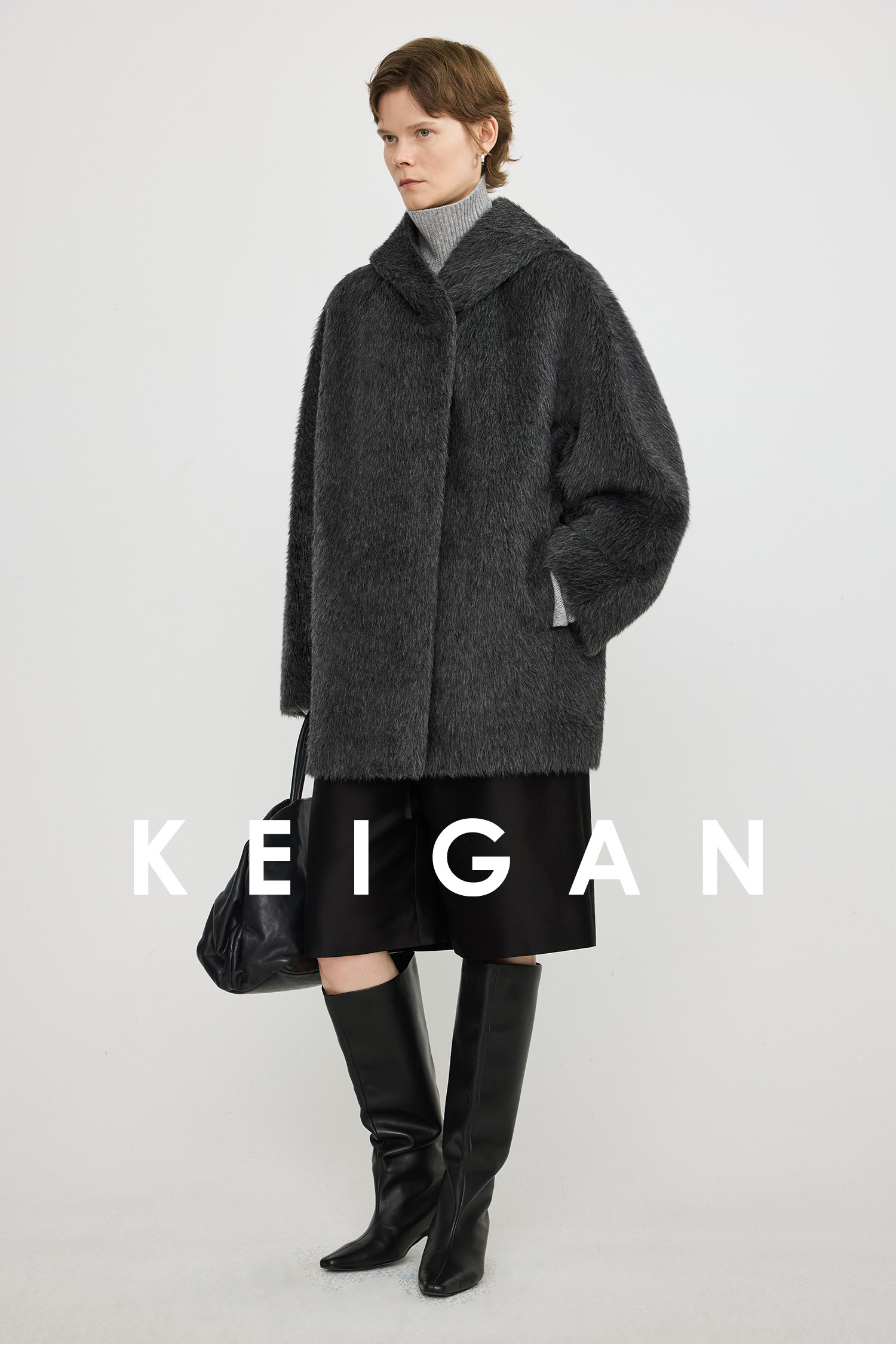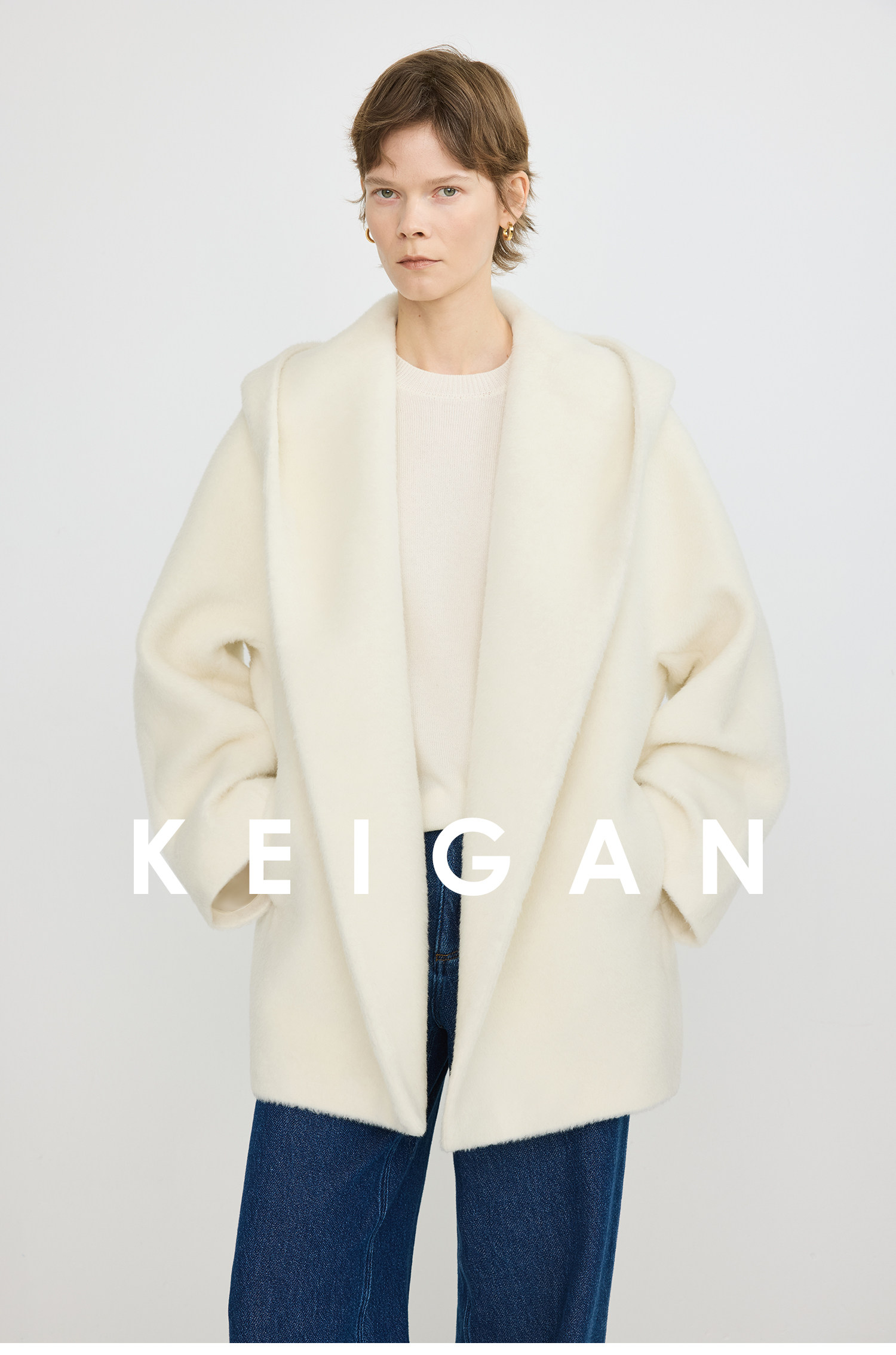 Black Label/Italian Texco Extra-Long Wool Peruvian Inca Natural Color Alpaca Hooded Bathrobe-Style Short Coat