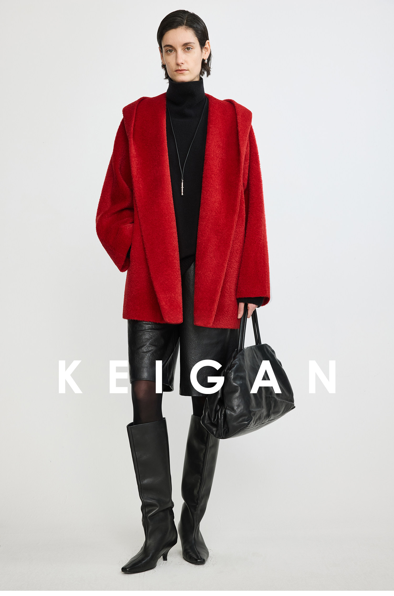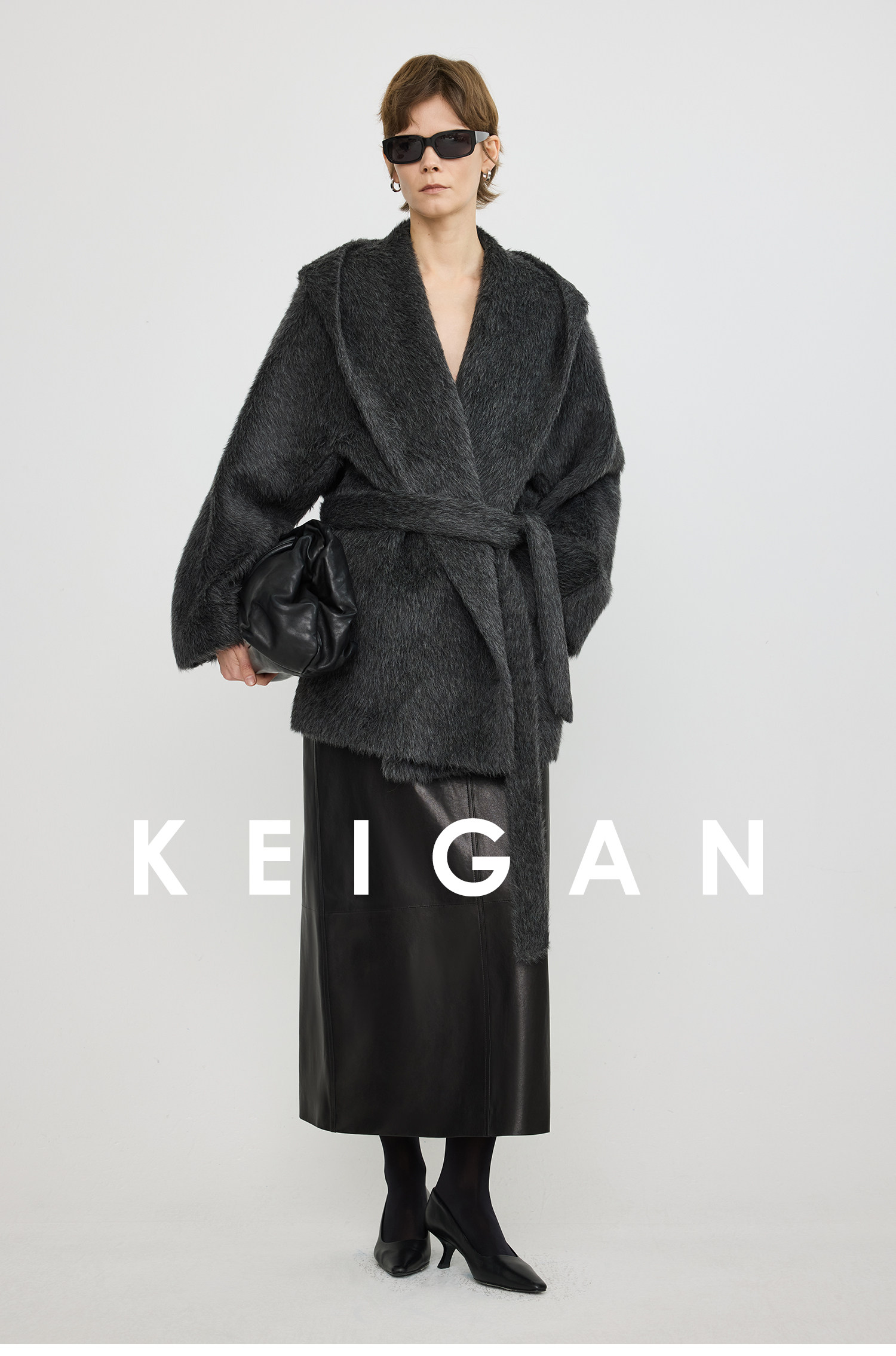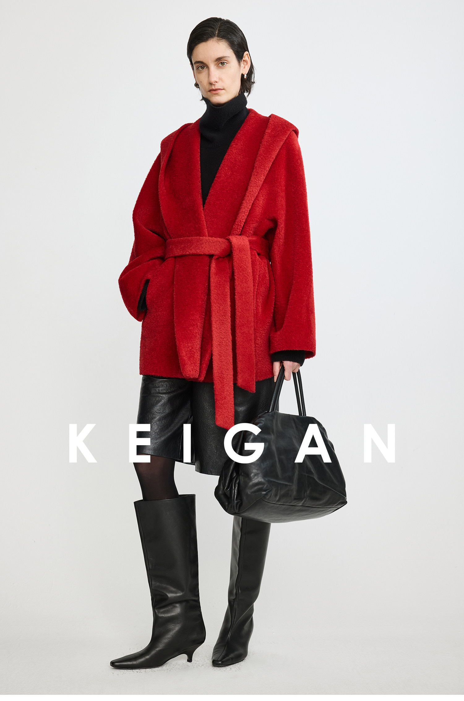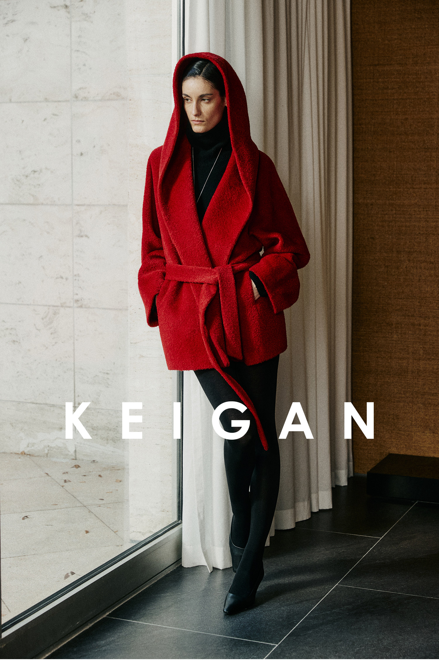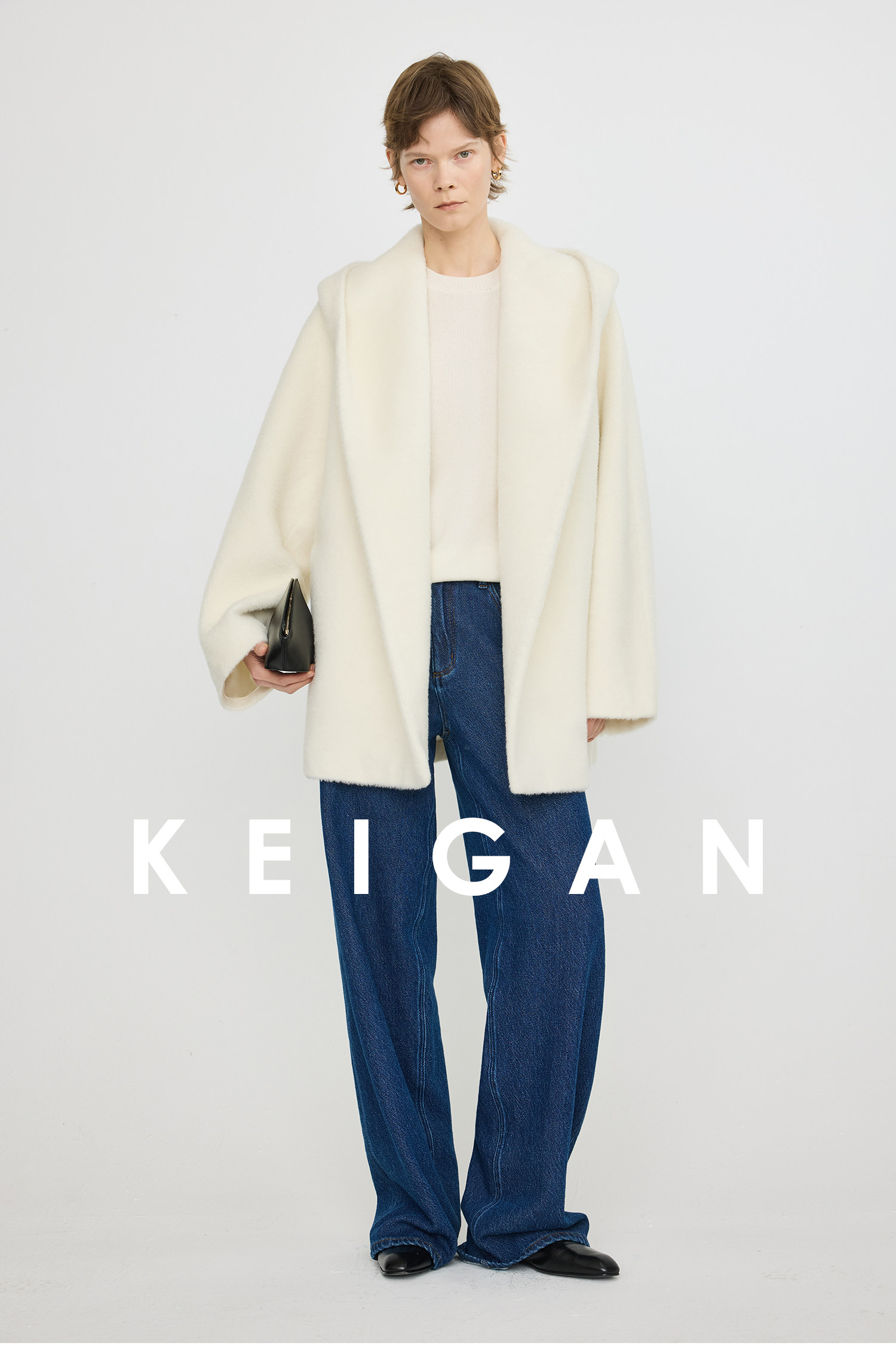 Black Label/Italian Texco Extra-Long Wool Peruvian Inca Natural Color Alpaca Hooded Bathrobe-Style Short Coat