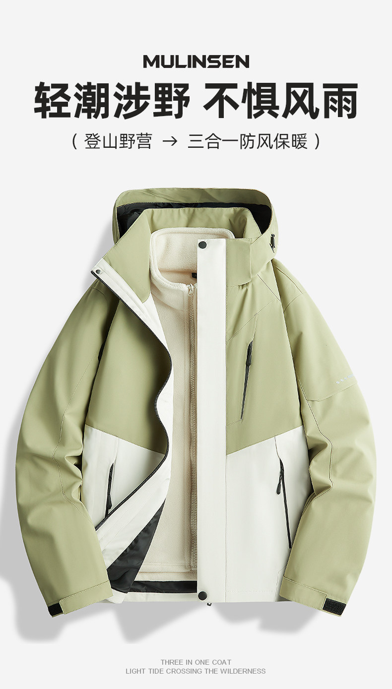 Mulinsen Jacket for Men and Women, Autumn/Winter 2025 New Model, Outdoor Windproof and Waterproof 3-in-1 Mountaineering Jacket
