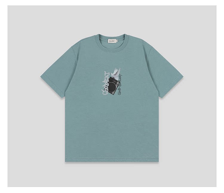 Goodbai Record Player Logo Printed Round Neck Oversize Short-Sleeved T-Shirt