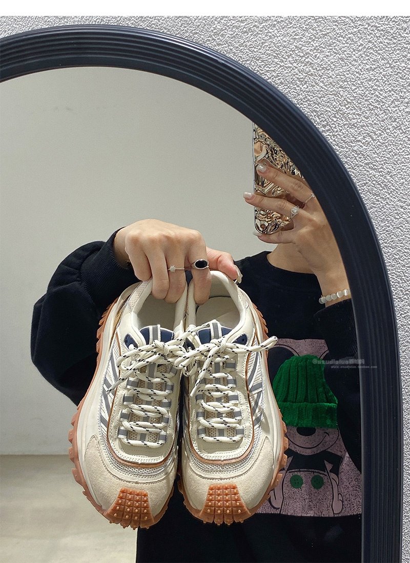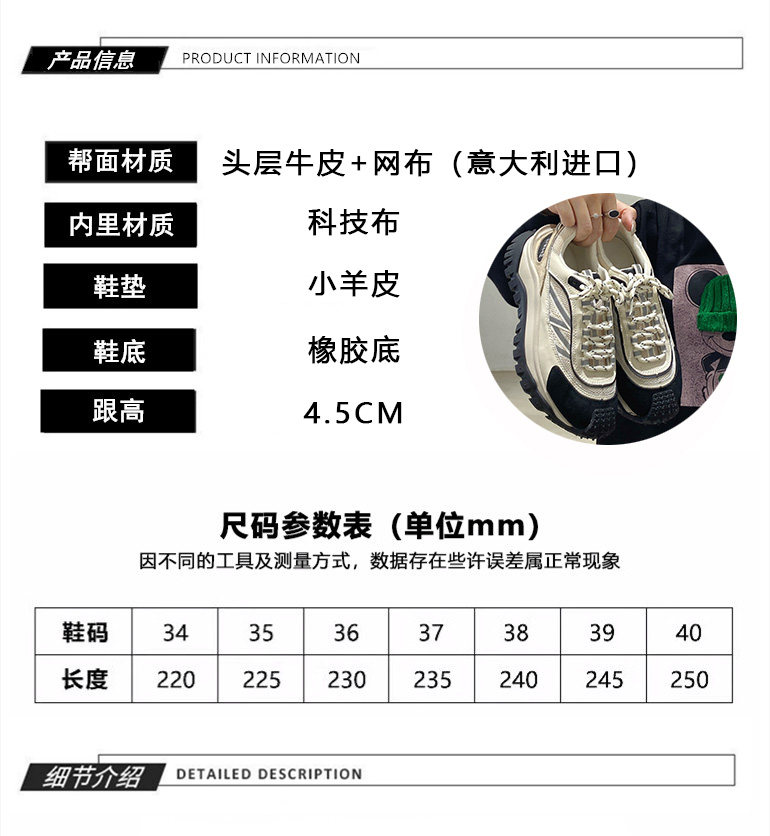 Hong Kong Genuine Leather Casual Sports Training Shoes for Women 2025 Spring and Autumn New Style Hiking Height-Increasing Dad Shoes Thick-Soled Forrest Gump Shoes