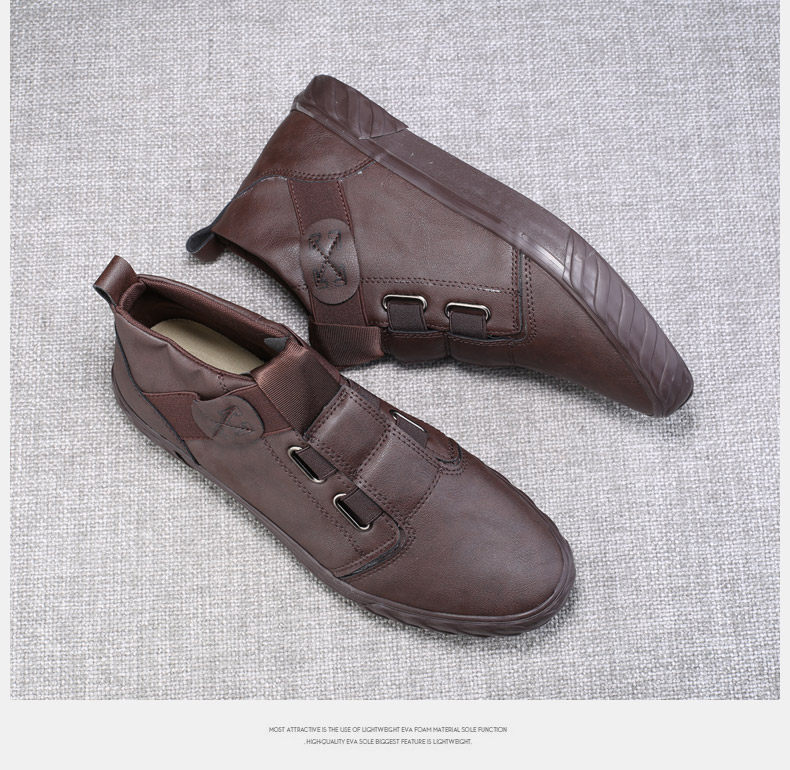 Men's Shoes Winter Fleece-Lined 2026 New Slip-On Men's Casual High-Top Leather Shoes British Style Mid-Top Martin Boots for Men