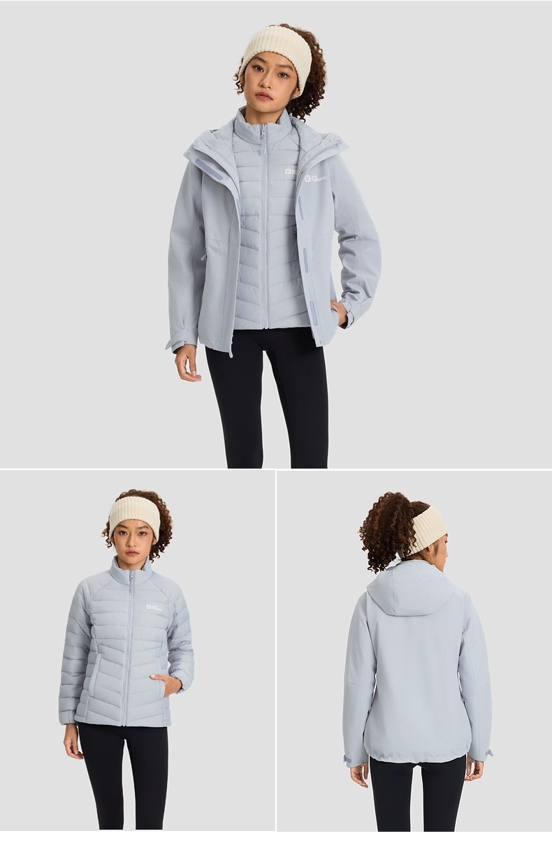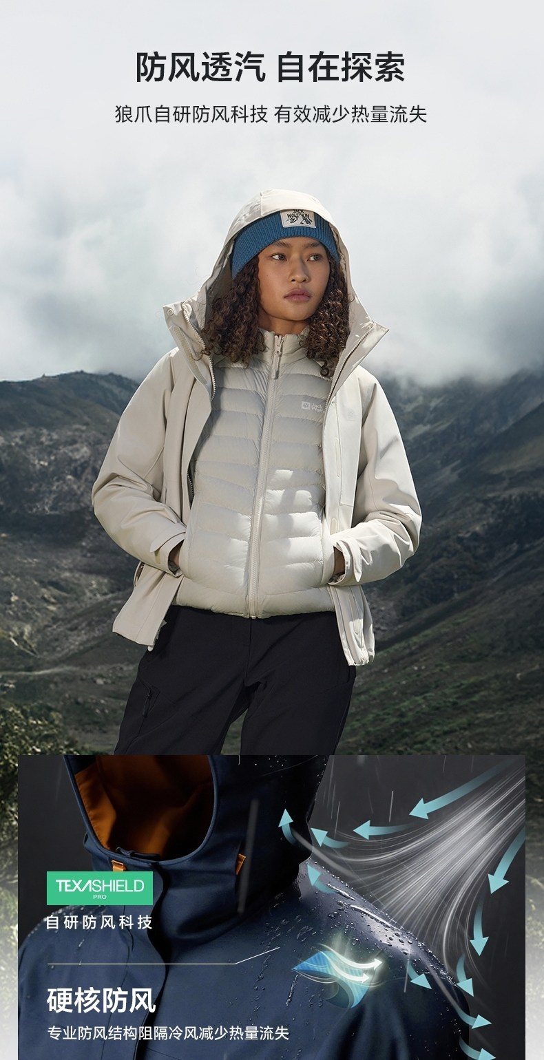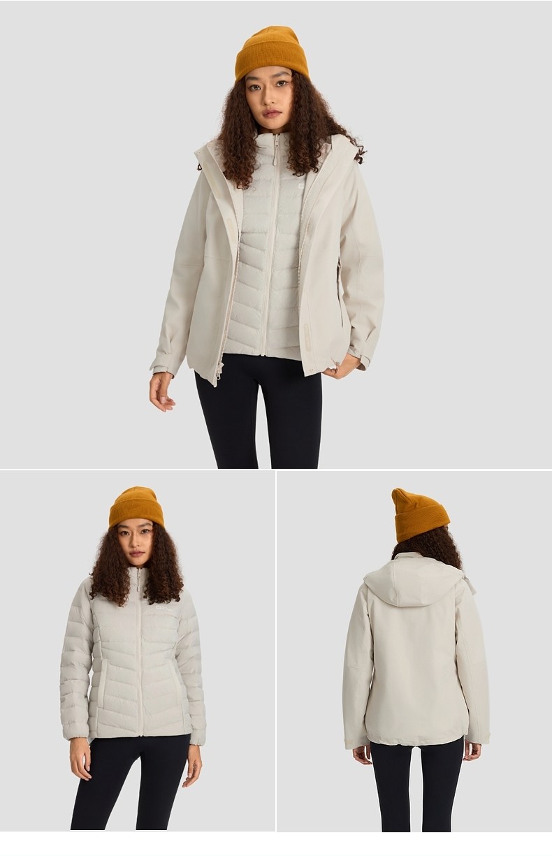 Jackwolfskin Wolf Claw 25 Autumn and Winter New Women's Windproof and Waterproof Goose down Three-In-One Jacket A66106