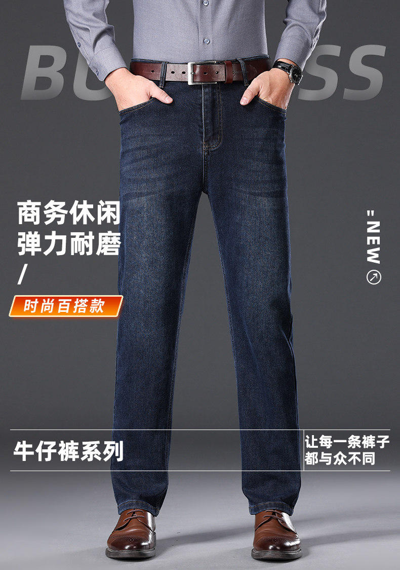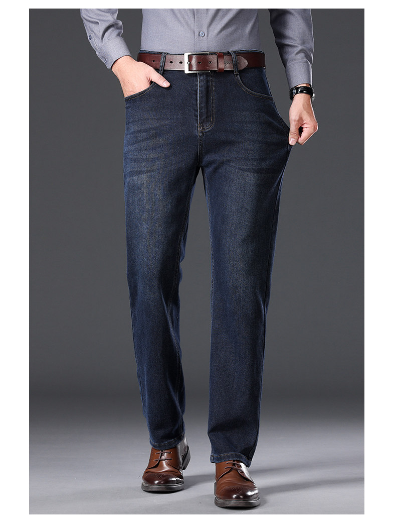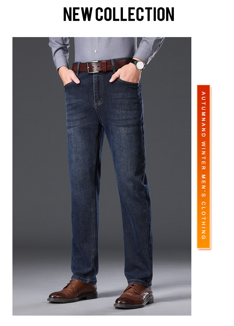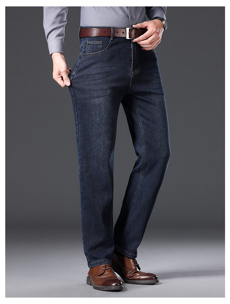 Jindun High-End Fleece-Lined Thickened 2025 Autumn and Winter New Men's Jeans Straight-Leg Loose Business Casual Long Pants for Men