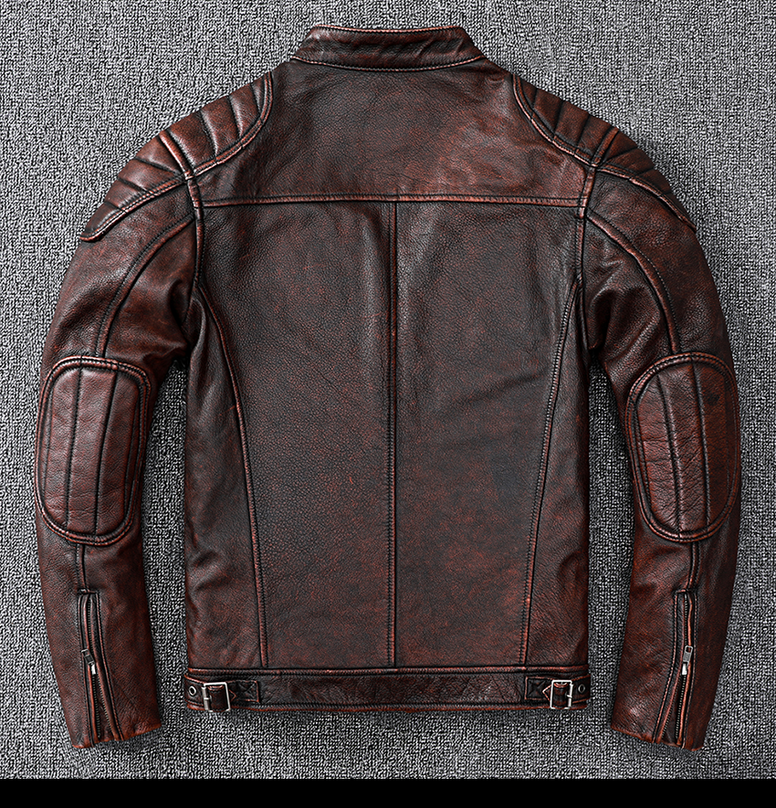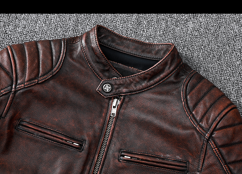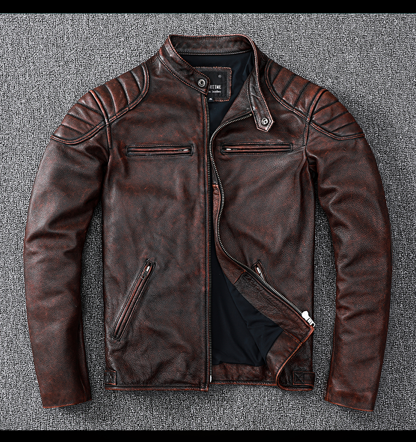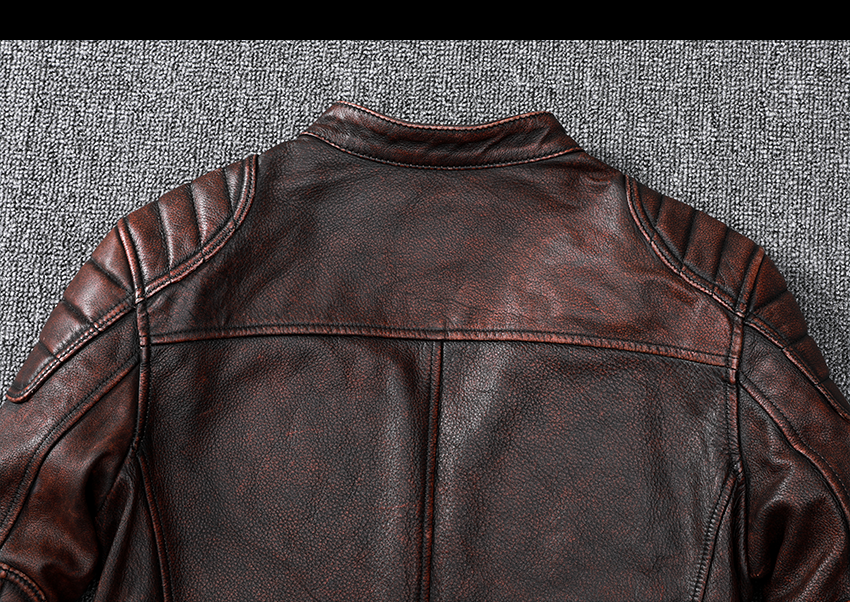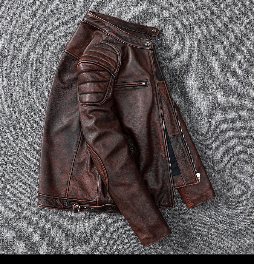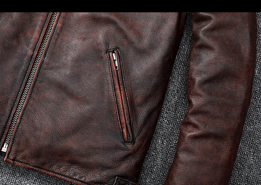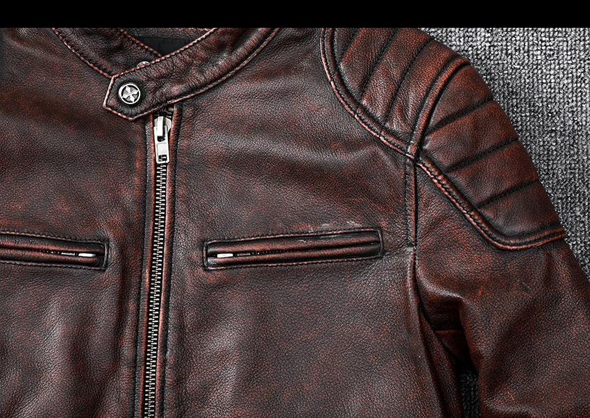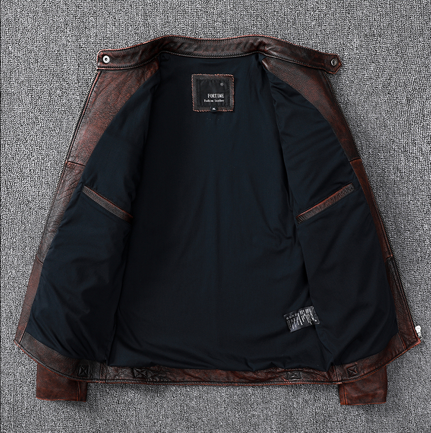 Pakistani First-Layer Cowhide Genuine Leather Jacket Men's Stand-Up Collar Leather Jacket Vintage Distressed Amekaji Red-Brown
