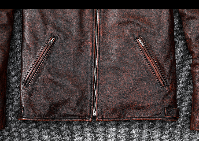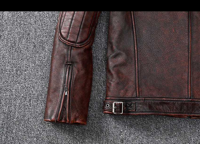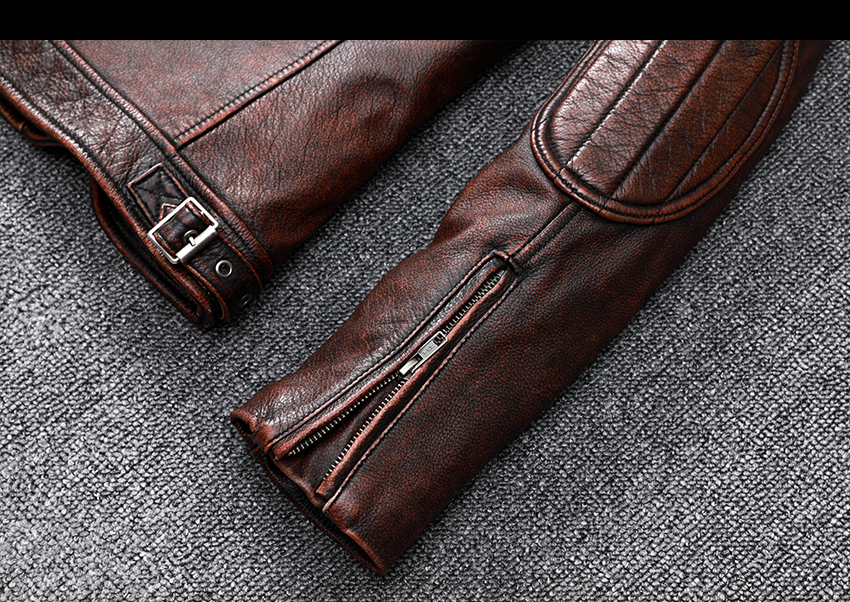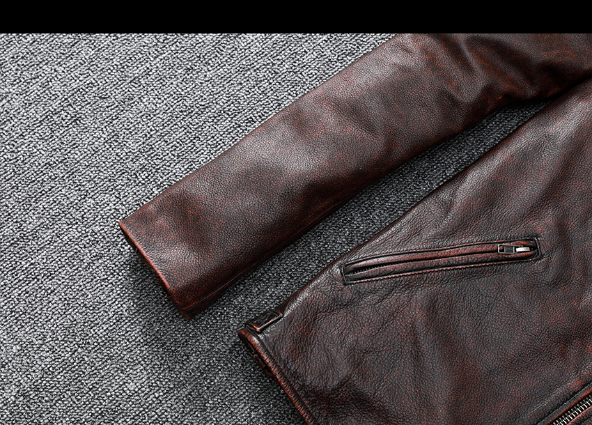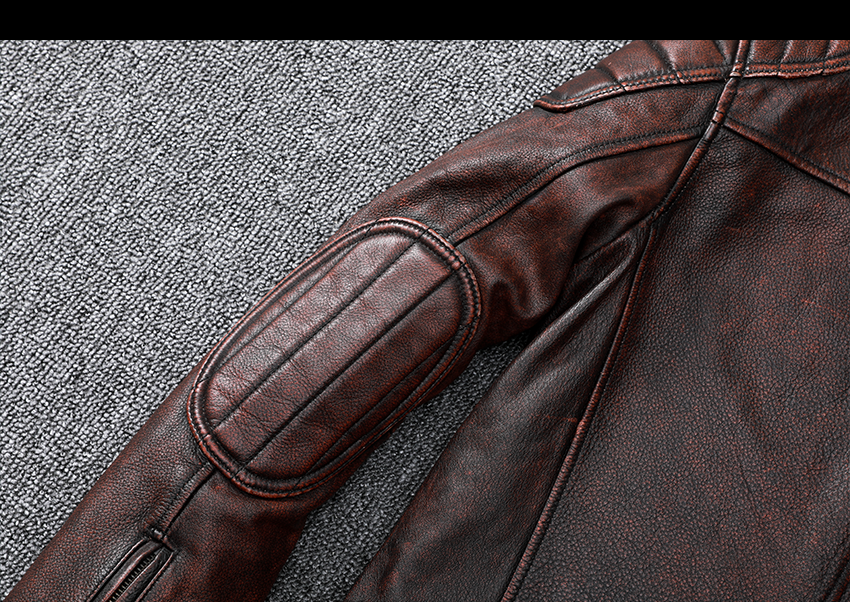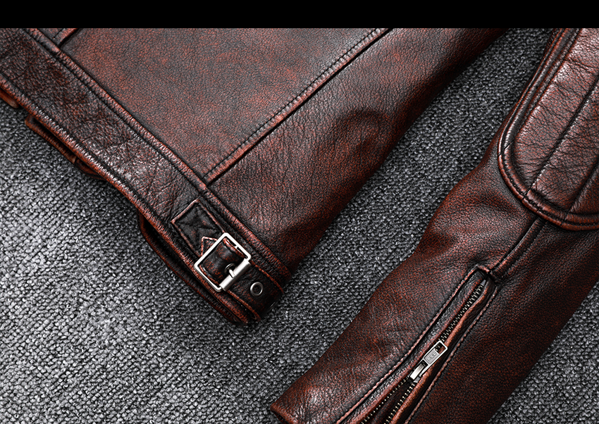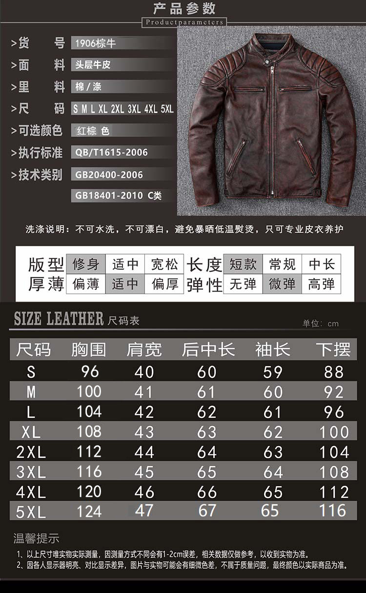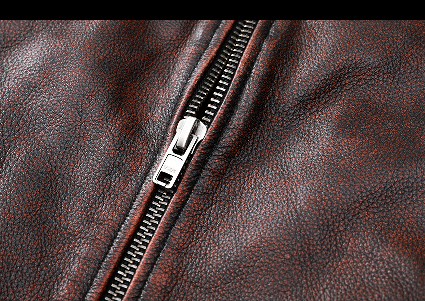 Pakistani First-Layer Cowhide Genuine Leather Jacket Men's Stand-Up Collar Leather Jacket Vintage Distressed Amekaji Red-Brown