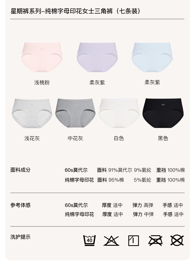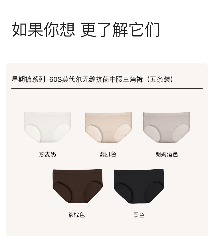 Ubras Weekly Panty Series Modal Underwear for Women, Thin Mid-Waist Comfortable Breathable Pure Cotton Antibacterial Crotch Shorts