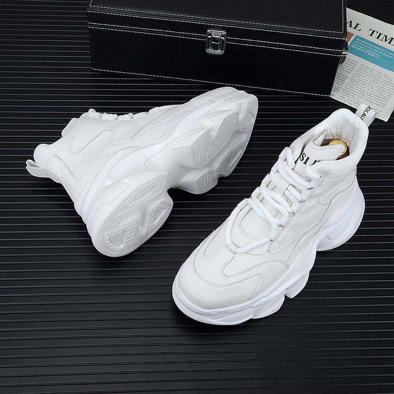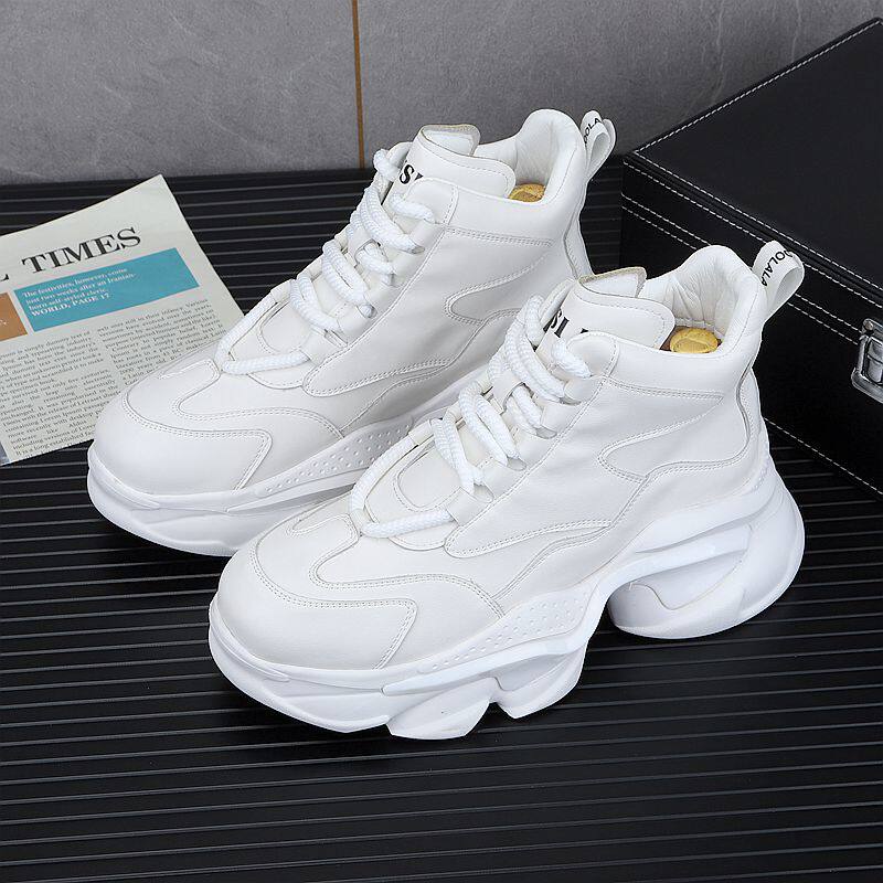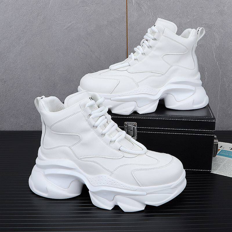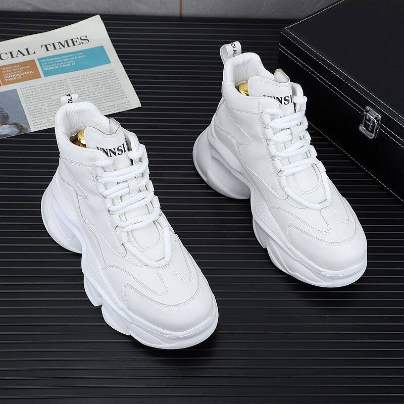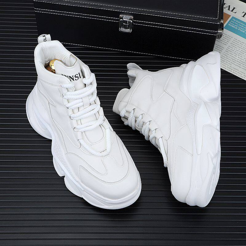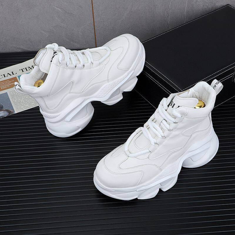 European Style White Dad Shoes for Men, 2025 Winter New Model, Fleece-Lined Casual Shoes, Height-Increasing Thick-Soled High-Top Work Cotton Shoes