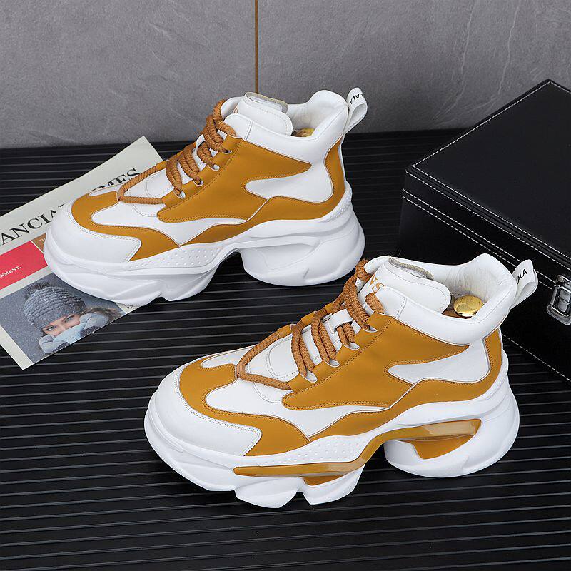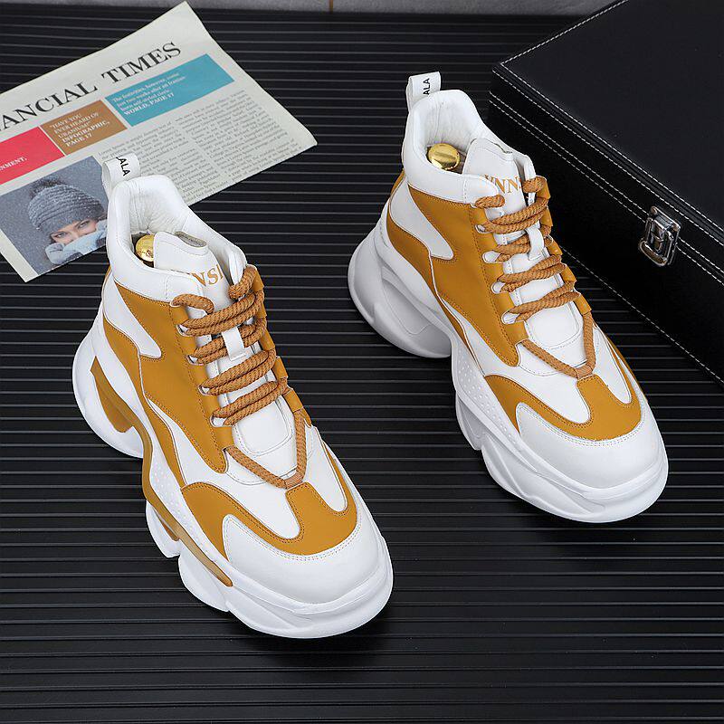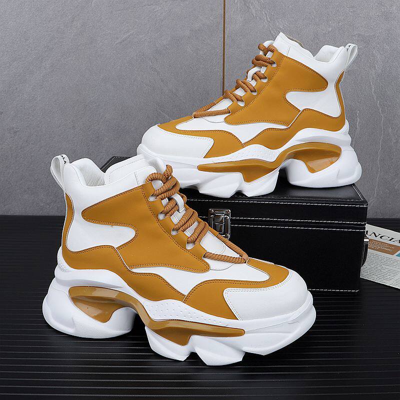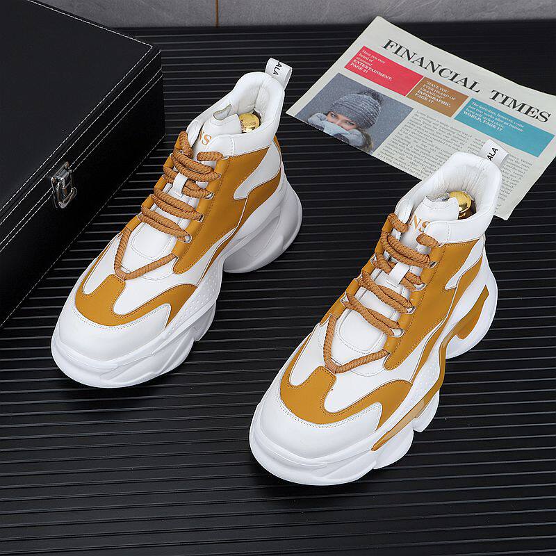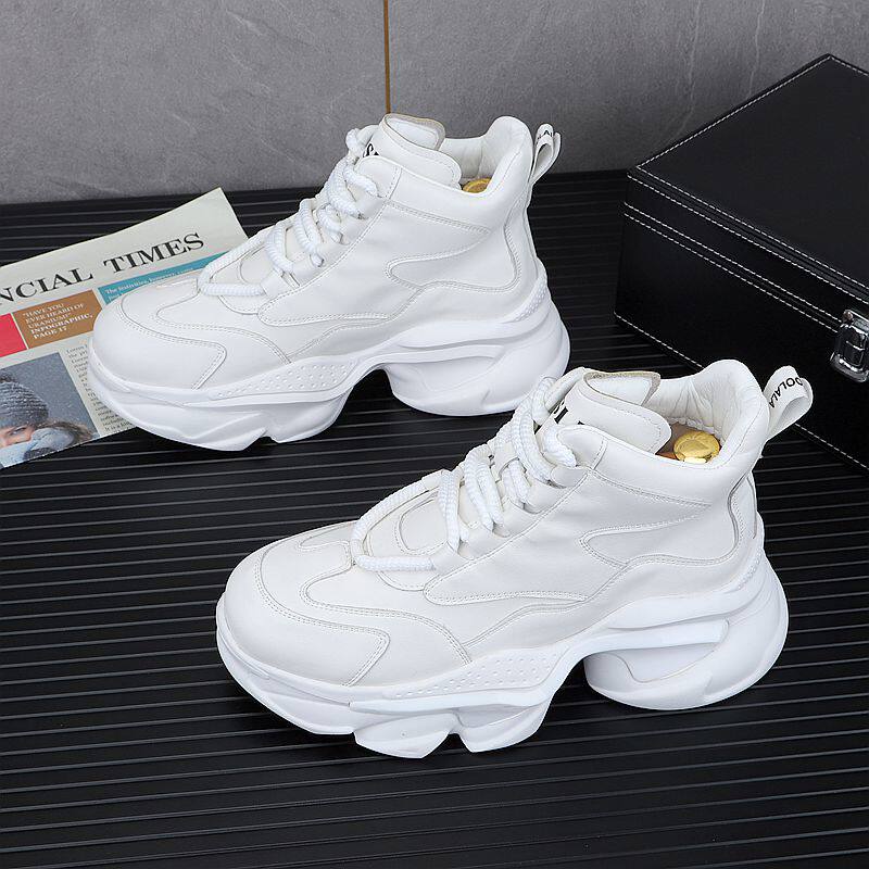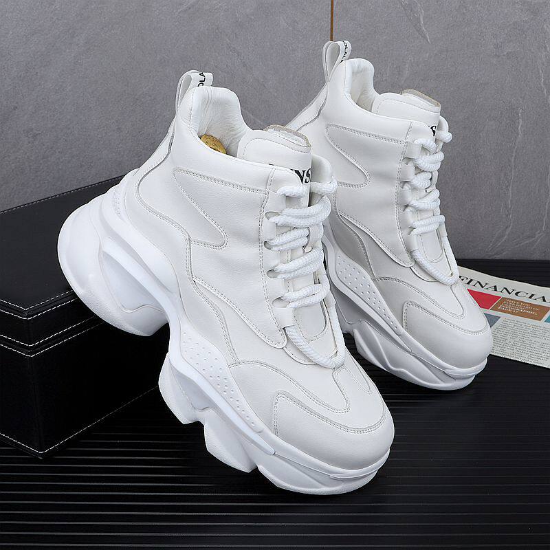 European Style White Dad Shoes for Men, 2025 Winter New Model, Fleece-Lined Casual Shoes, Height-Increasing Thick-Soled High-Top Work Cotton Shoes