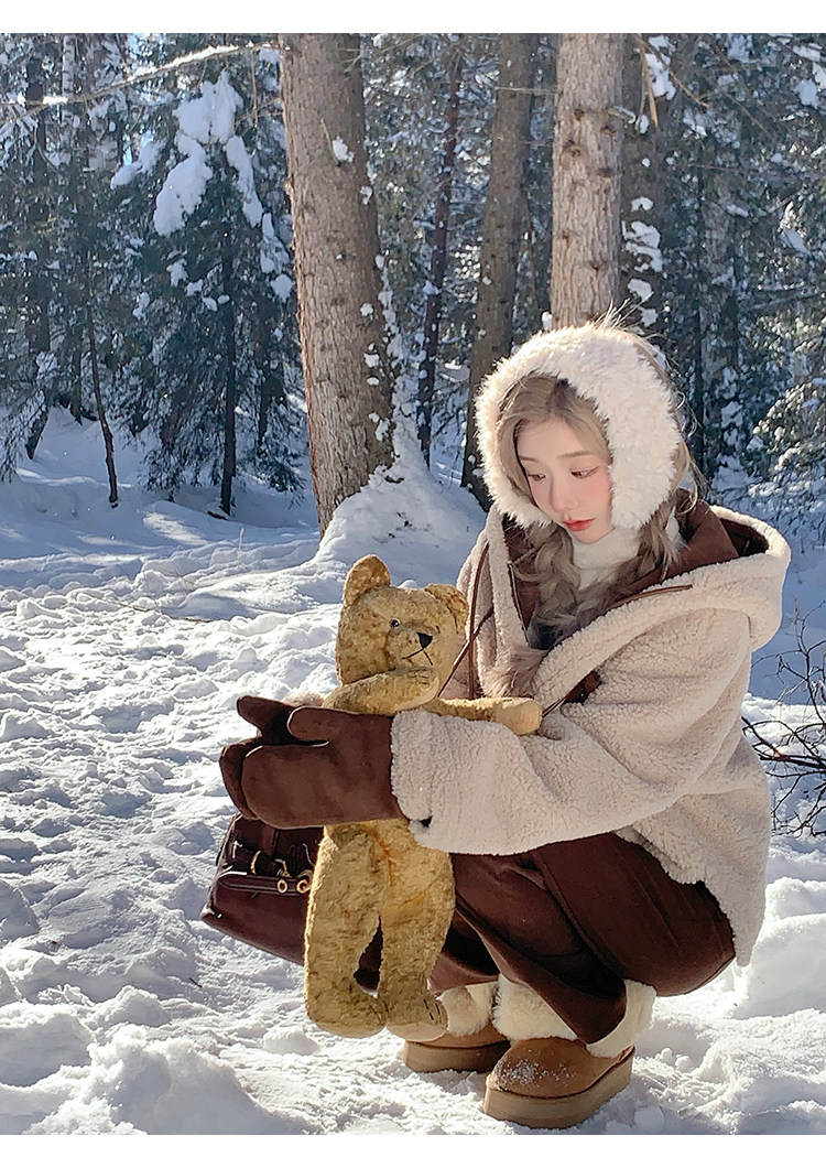 咖色搭配新款灯芯绒长裤的深棕色,好像一只泰迪小熊啊