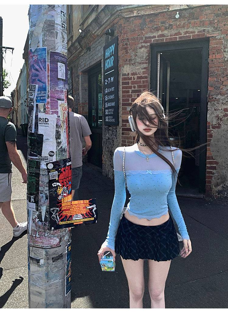 值得一夸的是 胸口的拼接处做了弹力蕾丝和蝴蝶结装饰